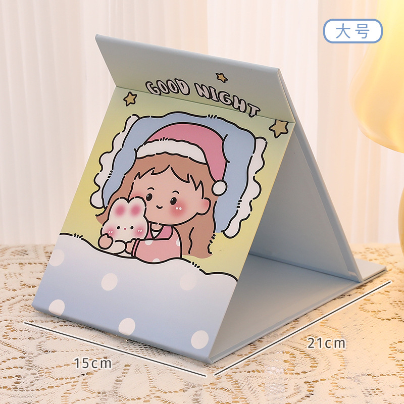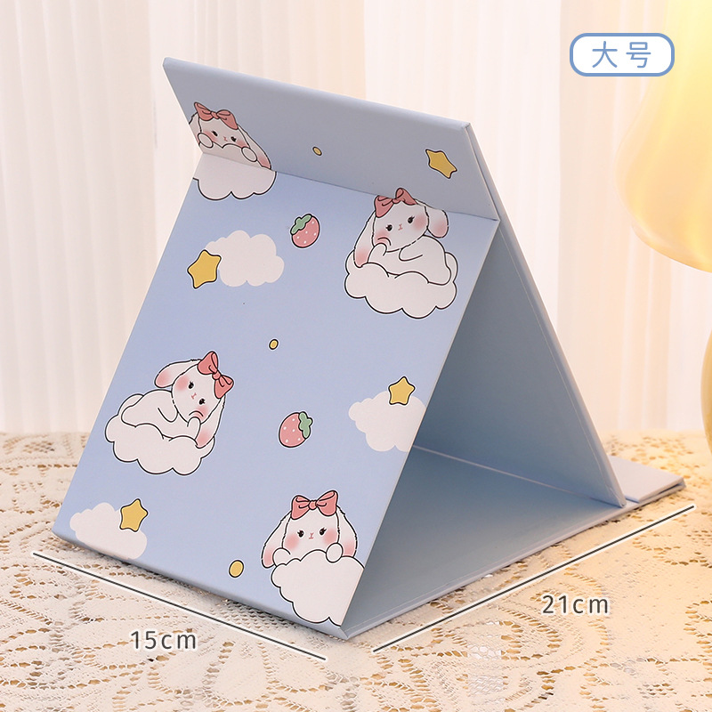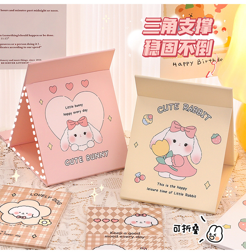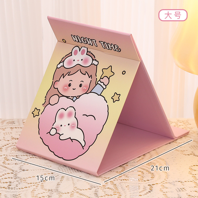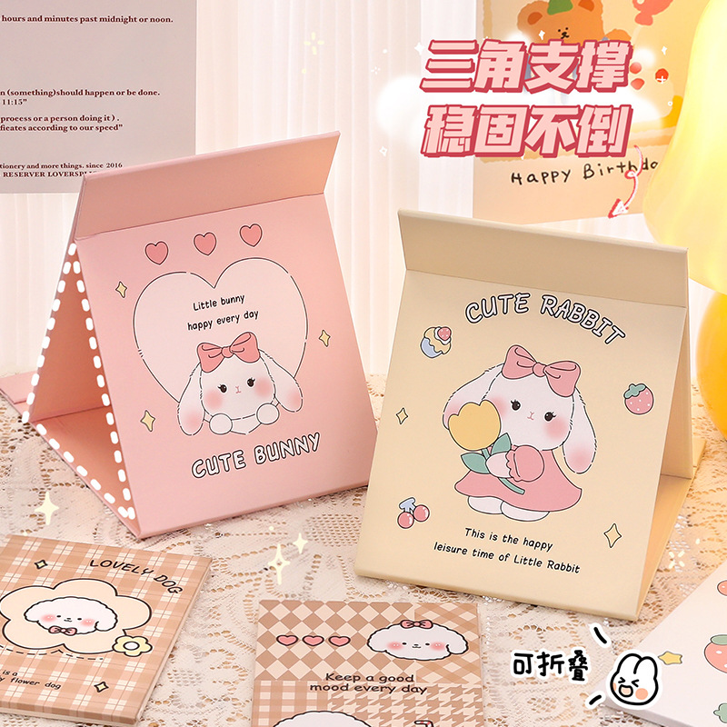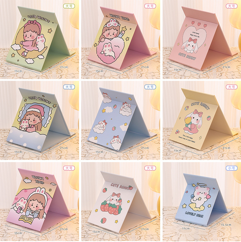 可爱卡通折叠镜子 中学生随身便携化妆镜 高颜值桌面可调节镜子