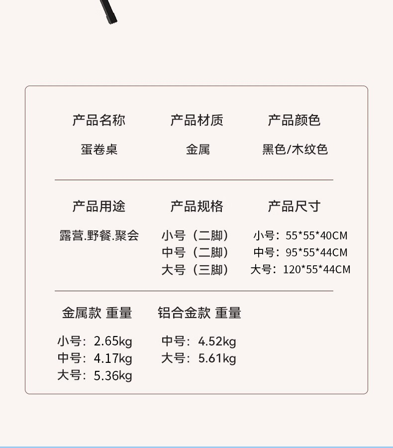 顏色分類 【加厚穩固】小號黑色蛋卷桌(送收納袋) 【加厚穩固】中號黑色蛋卷桌(送收納袋) 【加厚穩固】大號黑色蛋卷桌(送收納袋) 【加厚穩固】中號木紋蛋卷桌(送收納袋) 【加厚穩固】大號木紋蛋卷桌(送收納袋) 【輕量化全鋁合金】中號蛋卷桌(送收納袋) 【輕量化全鋁合金】大號蛋卷桌(送收納袋) 黑化套裝【小桌+2*大號摺疊椅】(送收納袋) 黑化套裝【小桌+2*中號克米特椅】(送收納袋) 黑化套裝【小桌+2*大號克米特椅】(送收納袋) 黑化套裝【中桌+2*中號克米特椅】(送收納袋) 黑化套裝【中桌+2*大號克米特椅】(送收納袋) 黑化套裝【中桌+4*特大號摺疊椅】(送收納袋) 黑化套裝【中桌+4*中號克米特椅】(送收納袋) 黑化套裝【中桌+4*大號克米特椅】(送收納袋) 黑化套裝【中桌+6*超大號摺疊椅】(送收納袋) 黑化套裝【大桌+2*中號克米特椅】(送收納袋) 黑化套裝【大桌+4*中號克米特椅】(送收納袋) 黑化套裝【大桌+6*中號克米特椅】(送收納袋) 黑化套裝【大桌+2*大號克米特椅】(送收納袋) 黑化套裝【大桌+4*大號克米特椅】(送收納袋) 黑化套裝【大桌+6*超大號摺疊椅】(送收納袋) 黑化套裝【大桌+6*大號克米特椅】(送收納袋) 木紋套裝【中桌+2*中號克米特椅】(送收納袋) 木紋套裝【中桌+2*大號克米特椅】(送收納袋) 木紋套裝【中桌+4*中號克米特椅】(送收納袋) 木紋套裝【中桌+4*大號克米特椅】(送收納袋) 木紋套裝【大桌+2*中號克米特椅】(送收納袋) 木紋套裝【大桌+4*中號克米特椅】(送收納袋) 木紋套裝【大桌+6*中號克米特椅】(送收納袋) 木紋套裝【大桌+2*大號克米特椅】(送收納袋) 木紋套裝【大桌+4*大號克米特椅】(送收納袋) 木紋套裝【大桌+6*大號克米特椅】(送收納袋) 全鋁合金【中桌+2*中號克米特椅】(送收納袋) 全鋁合金【中桌+4*中號克米特椅】(送收納袋) 全鋁合金【中桌+2*大號克米特椅】(送收納袋) 全鋁合金【中桌+4*大號克米特椅】(送收納袋) 全鋁合金【大桌+4*中號克米特椅】(送收納袋) 全鋁合金【大桌+6*中號克米特椅】(送收納袋) 全鋁合金【大桌+4*大號克米特椅】(送收納袋) 全鋁合金【大桌+6*大號克米特椅】(送收納袋)