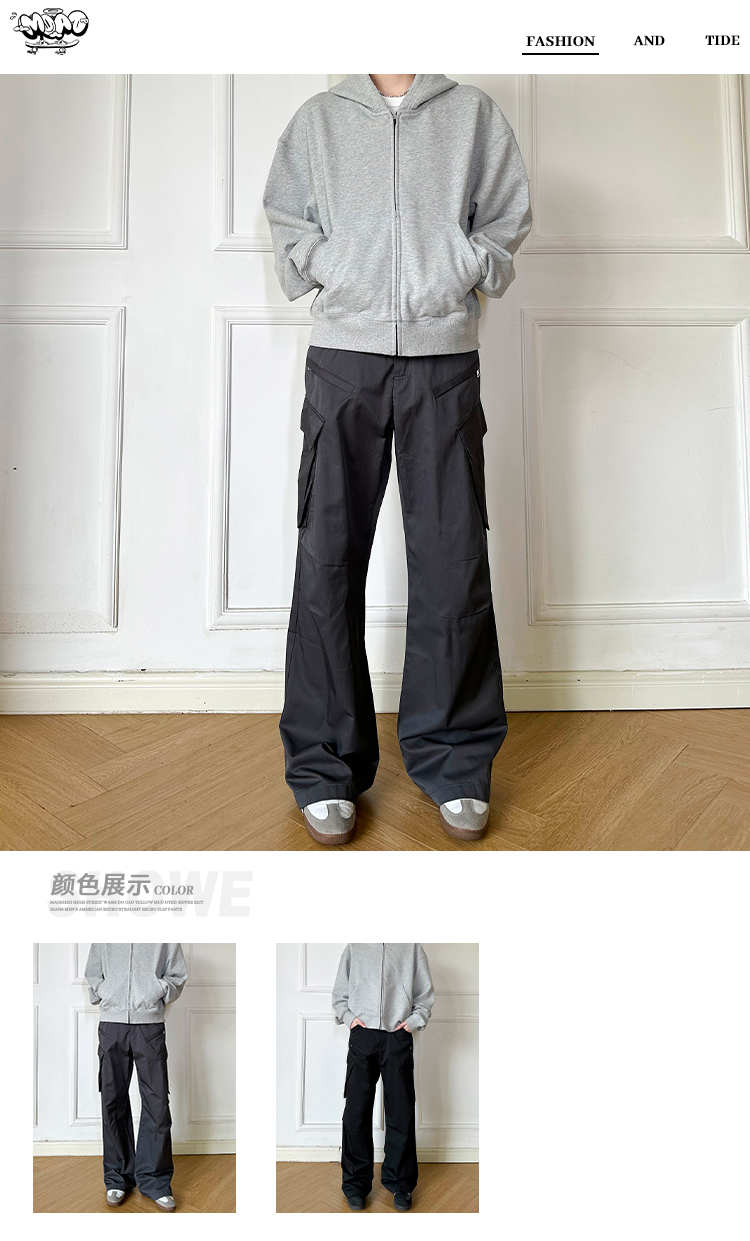 MADSHED夏季新款美式cleanfit高級感休閒微喇工裝休閒褲男女ins潮
