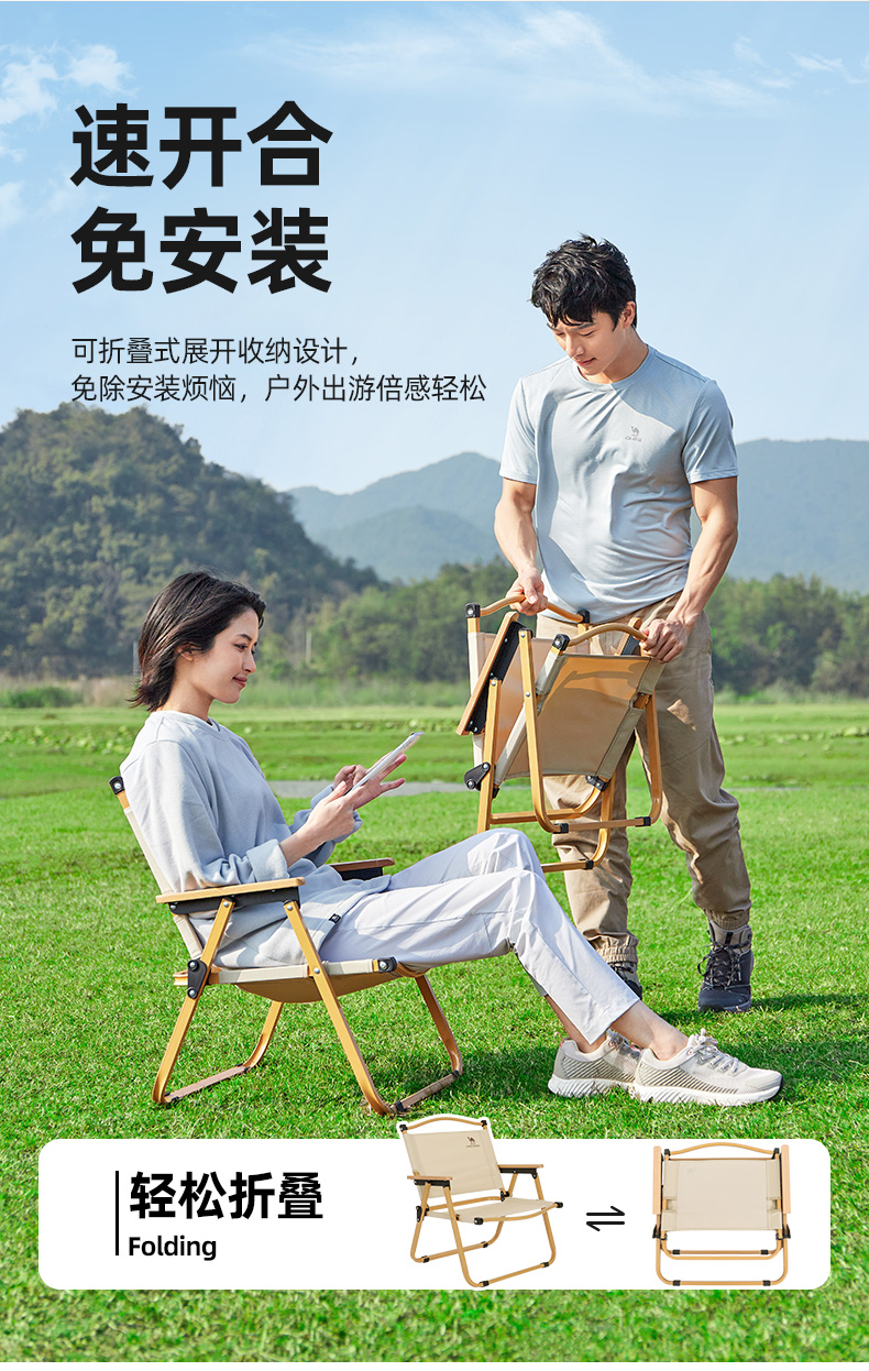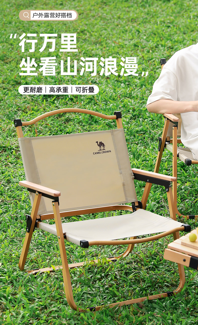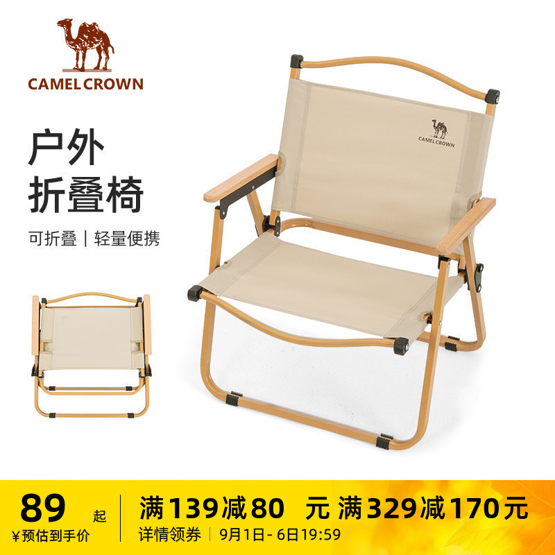駱駝戶外露營摺疊椅可攜式靠背躺椅野營釣魚凳美術生椅子克米特椅