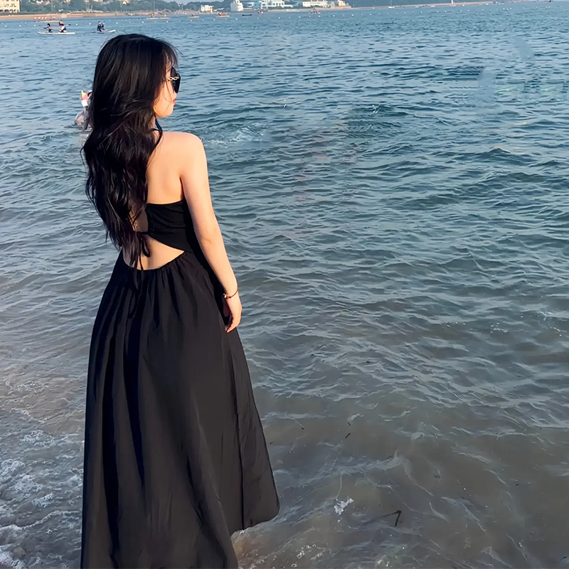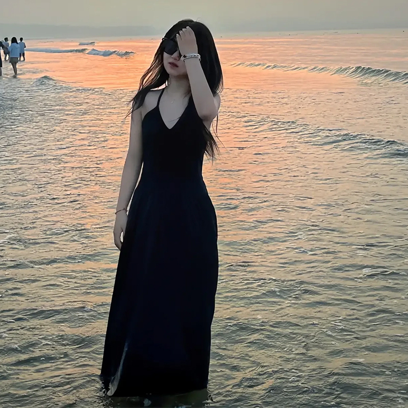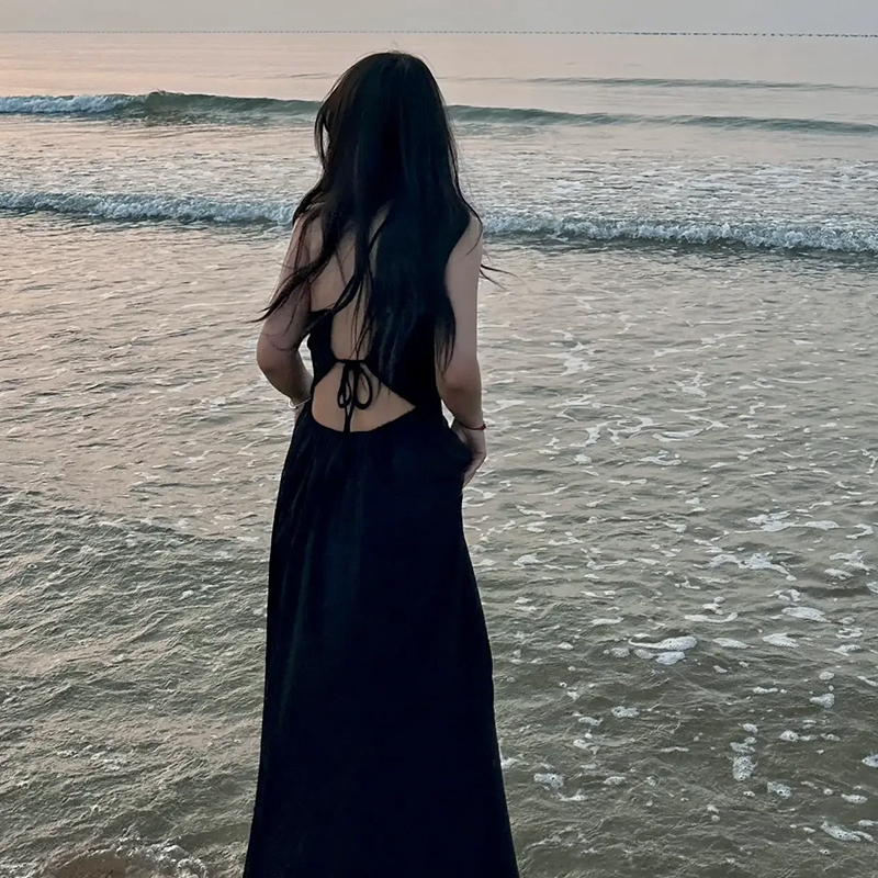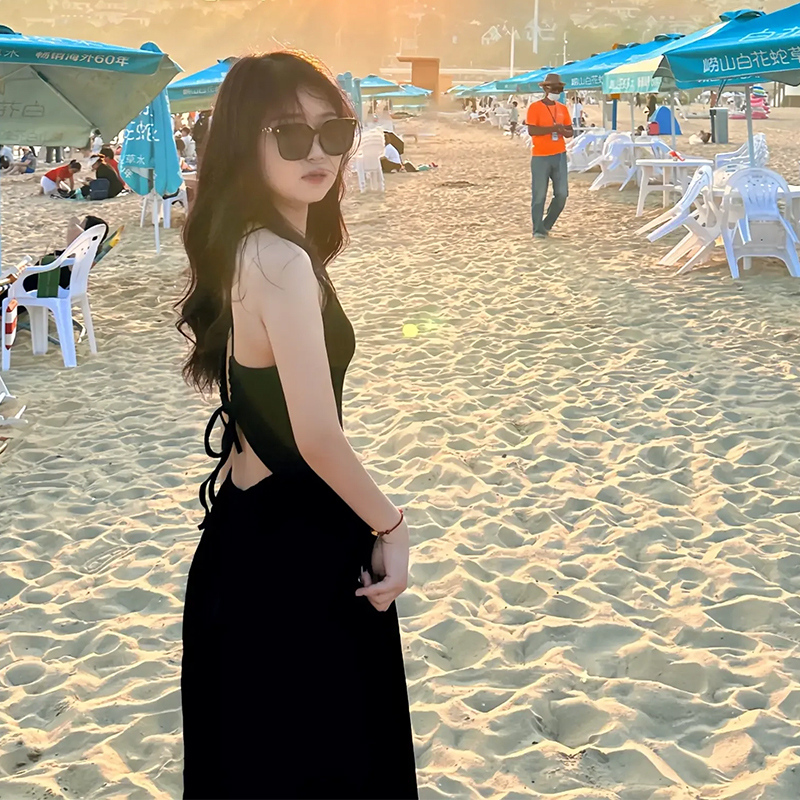 鏤空露背吊帶洋裝女秋季2023年新款辣妹無袖設計感小眾掛頸裙子