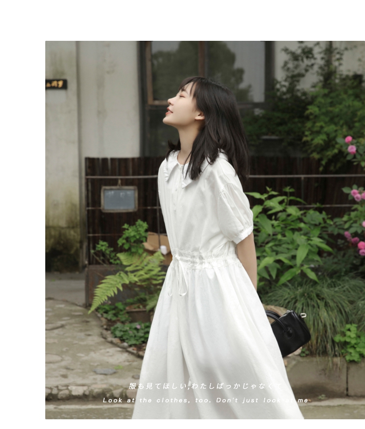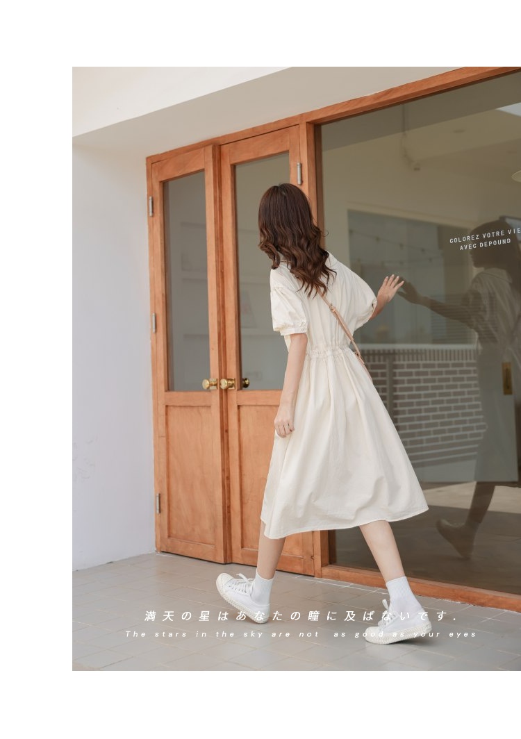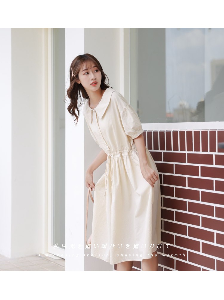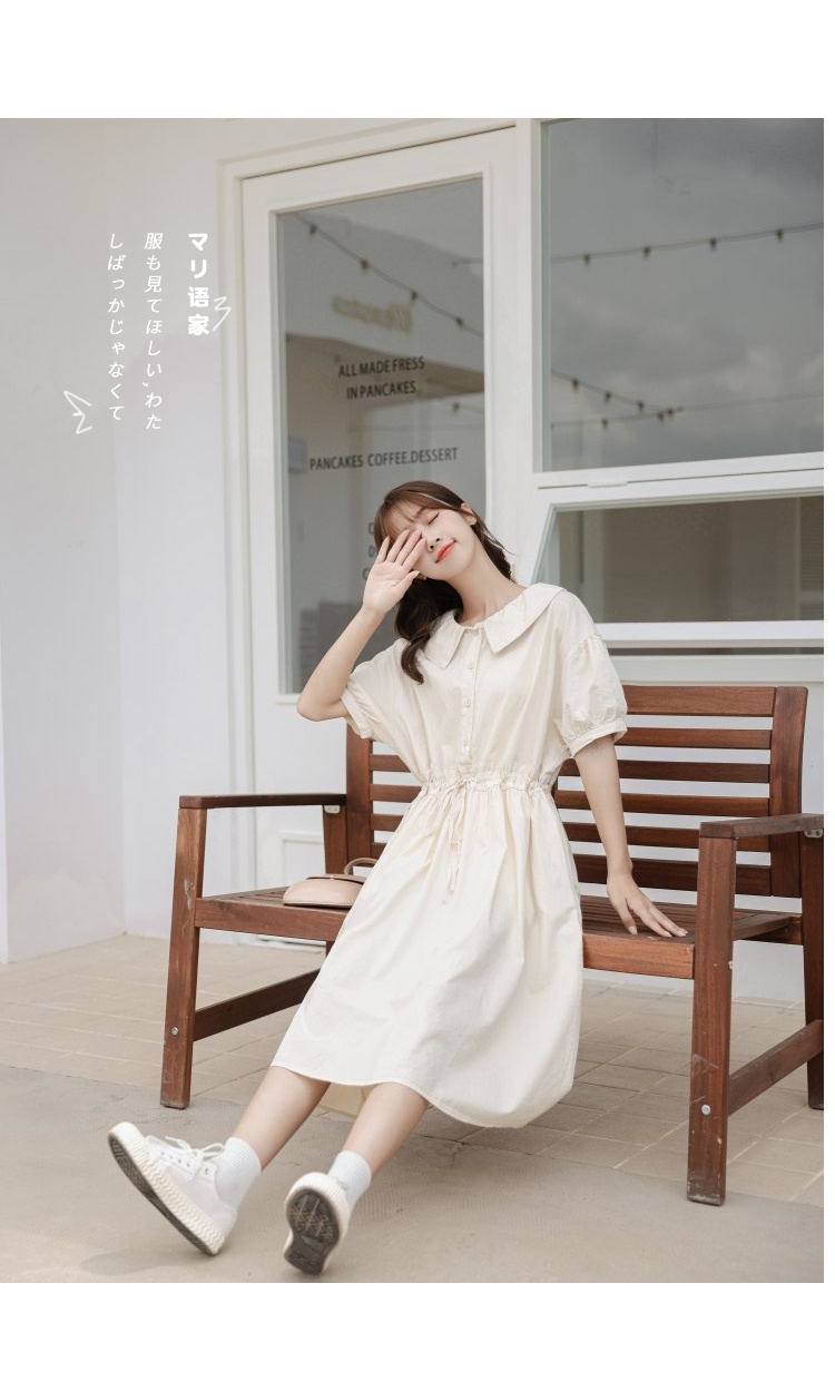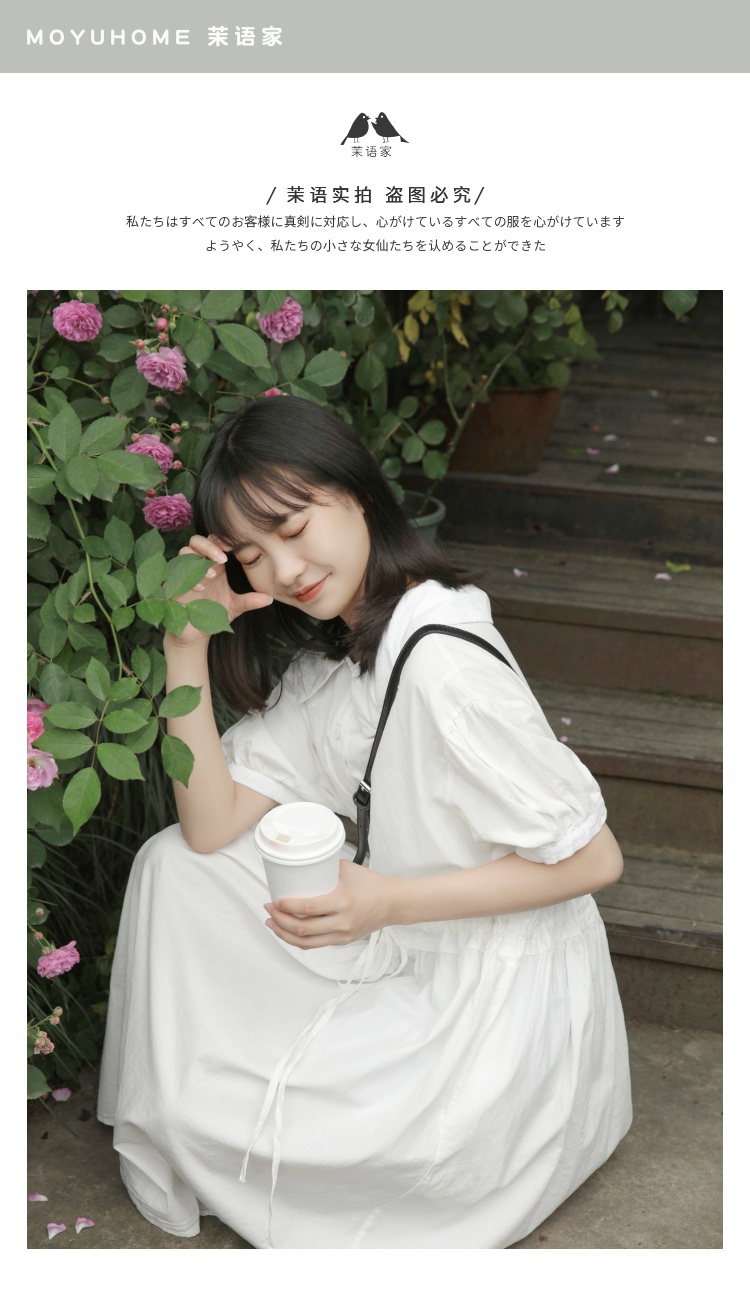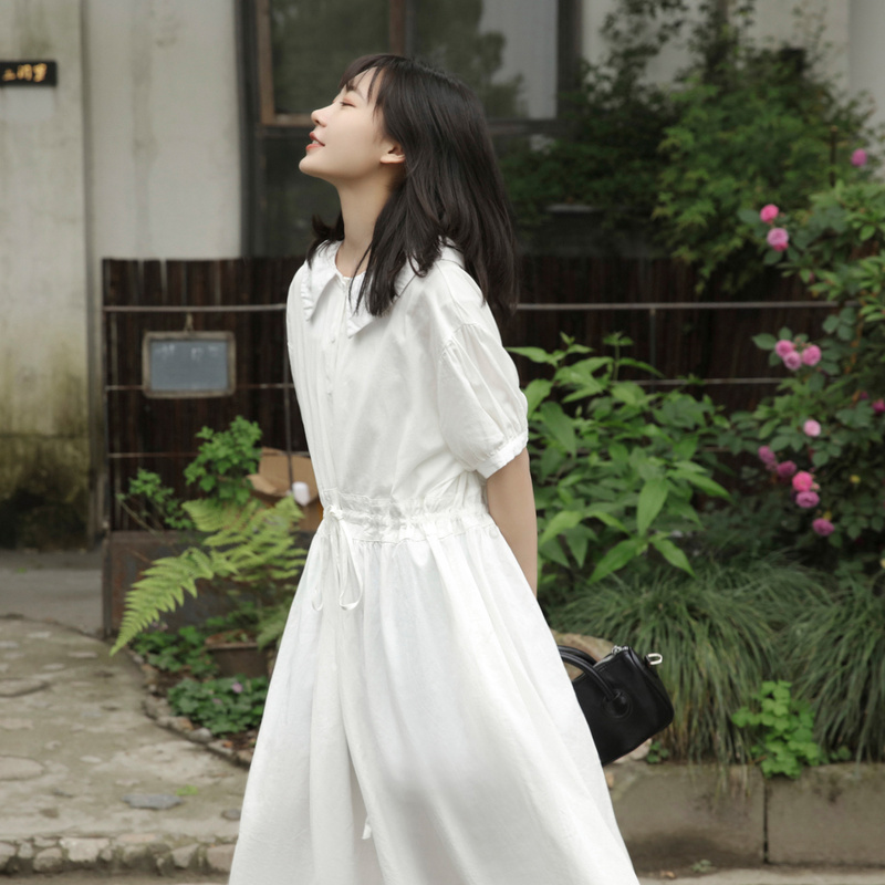 茉語家2023夏季白色娃娃領洋裝收腰顯瘦法式裙子女新款初戀裙