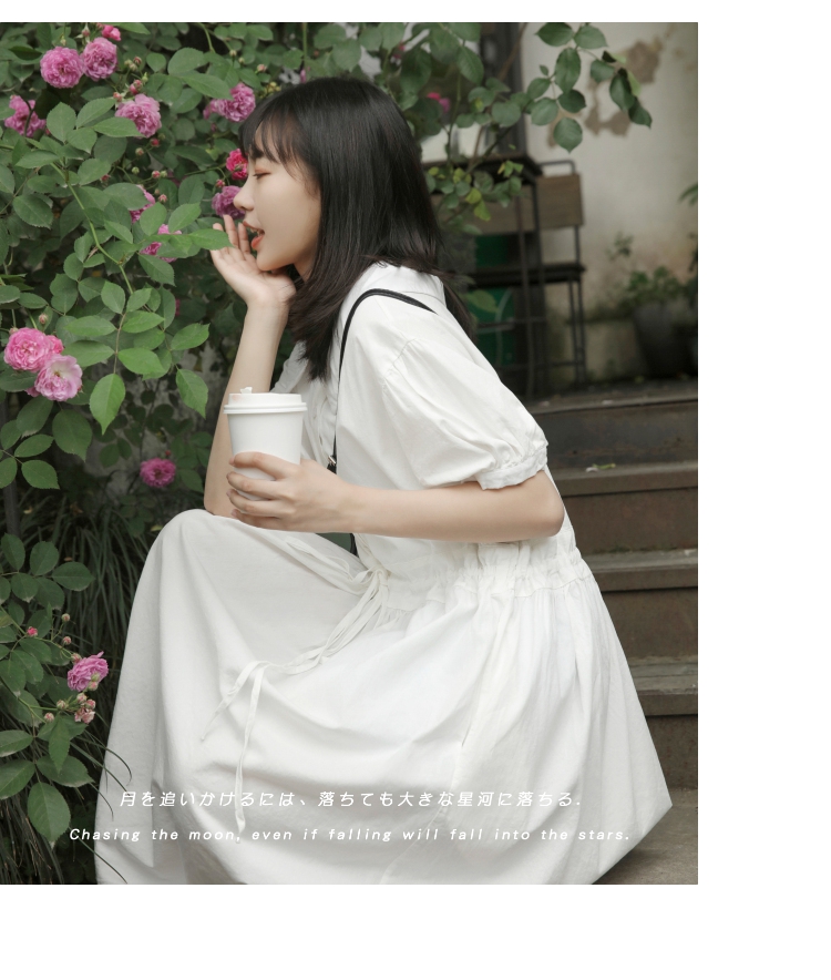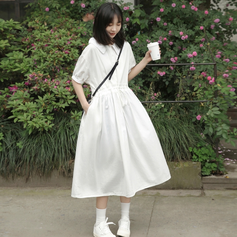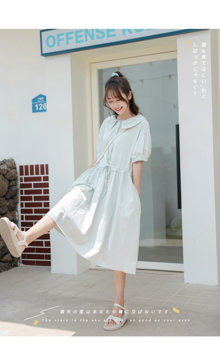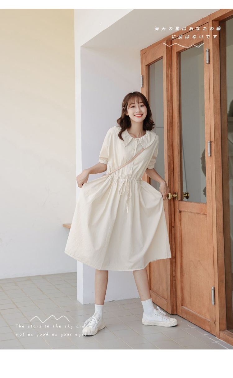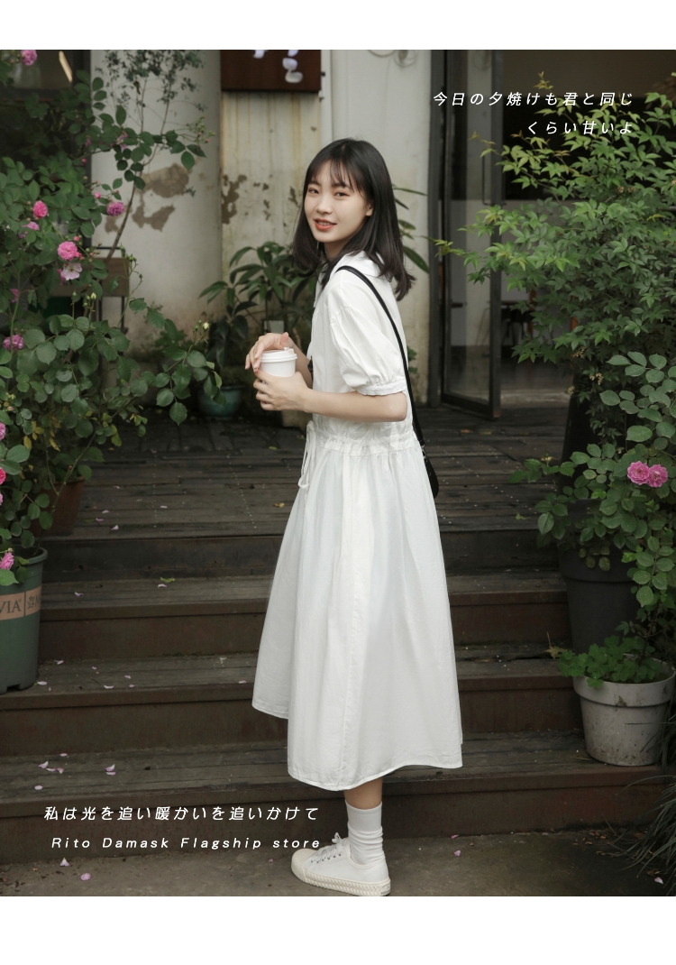 茉語家2023夏季白色娃娃領洋裝收腰顯瘦法式裙子女新款初戀裙