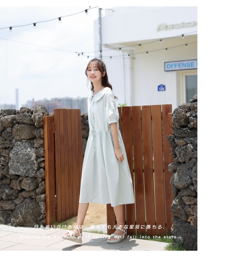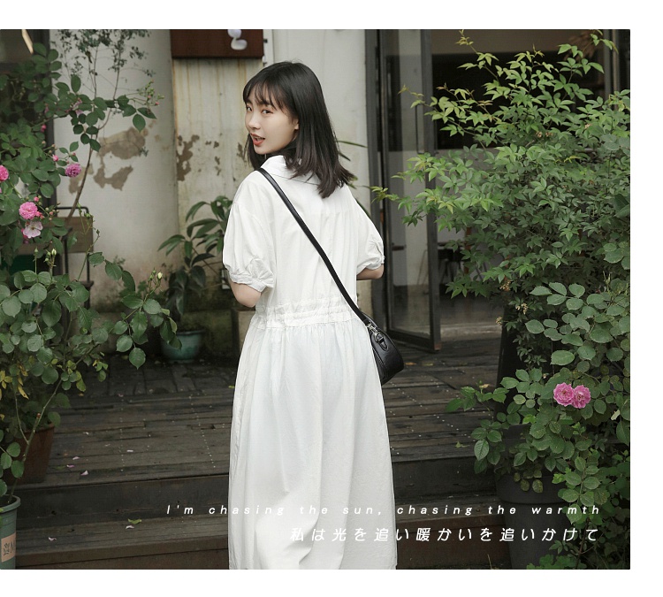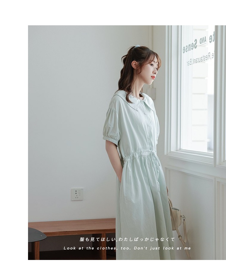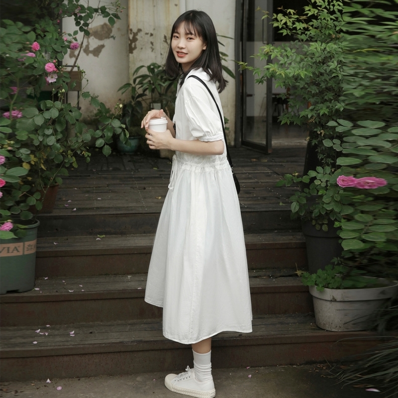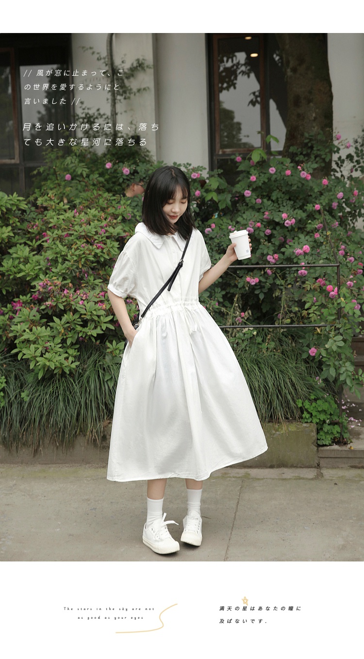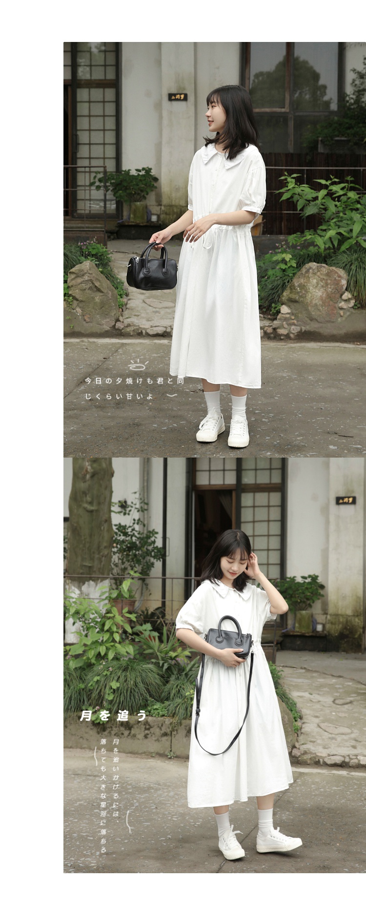 茉語家2023夏季白色娃娃領洋裝收腰顯瘦法式裙子女新款初戀裙