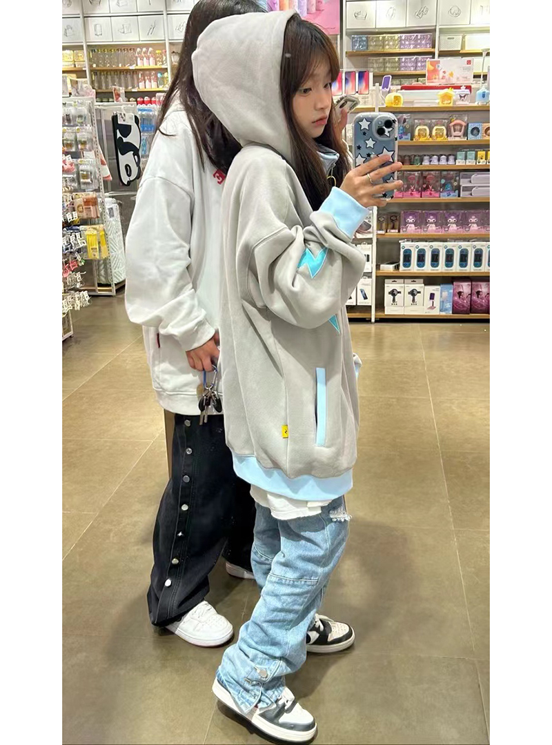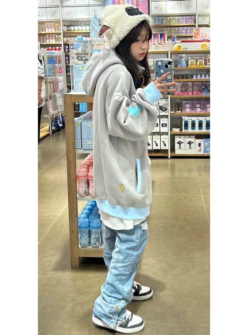 港風chic美式復古開衫厚棉T外套女春秋季設計感小眾oversize棒球服