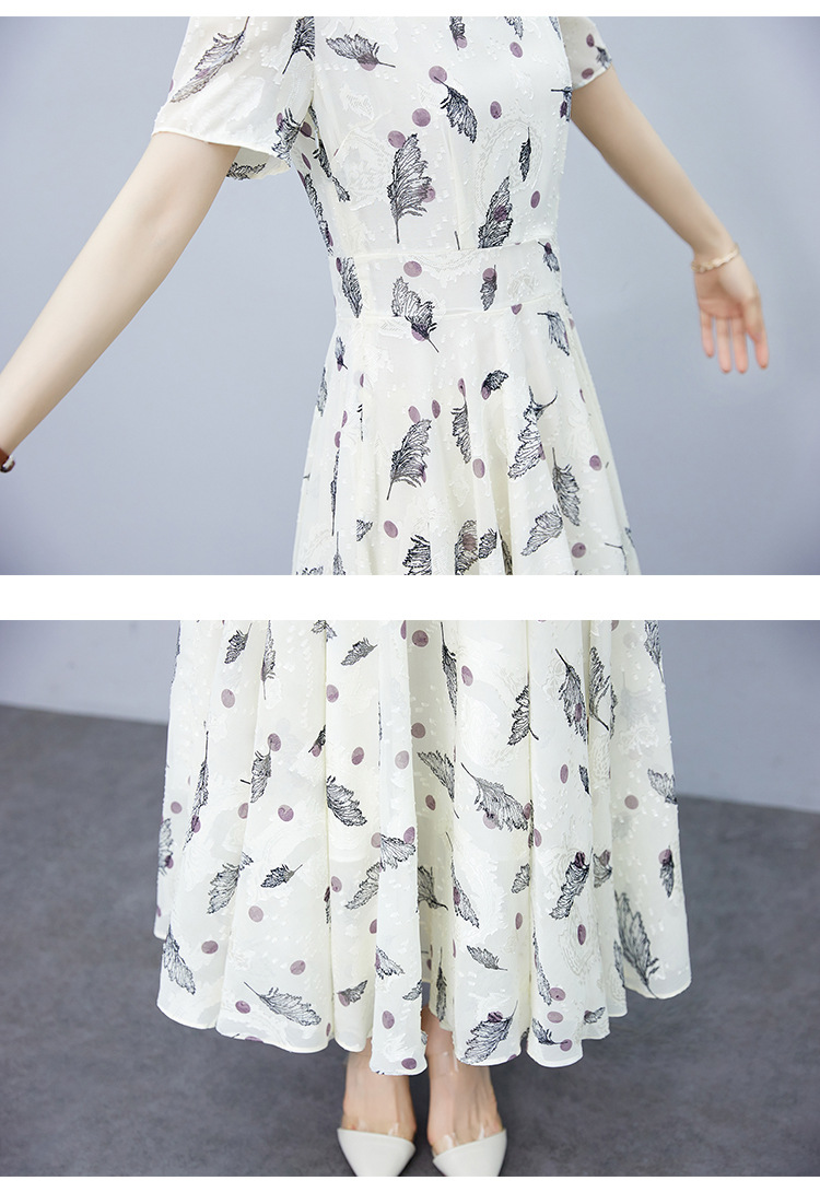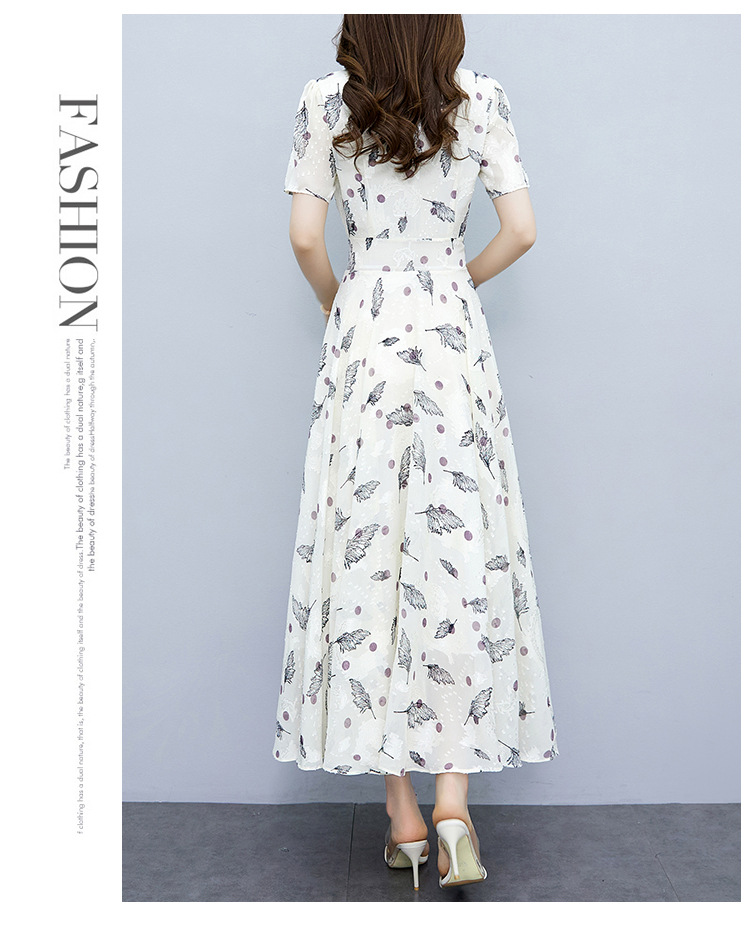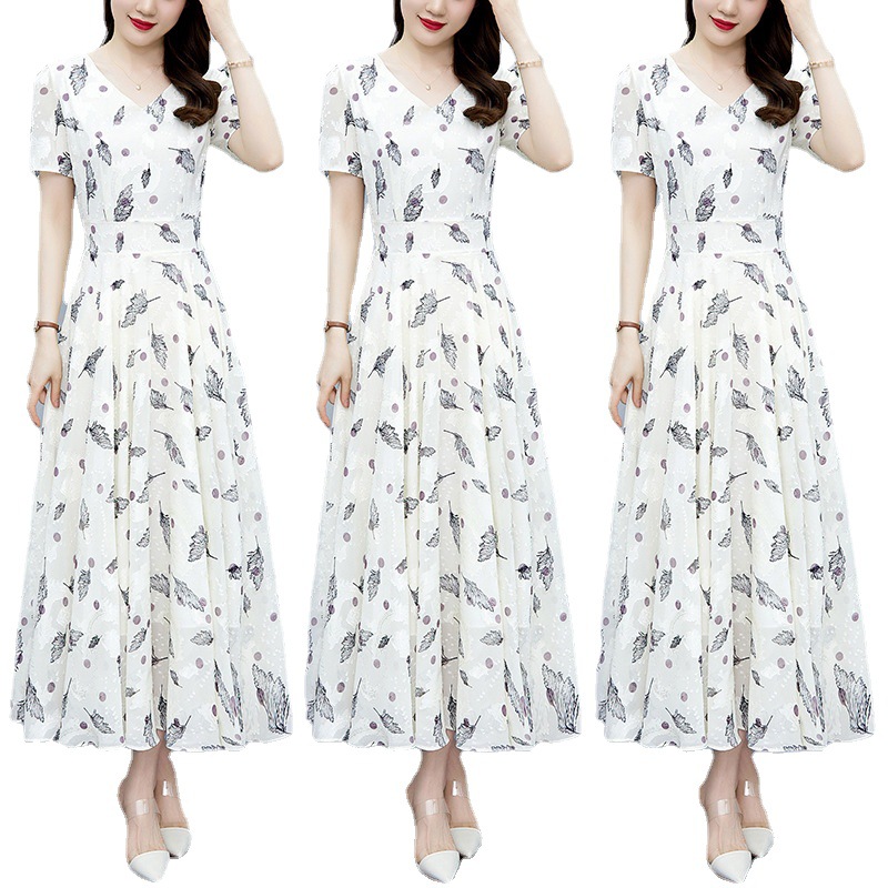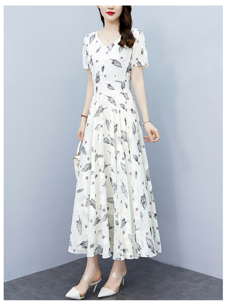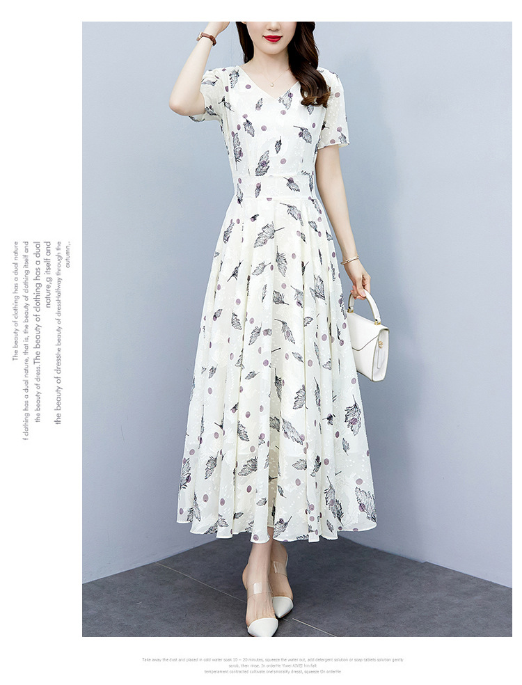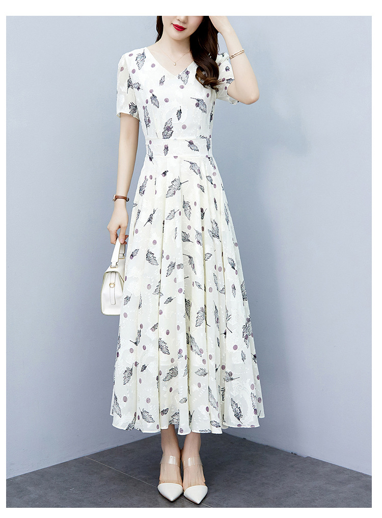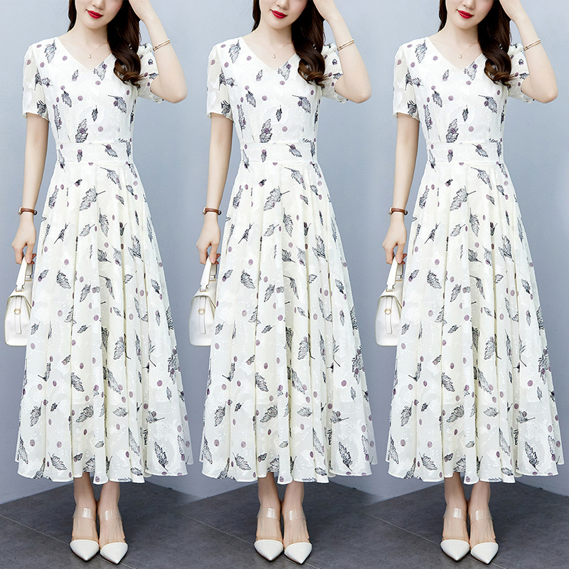 碎花雪纺连衣裙女2023夏季新款V领拼接胖mm收腰显瘦过膝中长裙潮