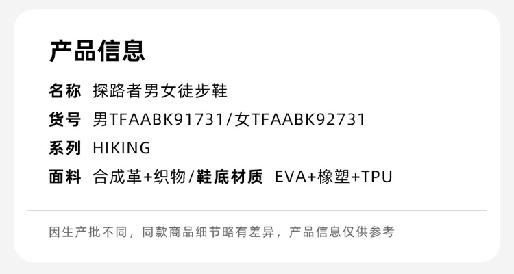 探路者徒步鞋男女22秋冬新款戶外防滑耐磨透氣專業登山鞋91731