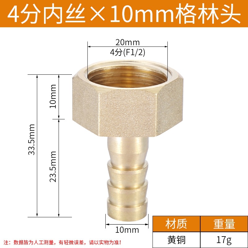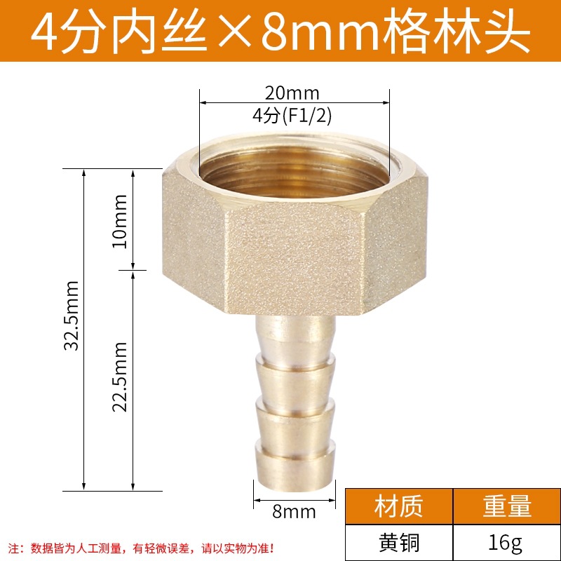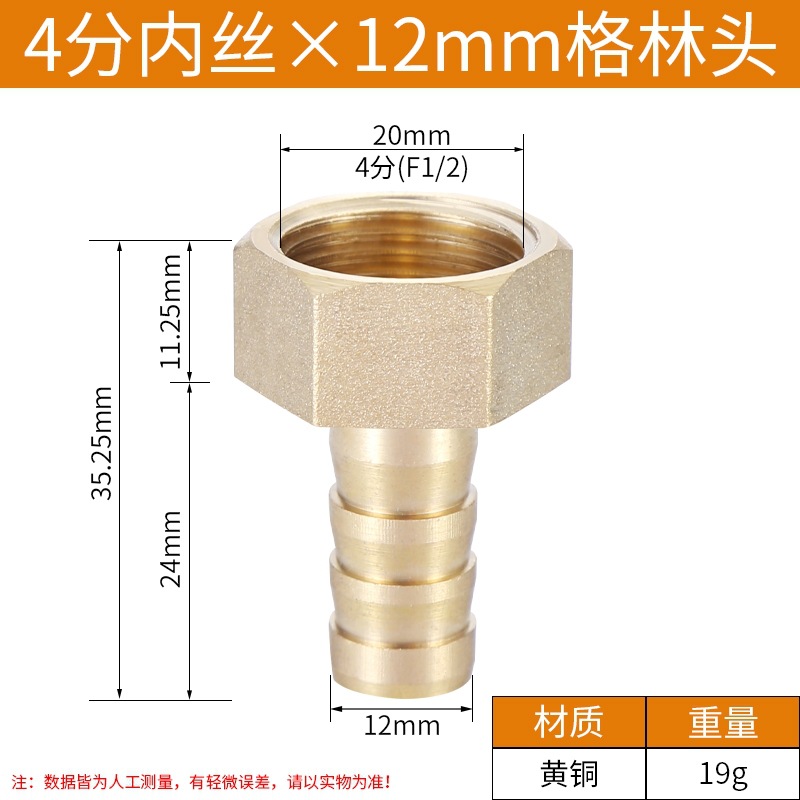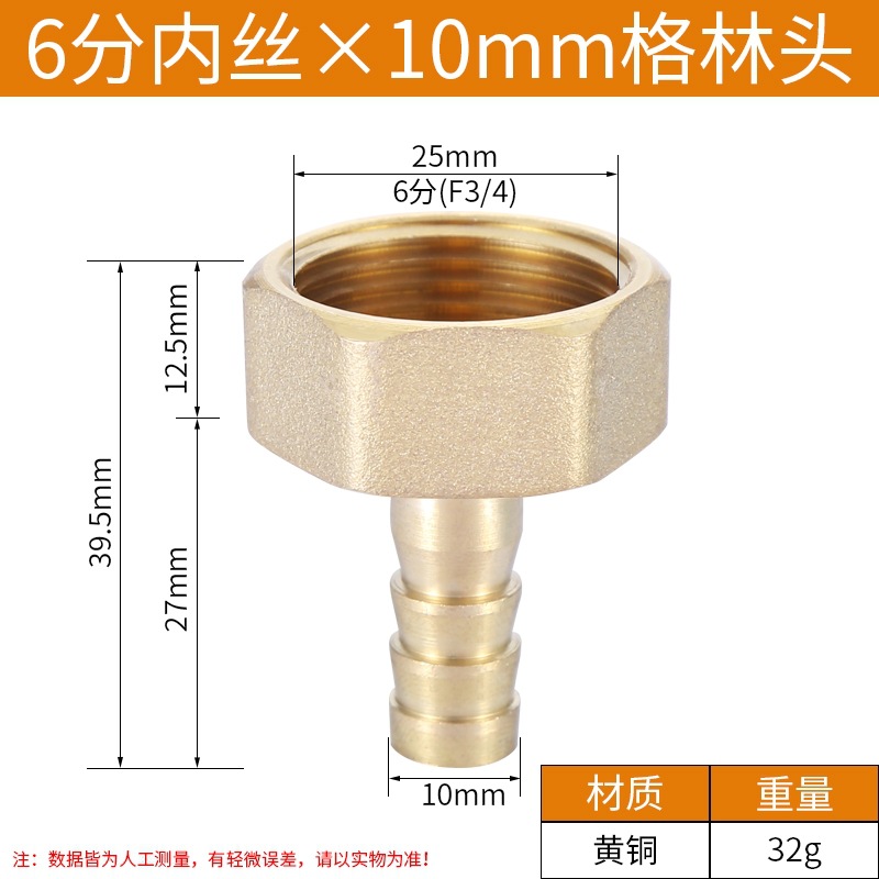 4分纯铜宝塔内丝气管接头6分格林铜接头加厚皮管接头厂家供应