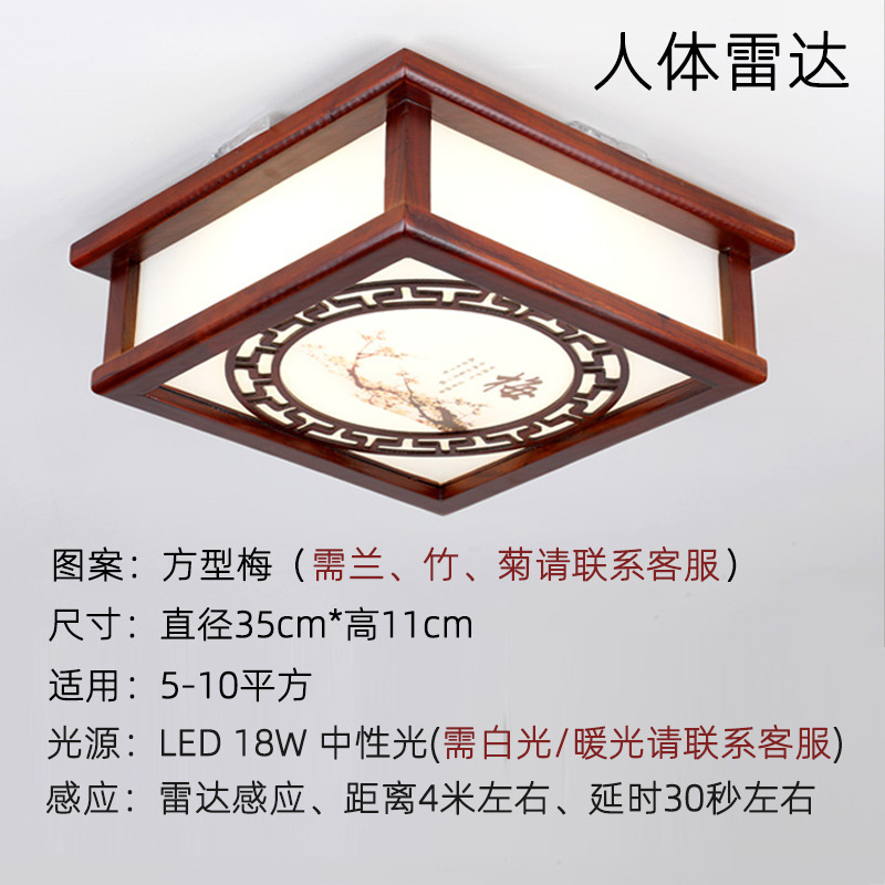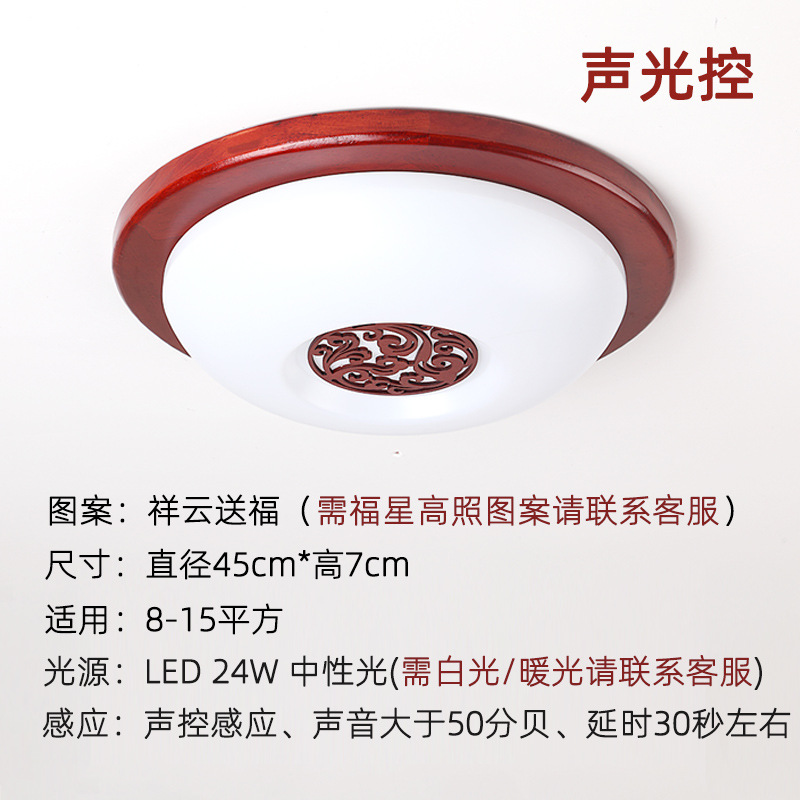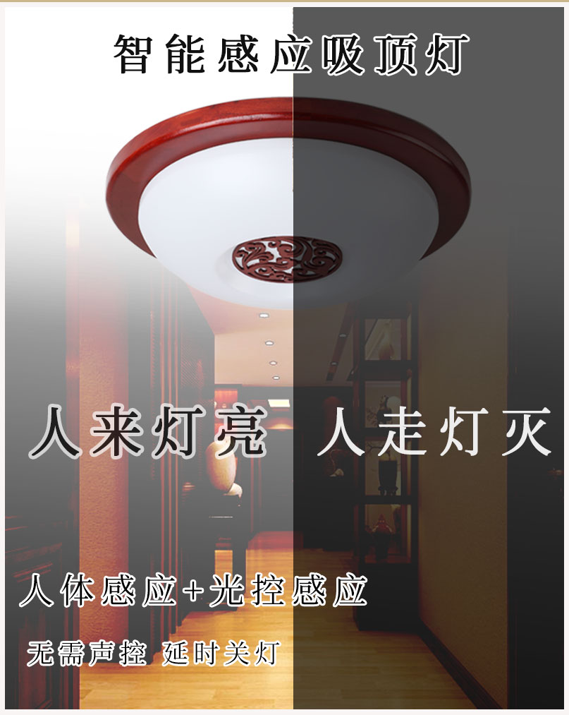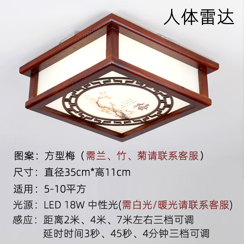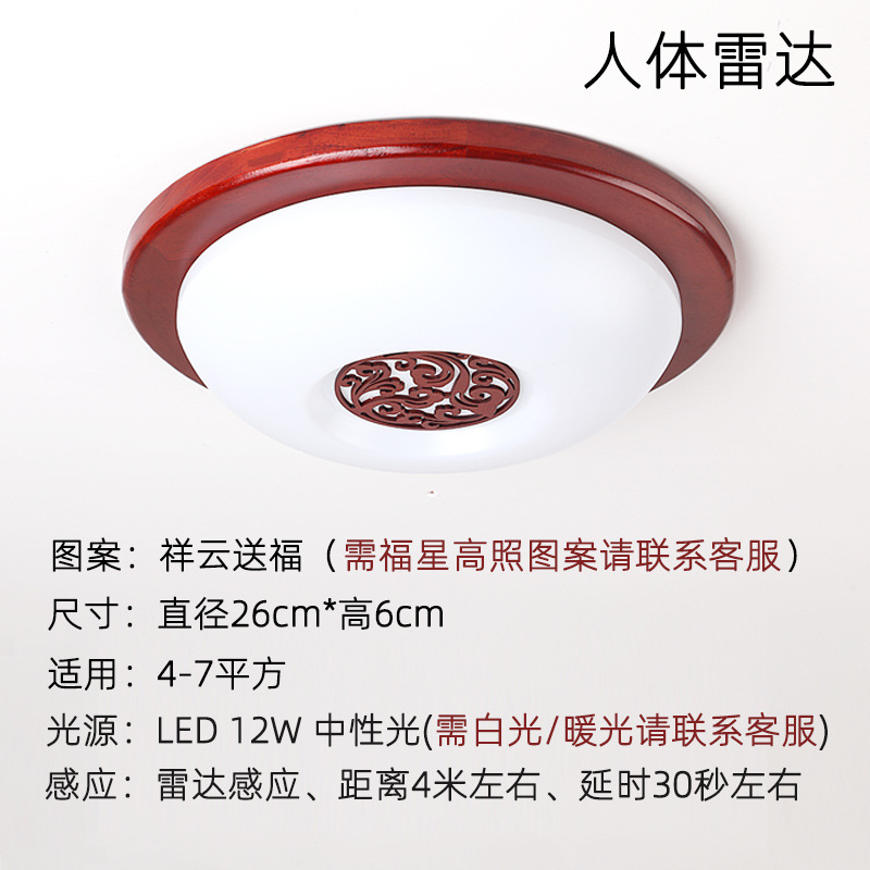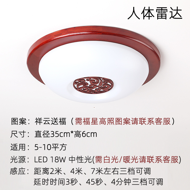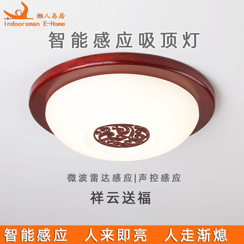 9URT批发中式木艺复古智能人体感应灯全自动声控吸顶灯过道灯走廊