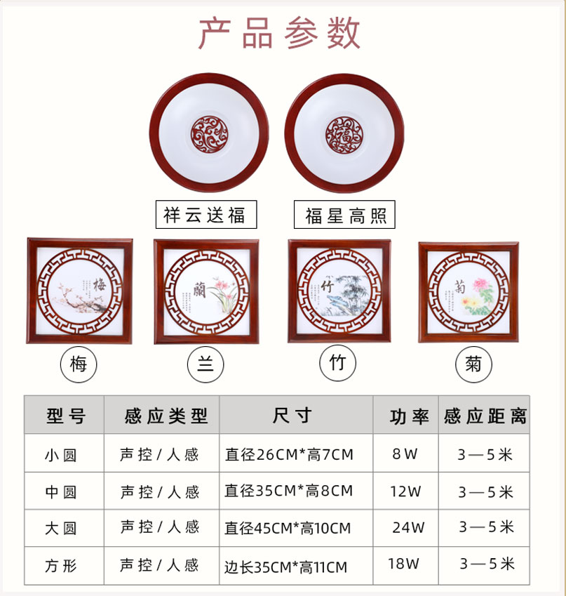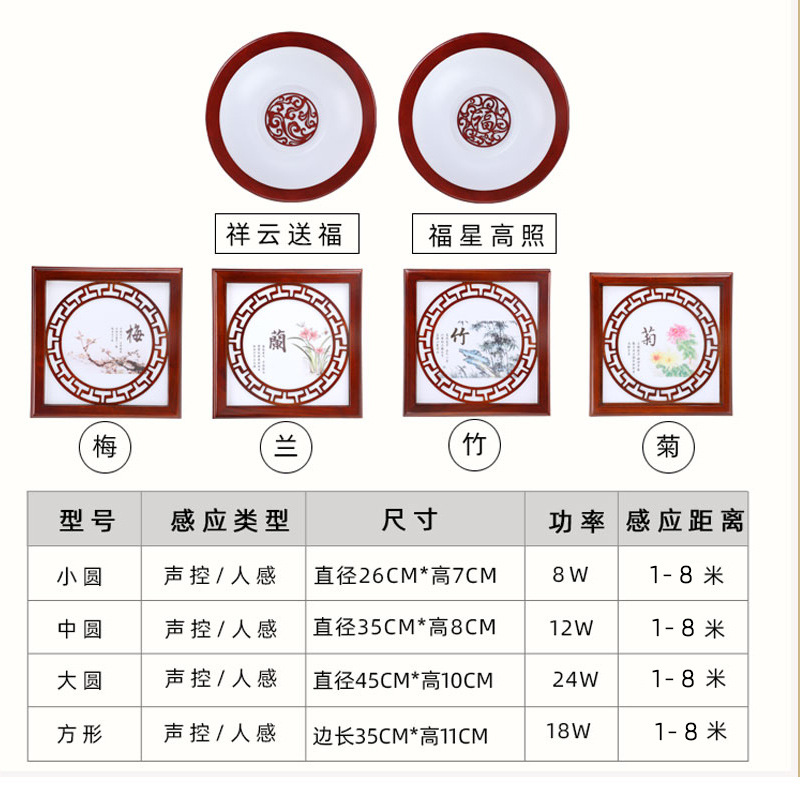 灯光颜色 祥云送福【声控】 直径26cm,祥云送福【感应5米】 直径26cm,祥云送福【声控】 直径35cm,祥云送福【感应5米】 直径35cm,祥云送福【声控】直径45cm,祥云送福【感应5米】直径45cm,【感应1-5-8米可调款】直径26cm,【感应1-5-8米可调款】直径35cm,【感应1-5-8米可调款】直径45cm,声控感应 方形35cm,雷达感应5米 方形35cm,【感应1-5-8米可调款】方形35cm