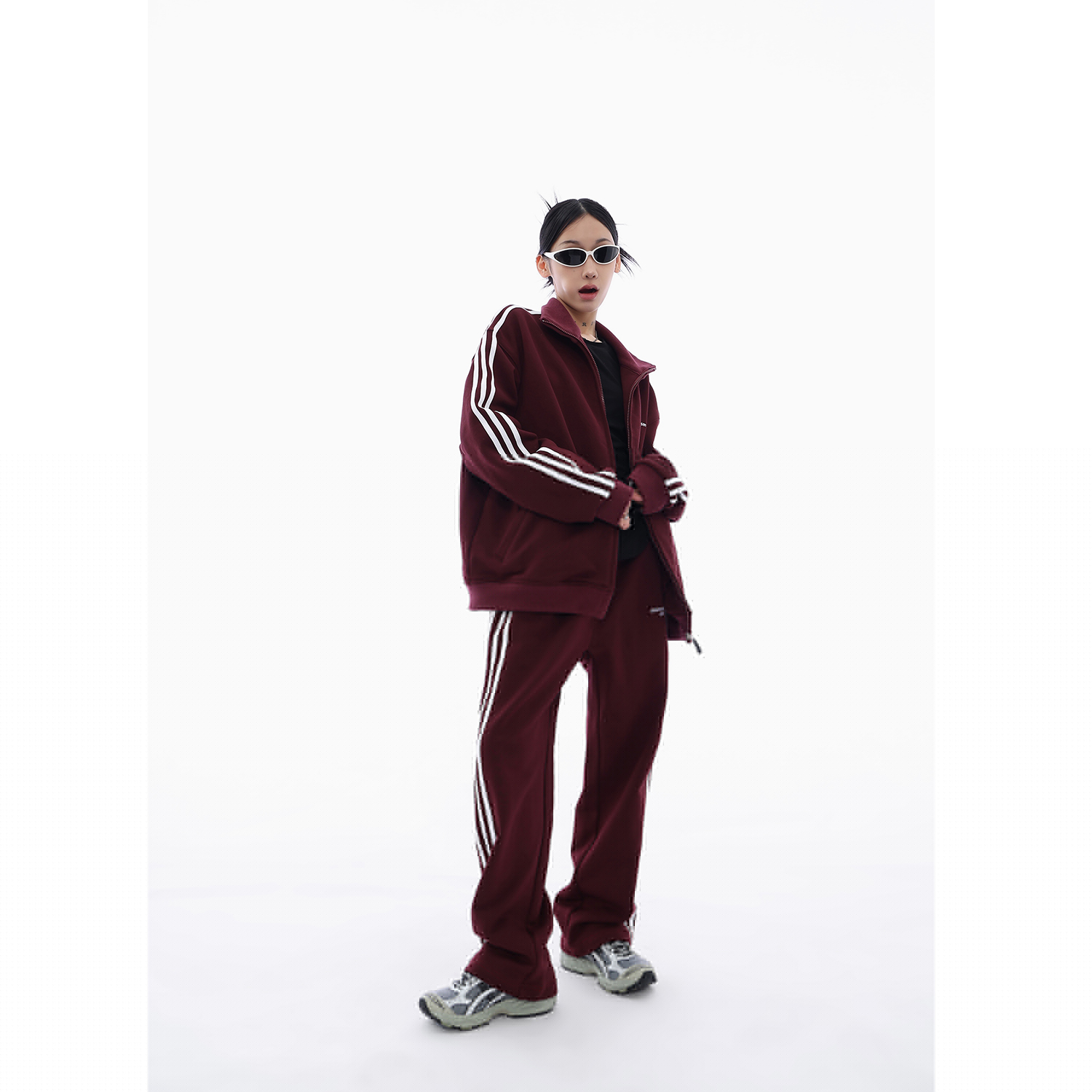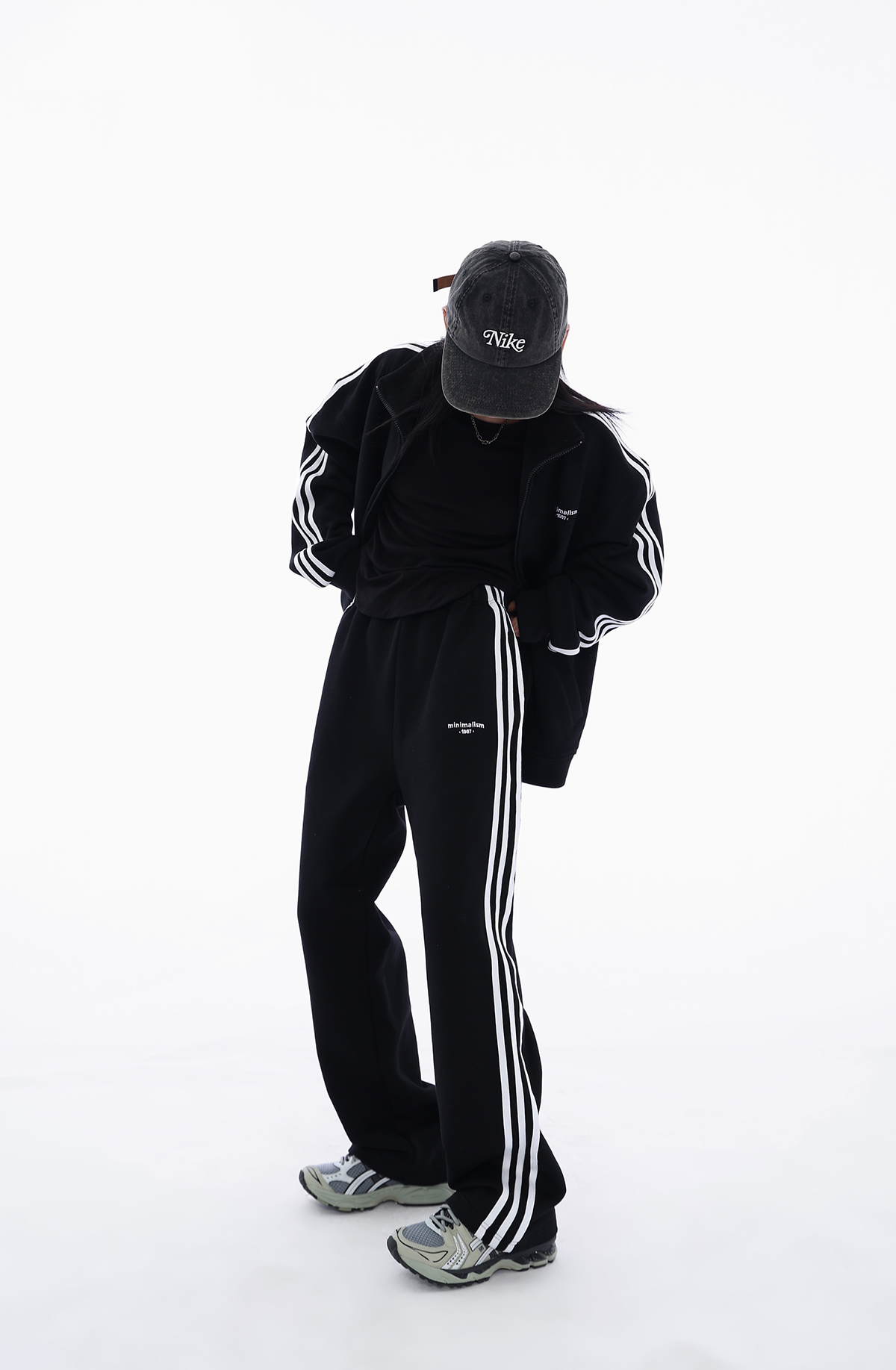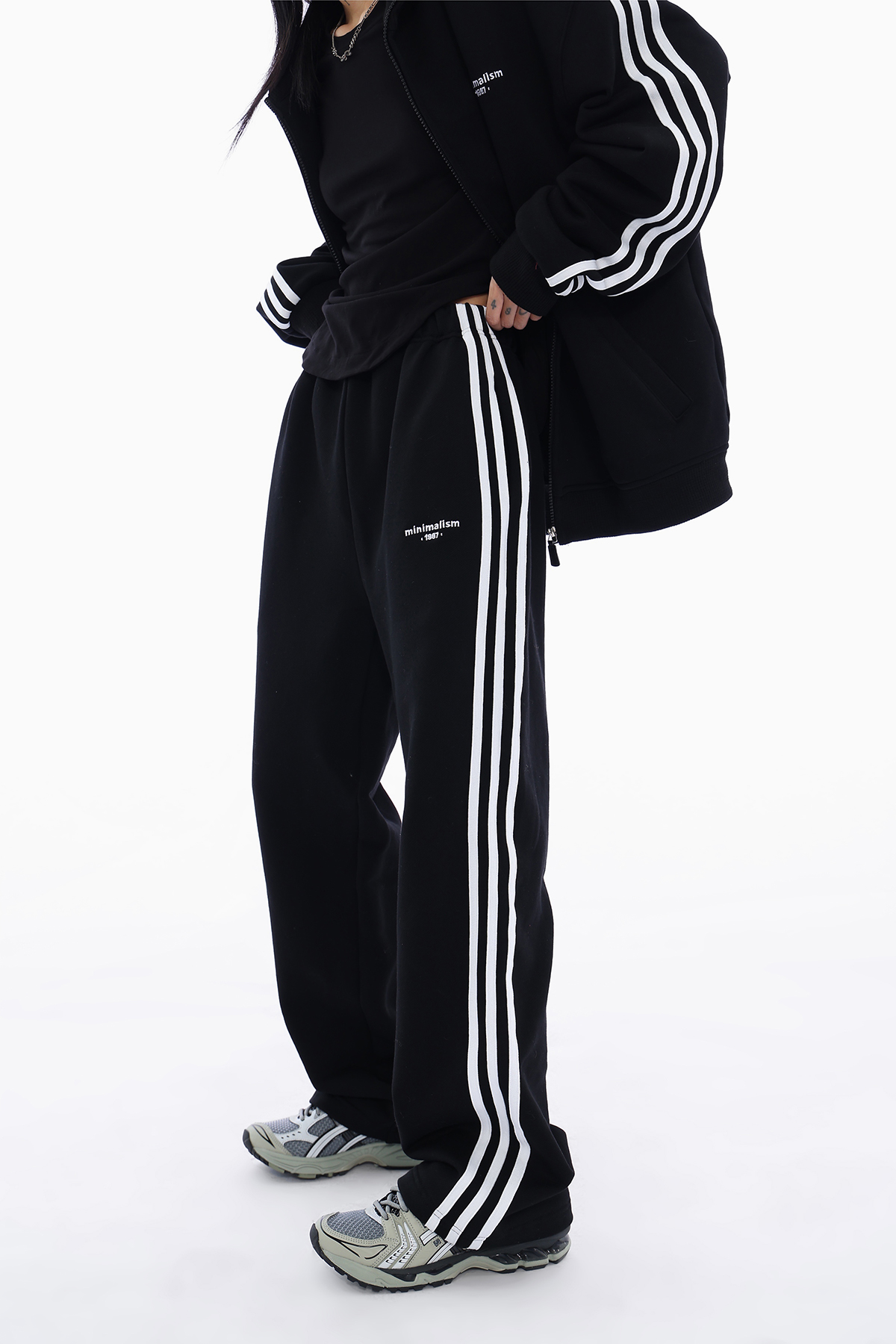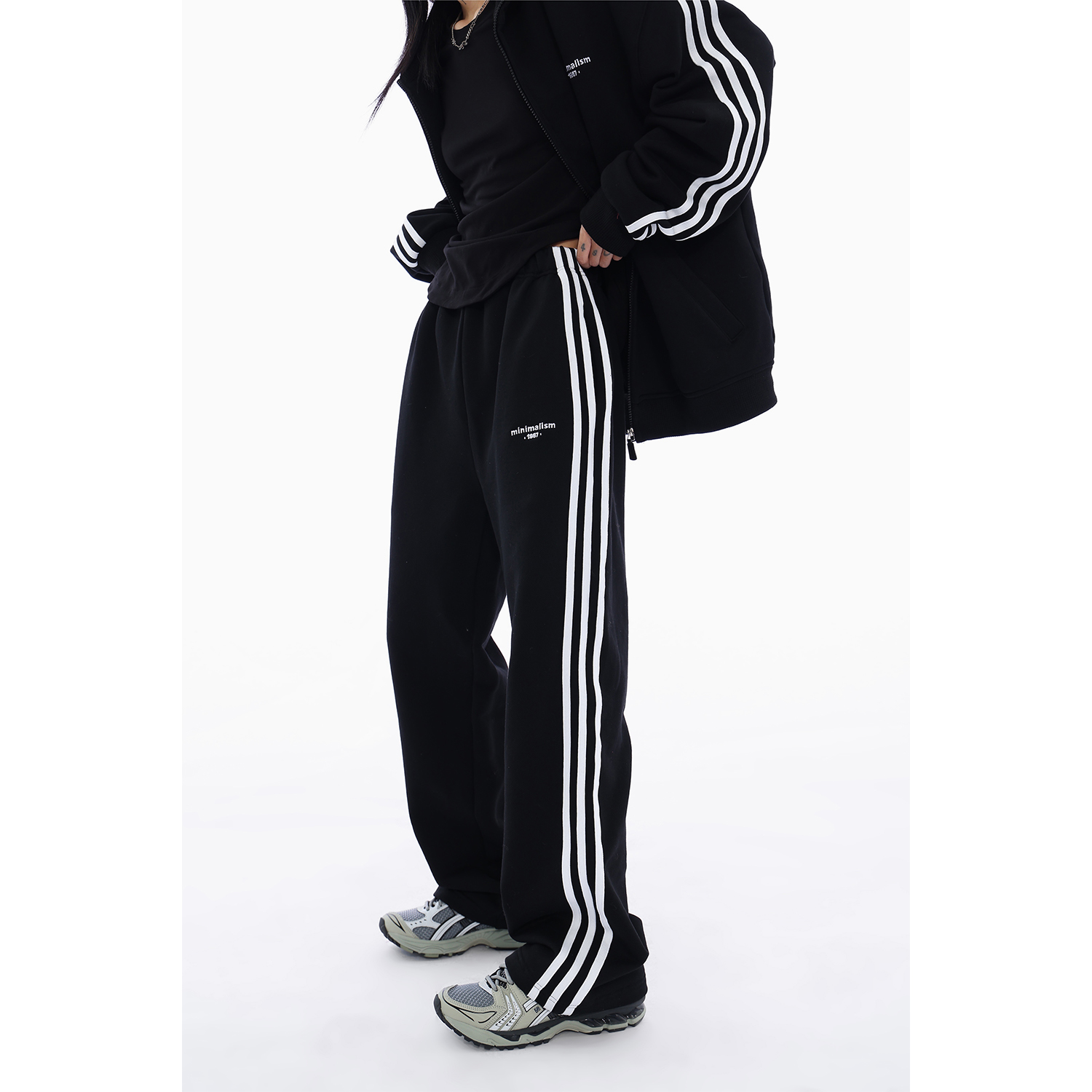 Acestudios 三槓加厚厚棉T開衫+長褲2件套女2023春秋新款寬鬆套裝