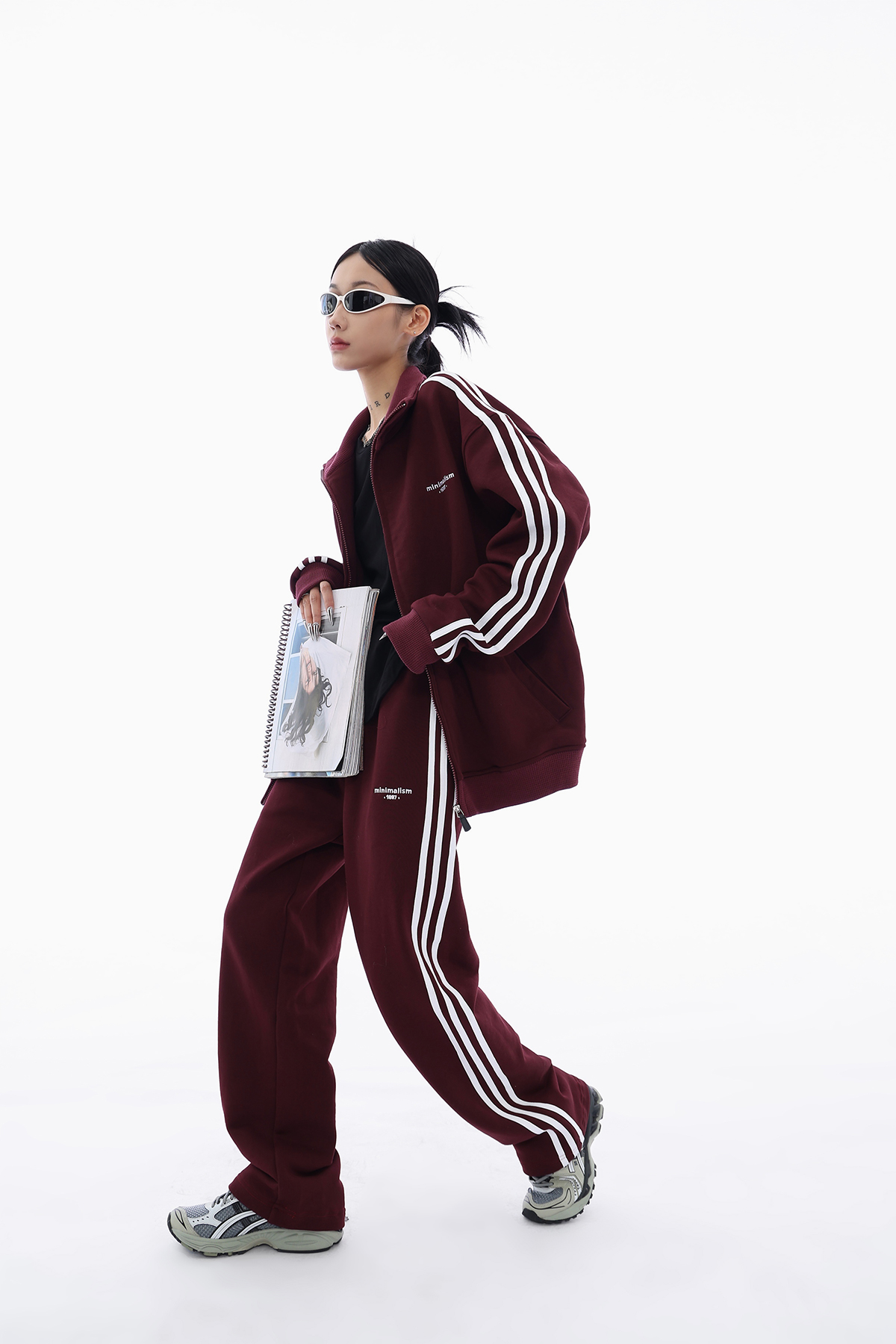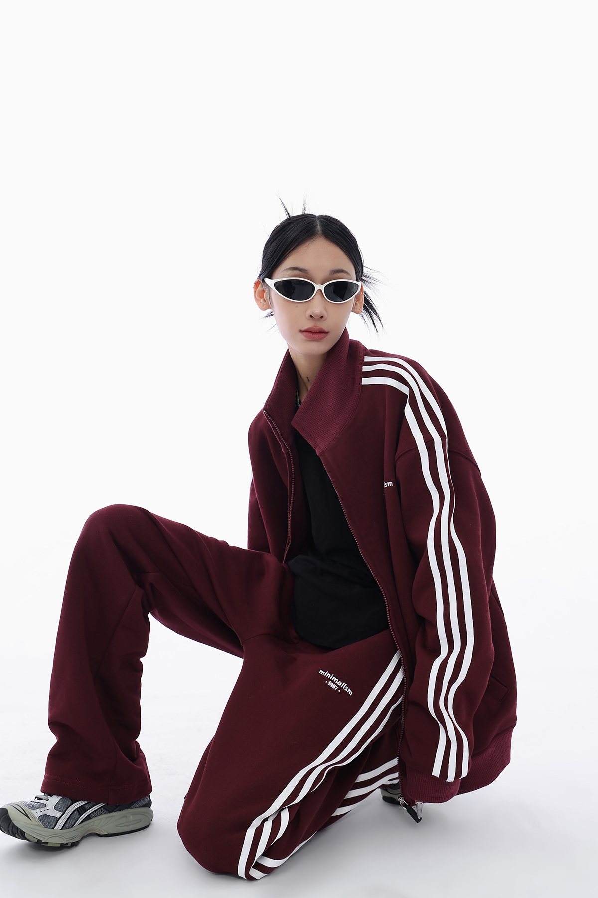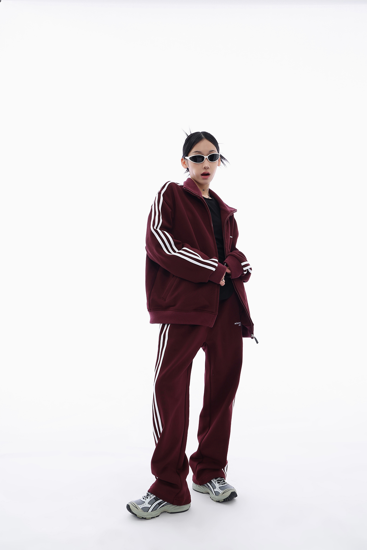 Acestudios 三槓加厚厚棉T開衫+長褲2件套女2023春秋新款寬鬆套裝
