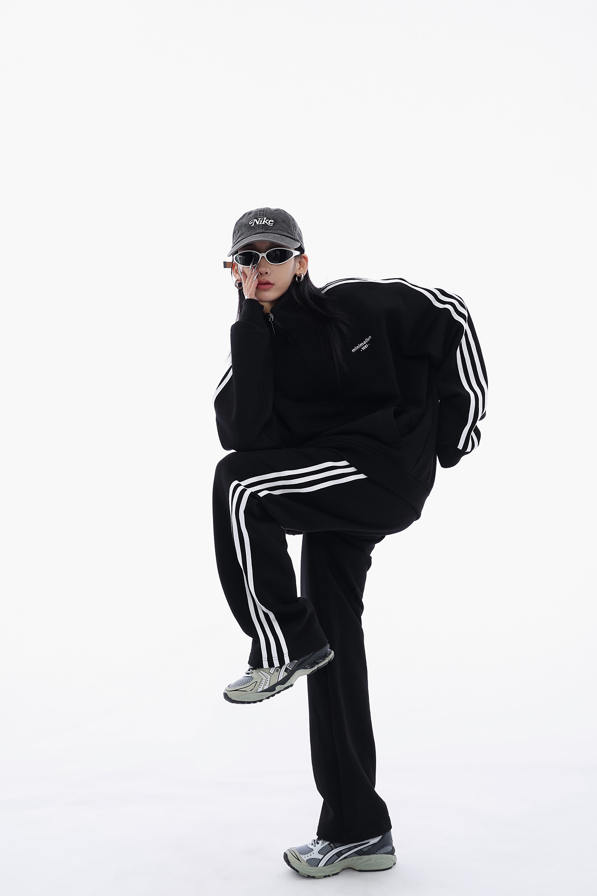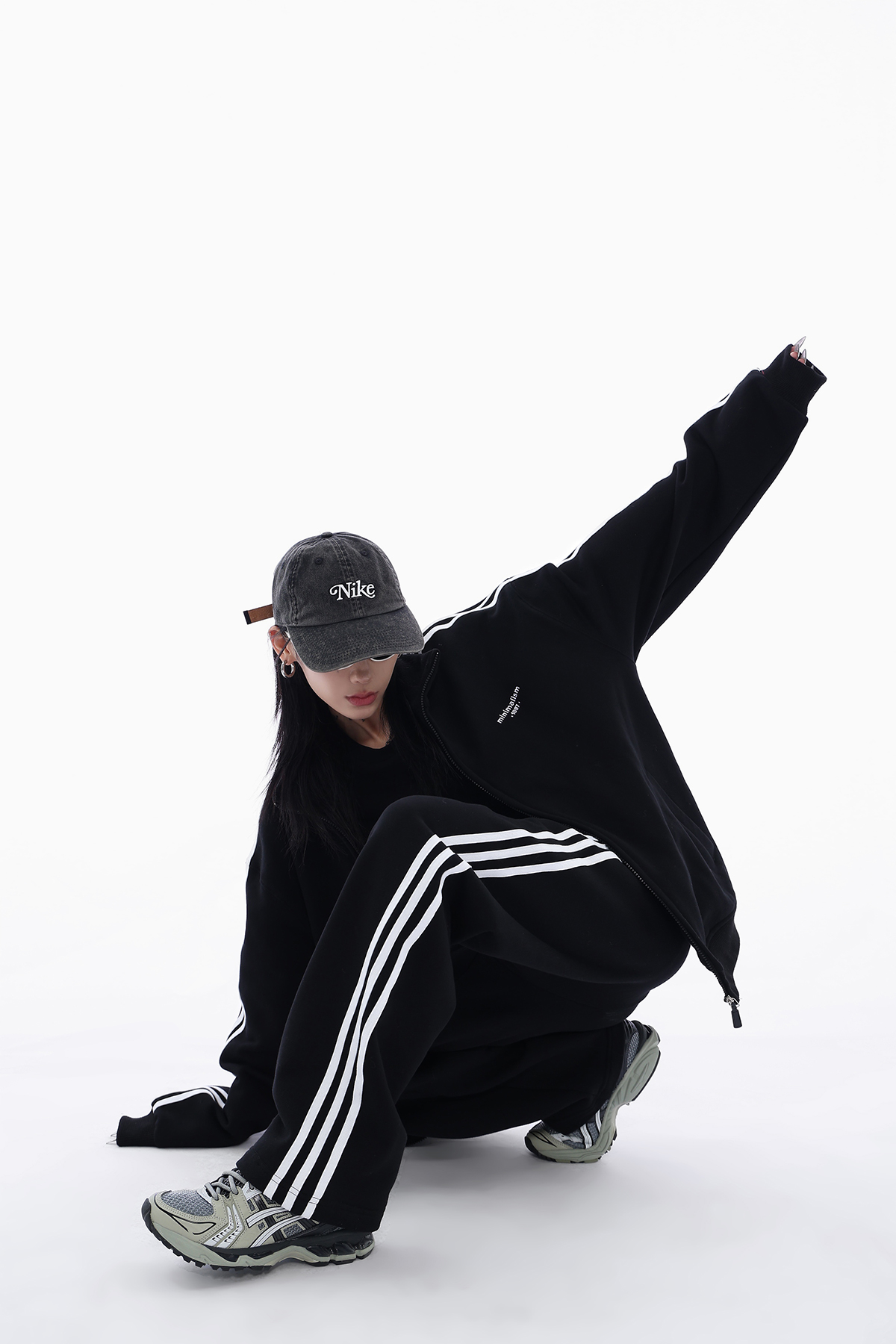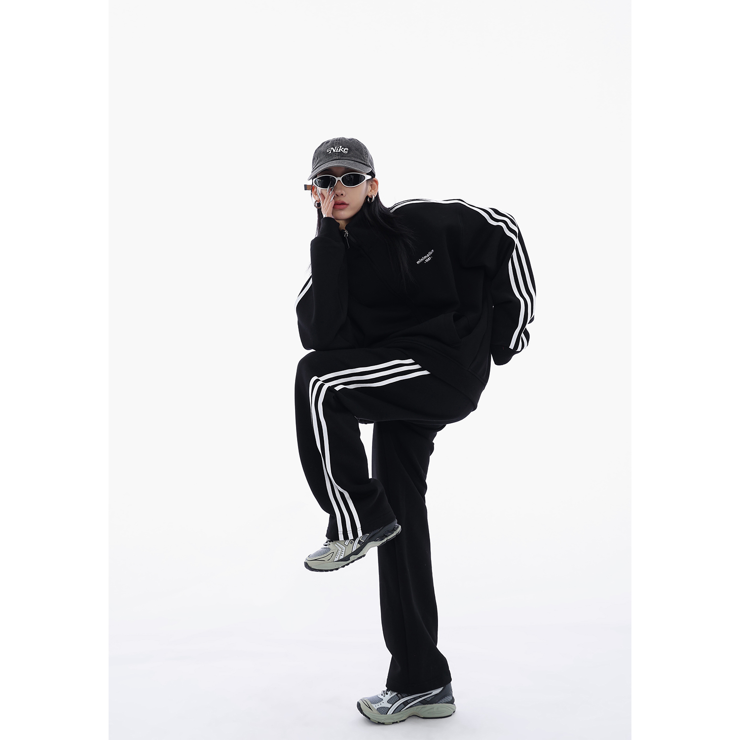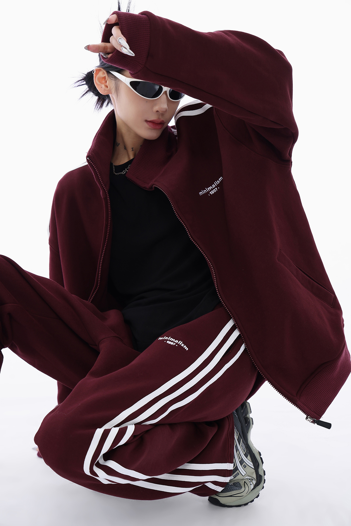 Acestudios 三槓加厚厚棉T開衫+長褲2件套女2023春秋新款寬鬆套裝