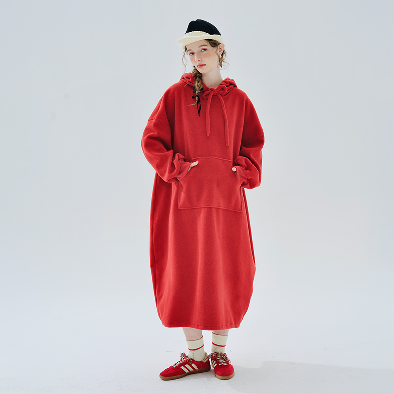 imakokoni 2023秋冬新品原創多富絨連帽上衣洋裝234336