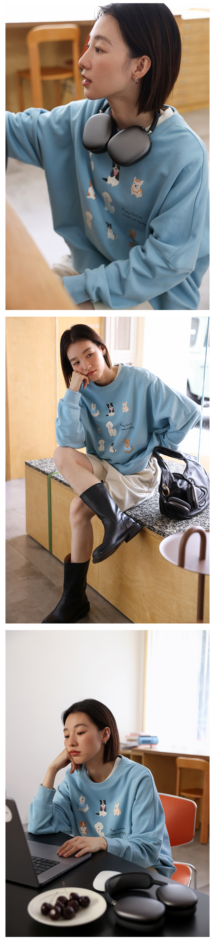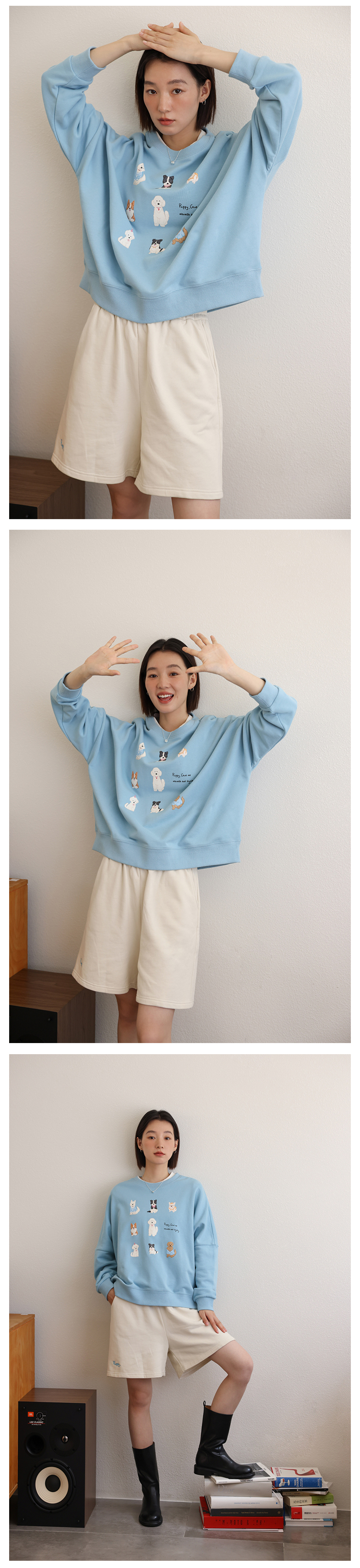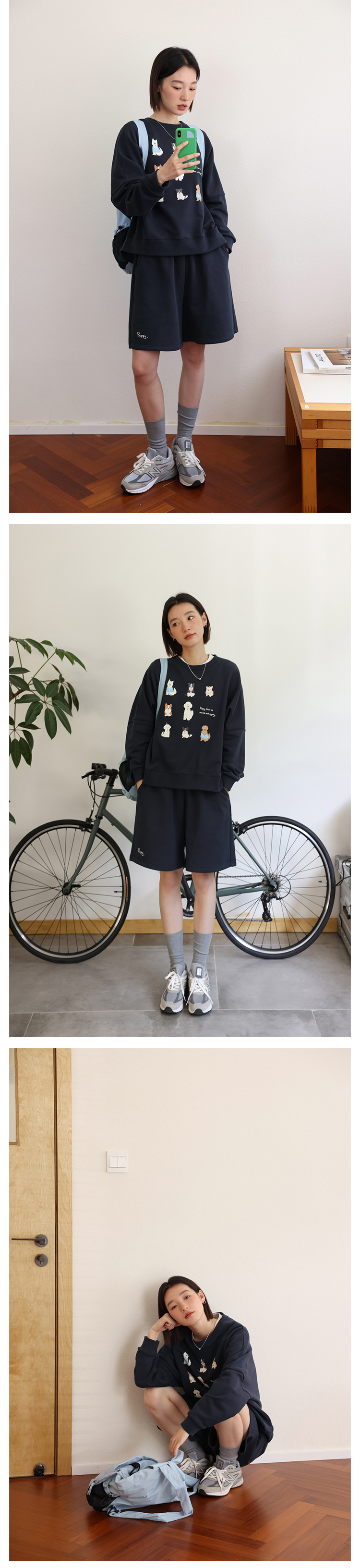 顏色分類 天藍色(衛衣),淺花灰(衛衣),藏青色(衛衣),米白色(短褲),淺花灰(短褲),藏青色(短褲)