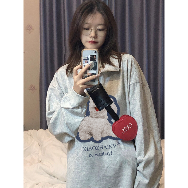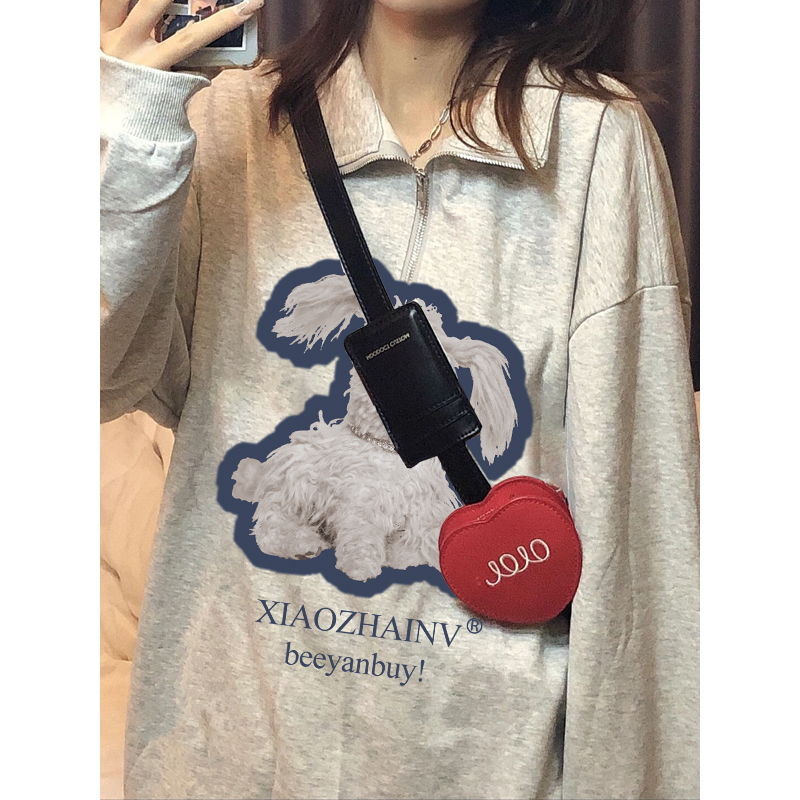 Polo翻領衛衣女款2023秋季新款小狗設計感休閒百搭半拉鍊寬鬆外套