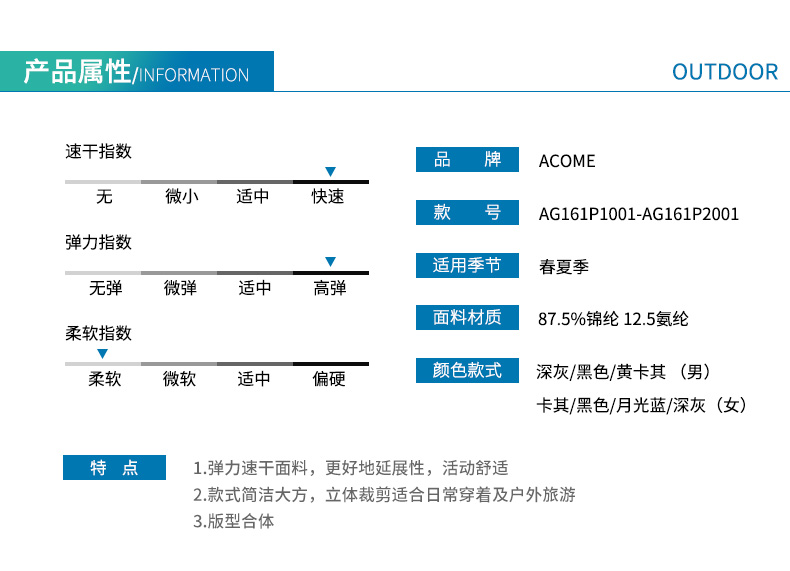 主要功能 透氣,速乾