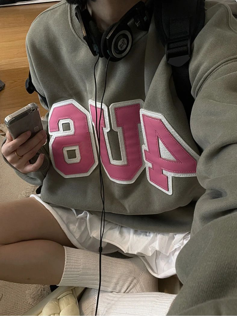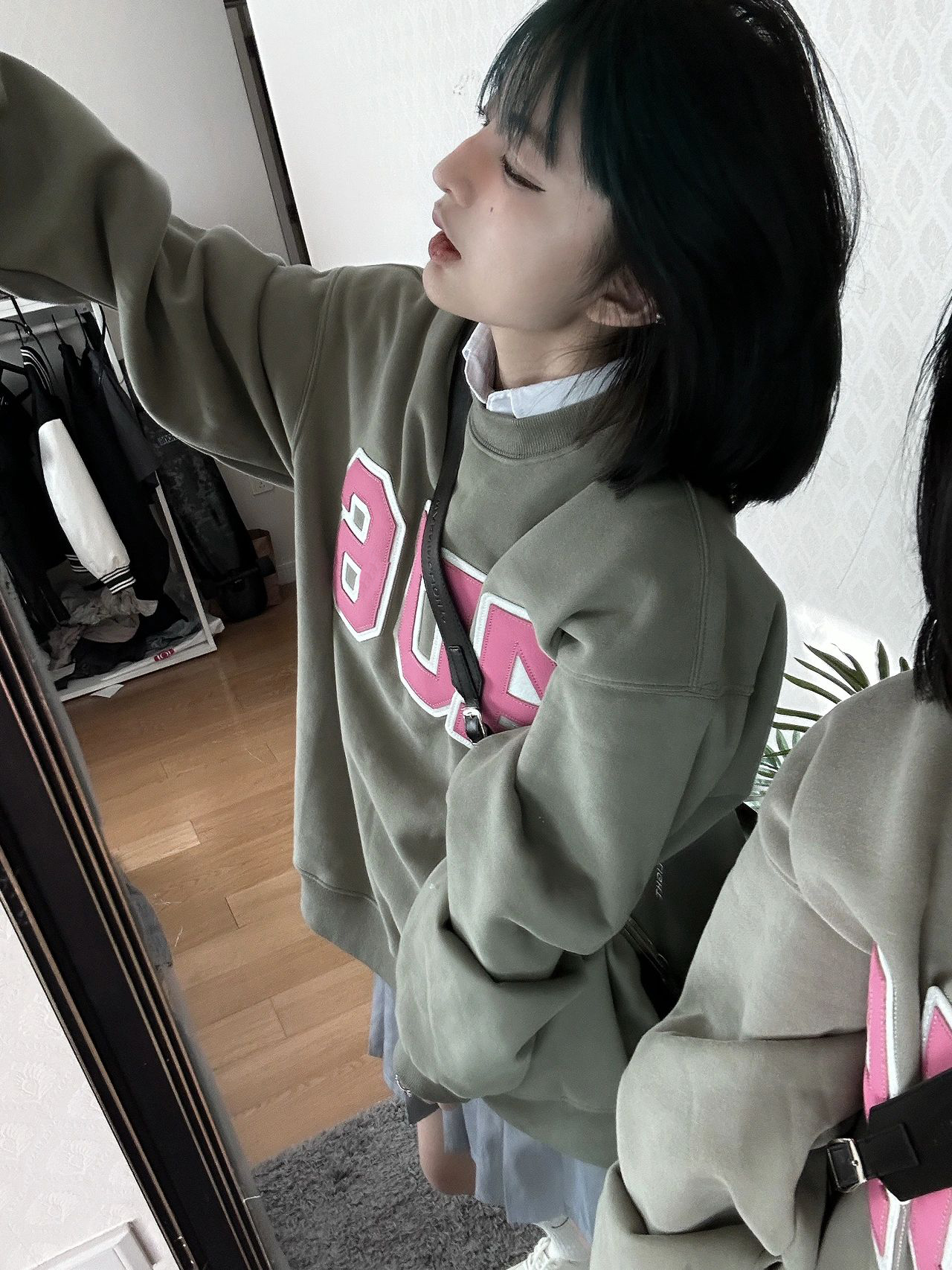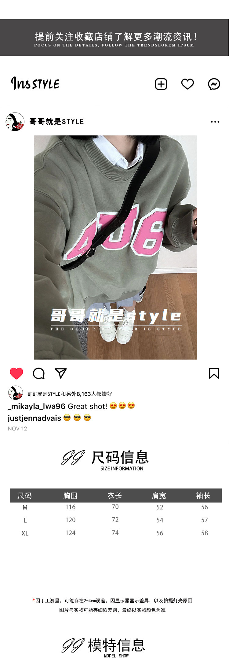 圓領套頭厚棉T女春季美式復古布貼繡字母設計感小眾寬鬆百搭上衣潮