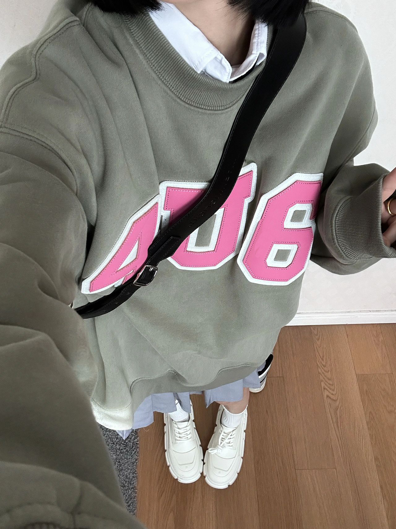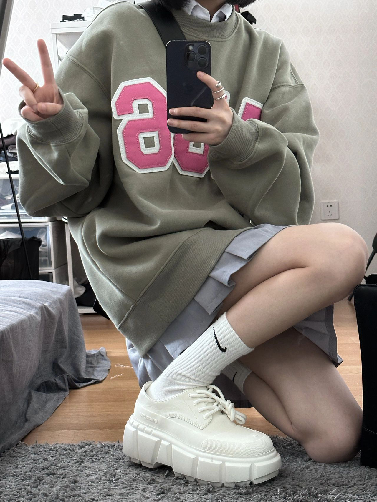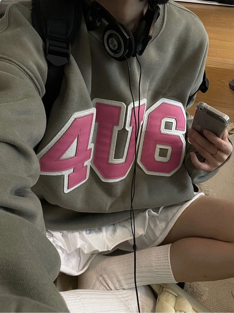 圓領套頭厚棉T女春季美式復古布貼繡字母設計感小眾寬鬆百搭上衣潮