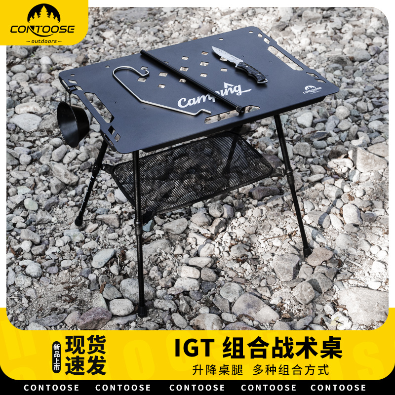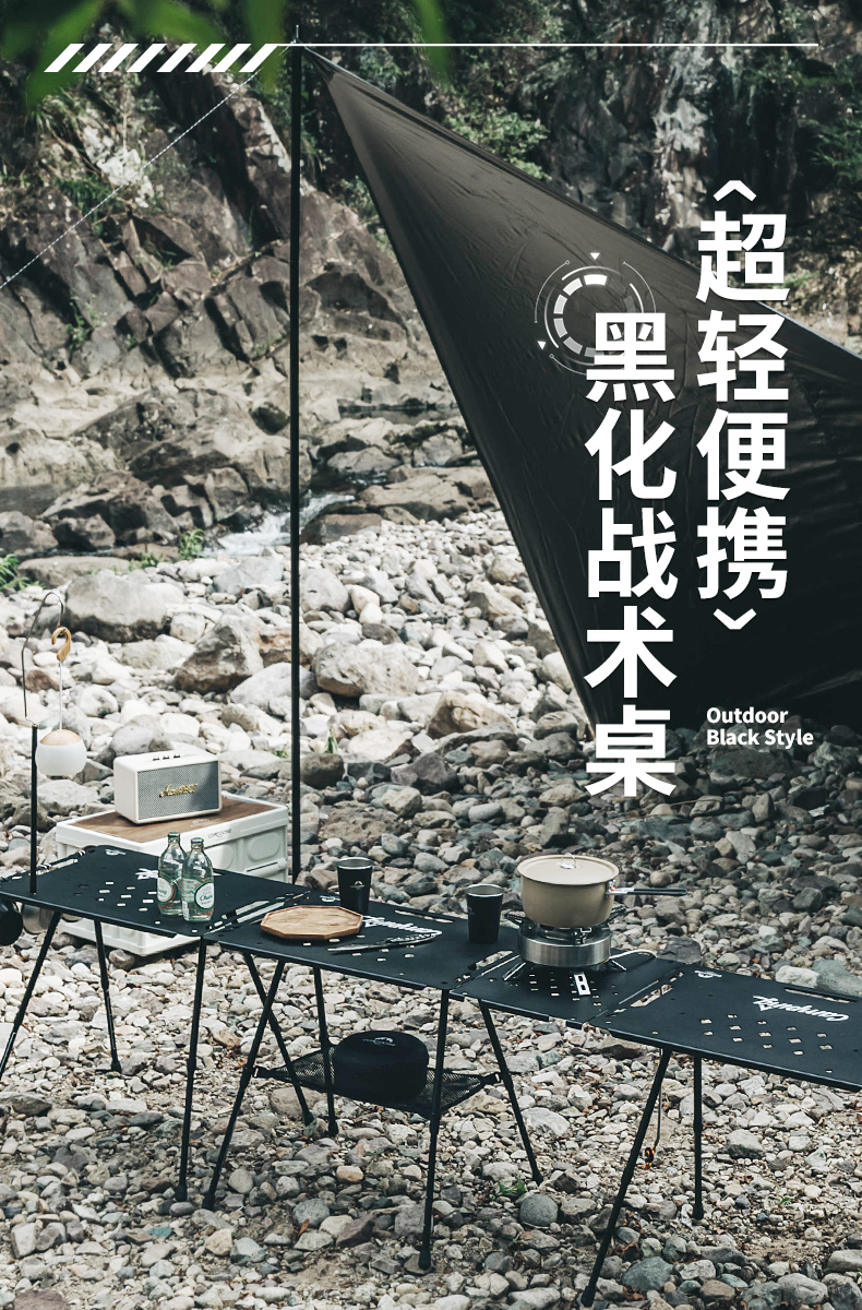 戶外露營鋁合金輕量化戰術桌摺疊桌子可攜式蛋卷桌黑化風餐桌野餐