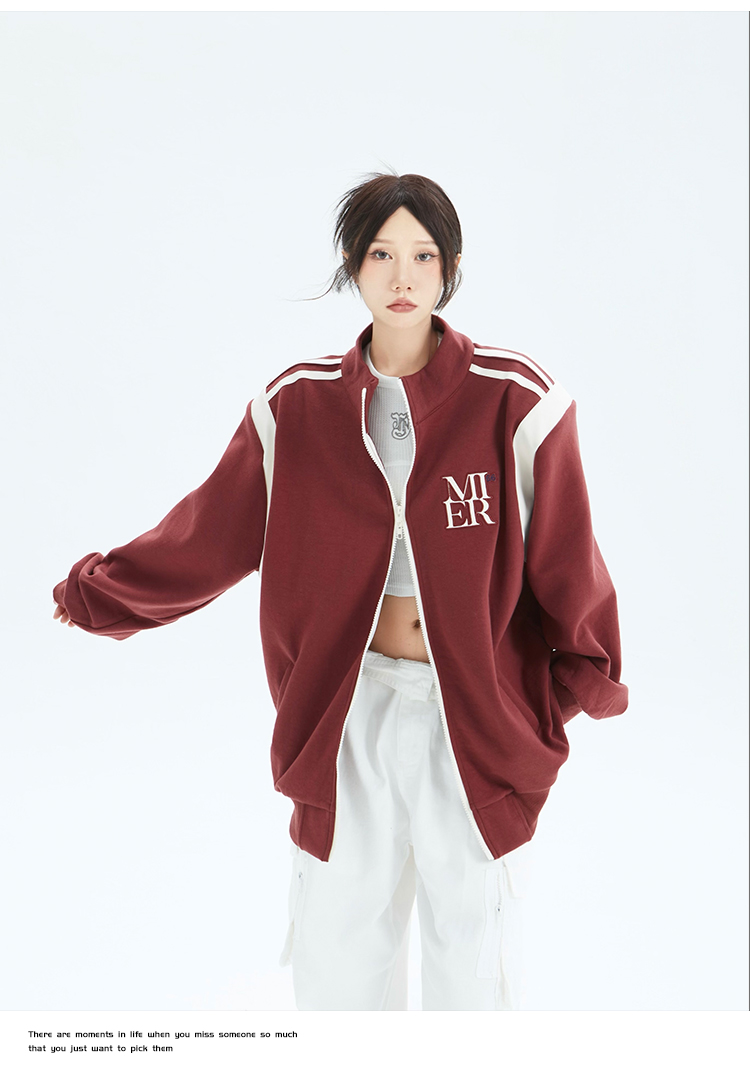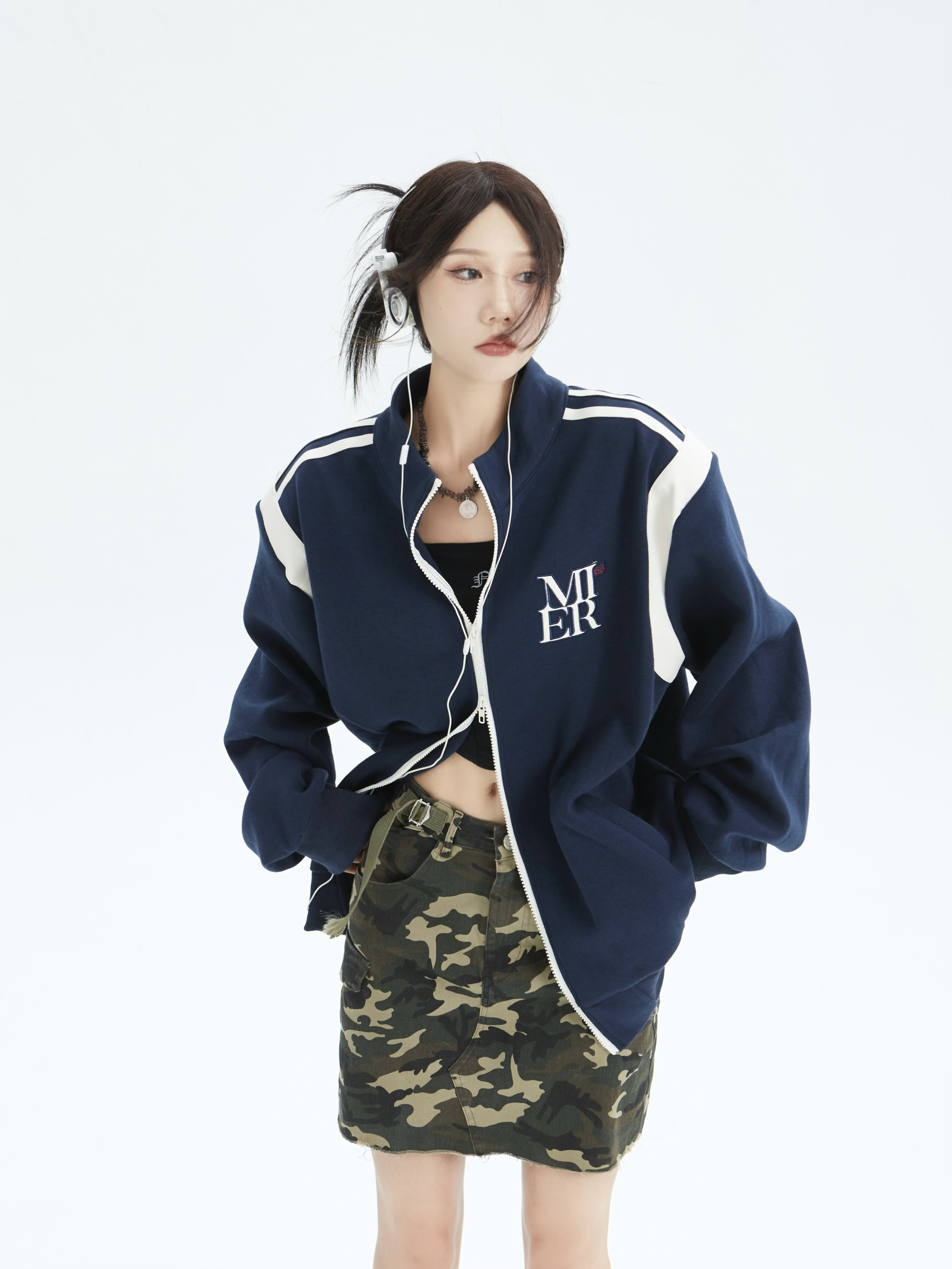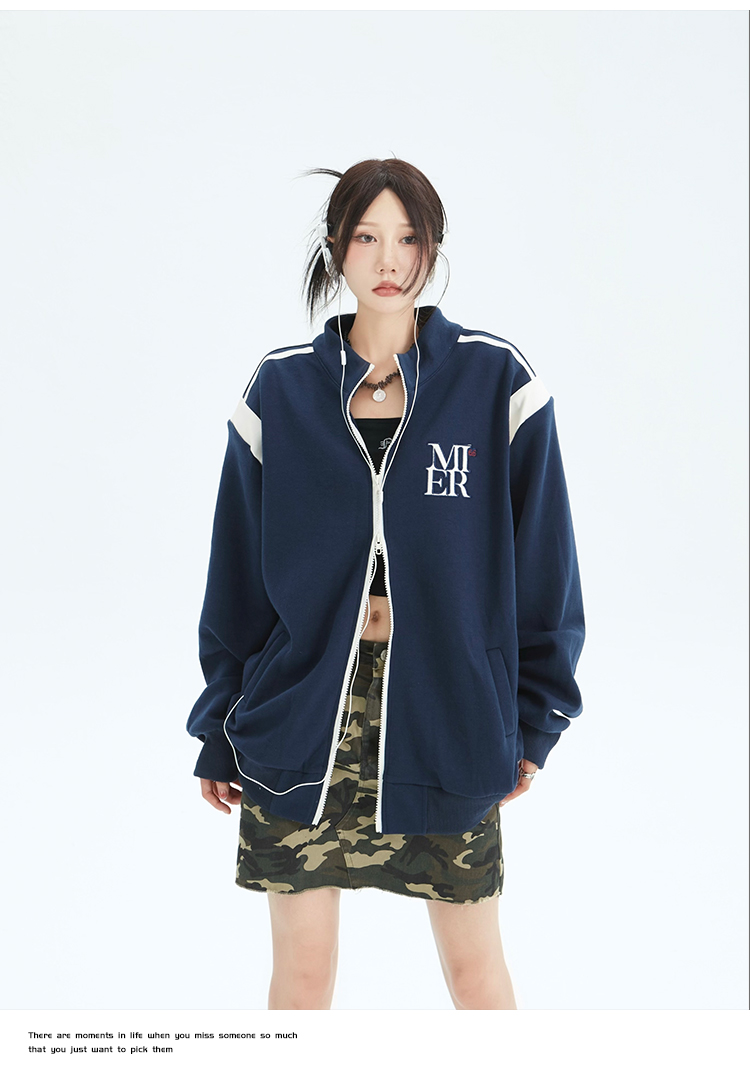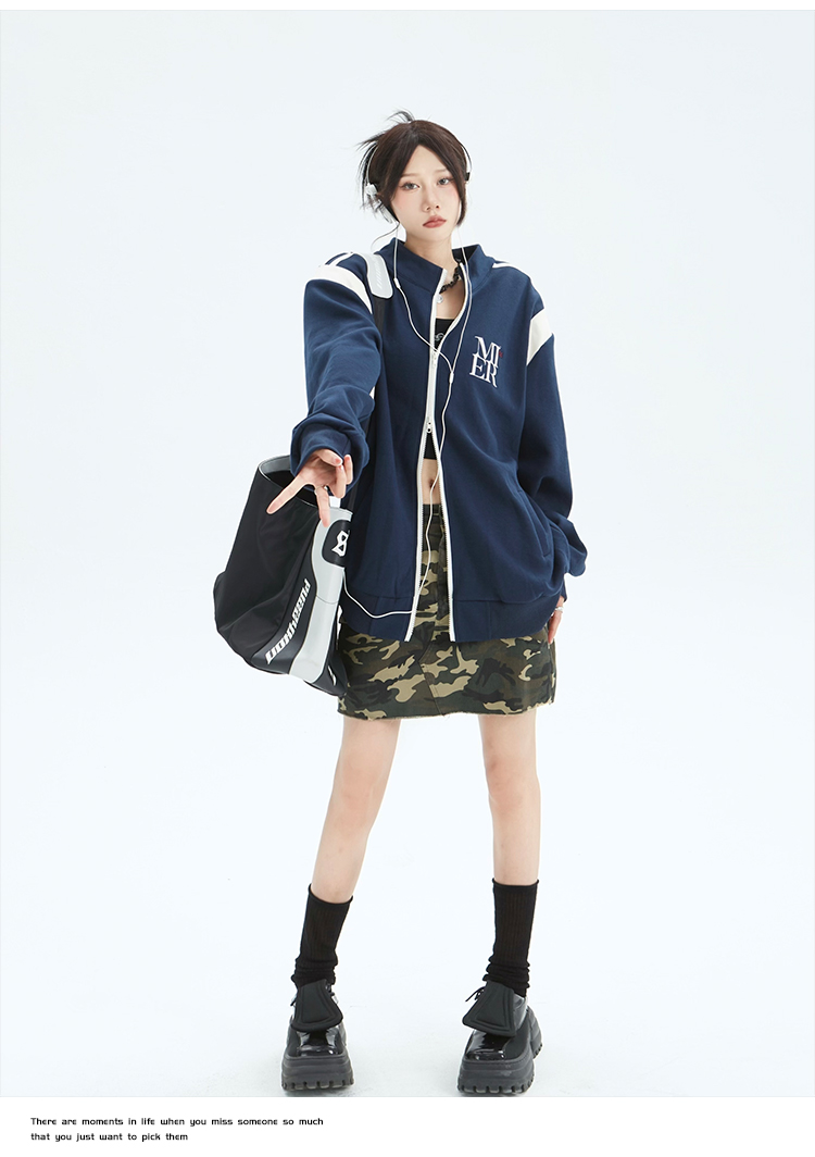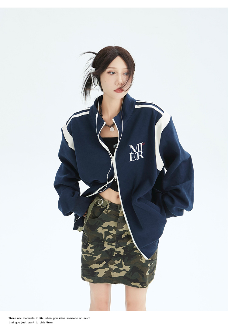 ZHL STUDIO 三條槓拼皮棒球服外套時尚休閒雙拉鍊上衣ins韓版夾克