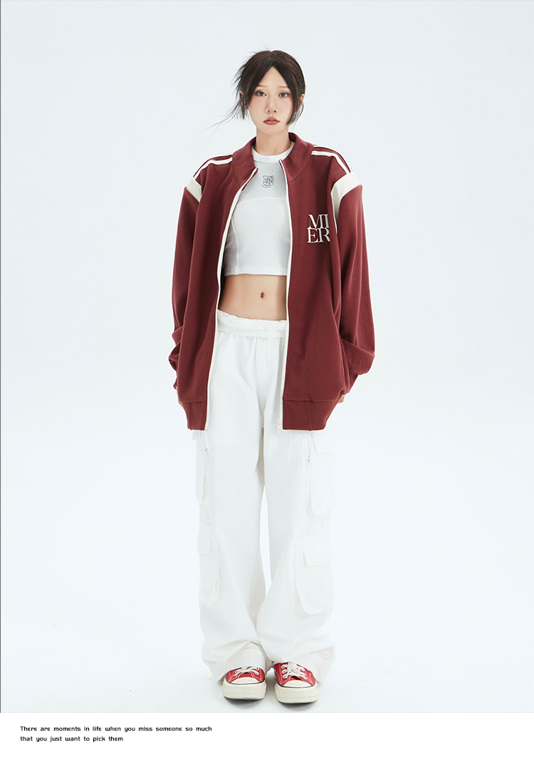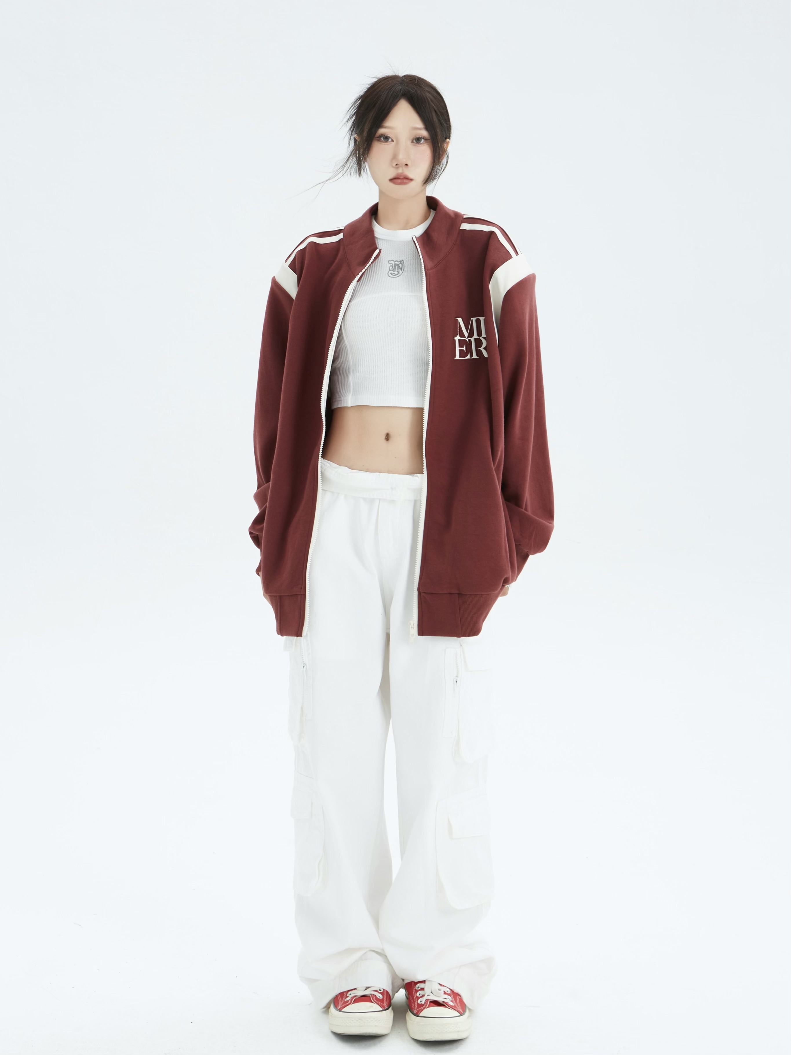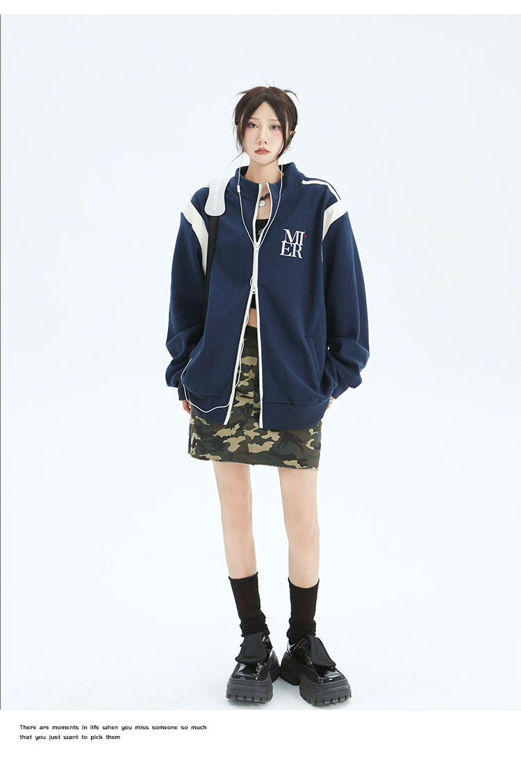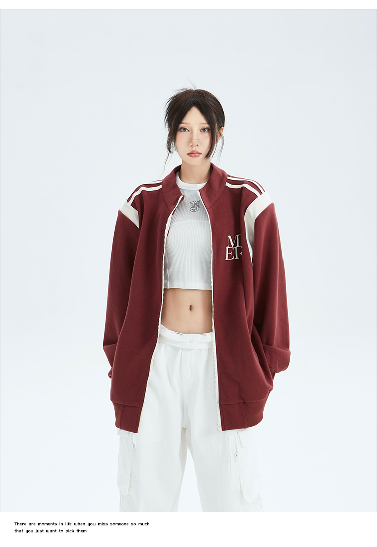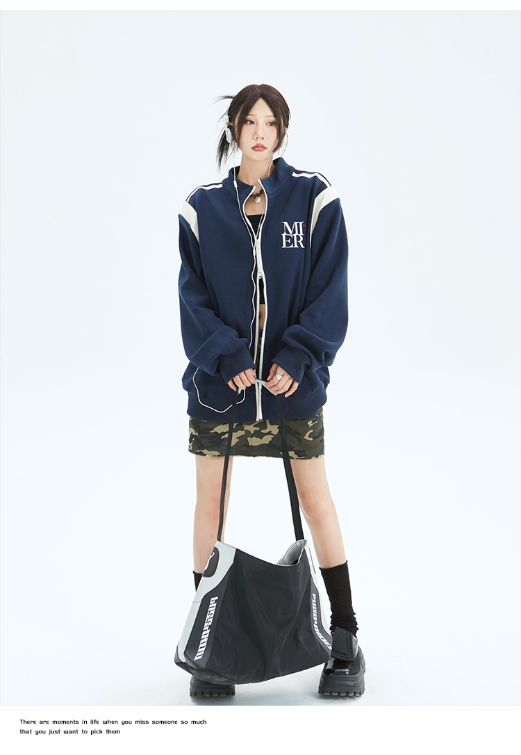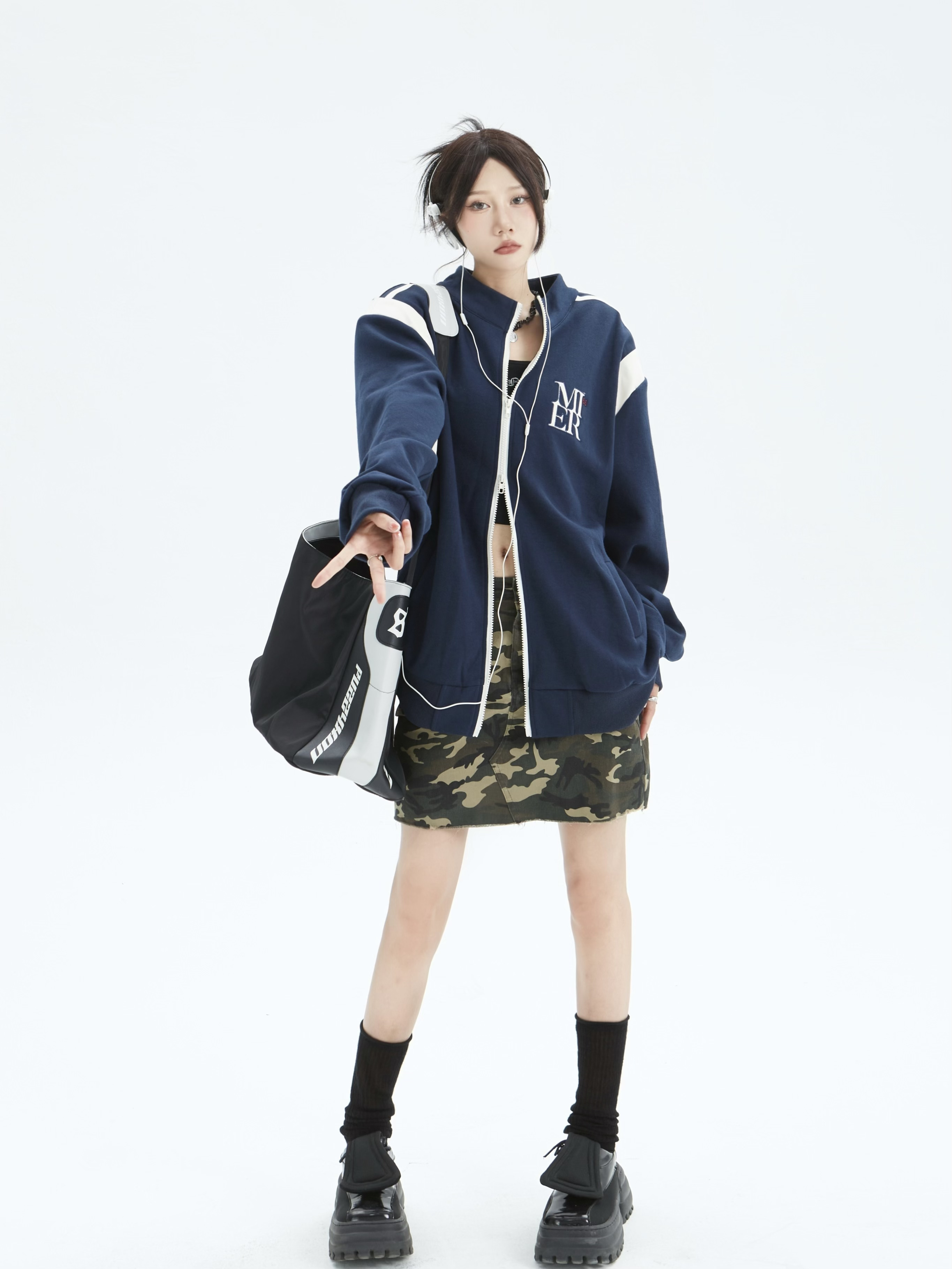 ZHL STUDIO 三條槓拼皮棒球服外套時尚休閒雙拉鍊上衣ins韓版夾克