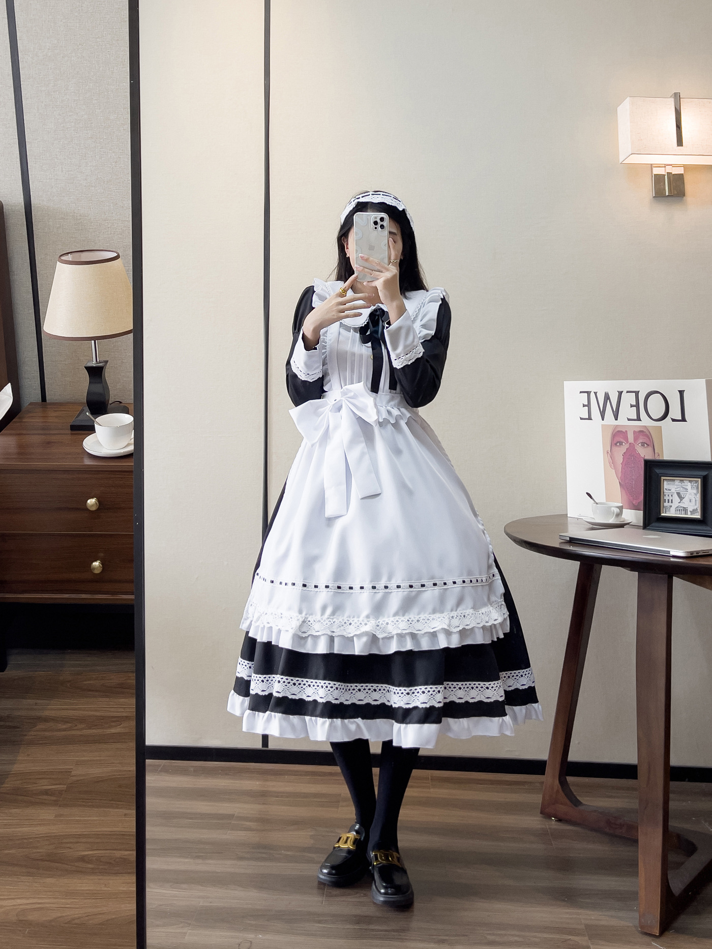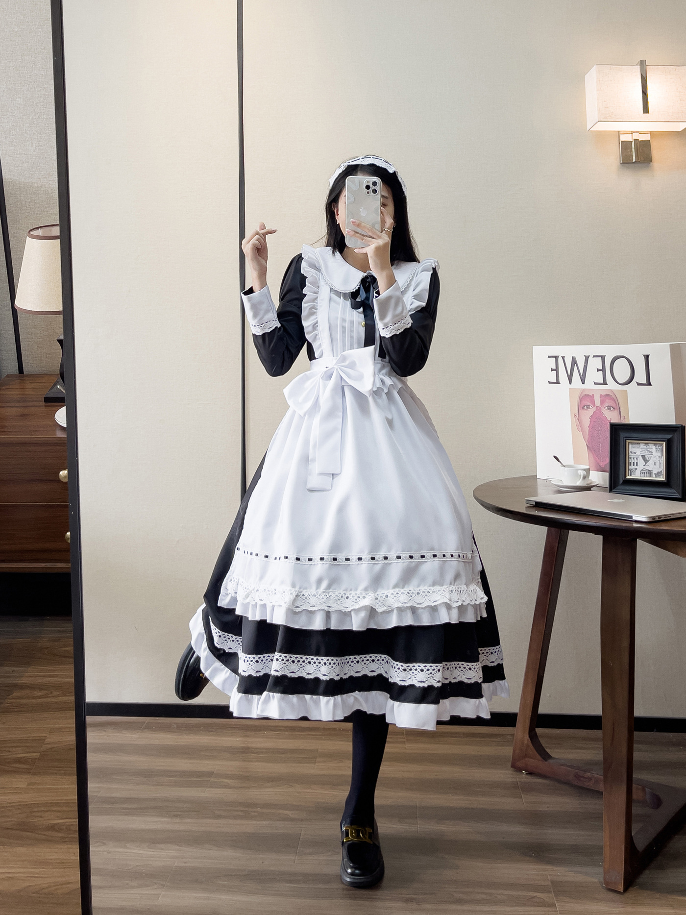 衣服套餐包含:连衣裙+围裙+头饰+黑色领带
