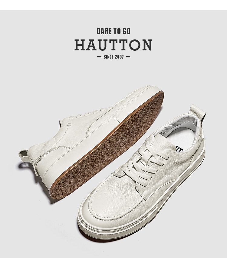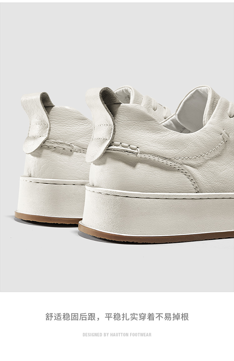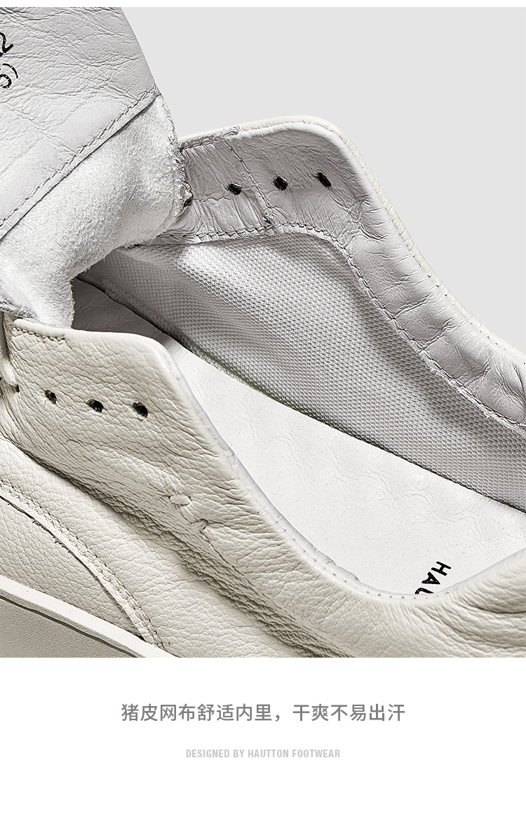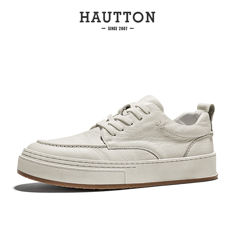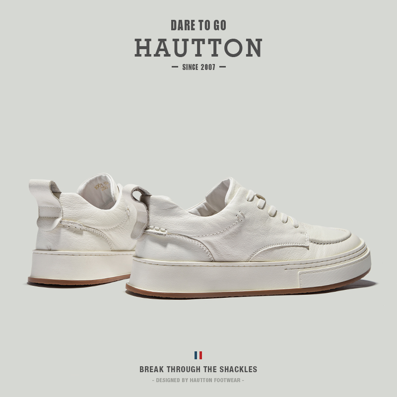 HauttonJeans小白鞋男高級感白色板鞋男鞋夏季頭層牛皮男士休閒鞋