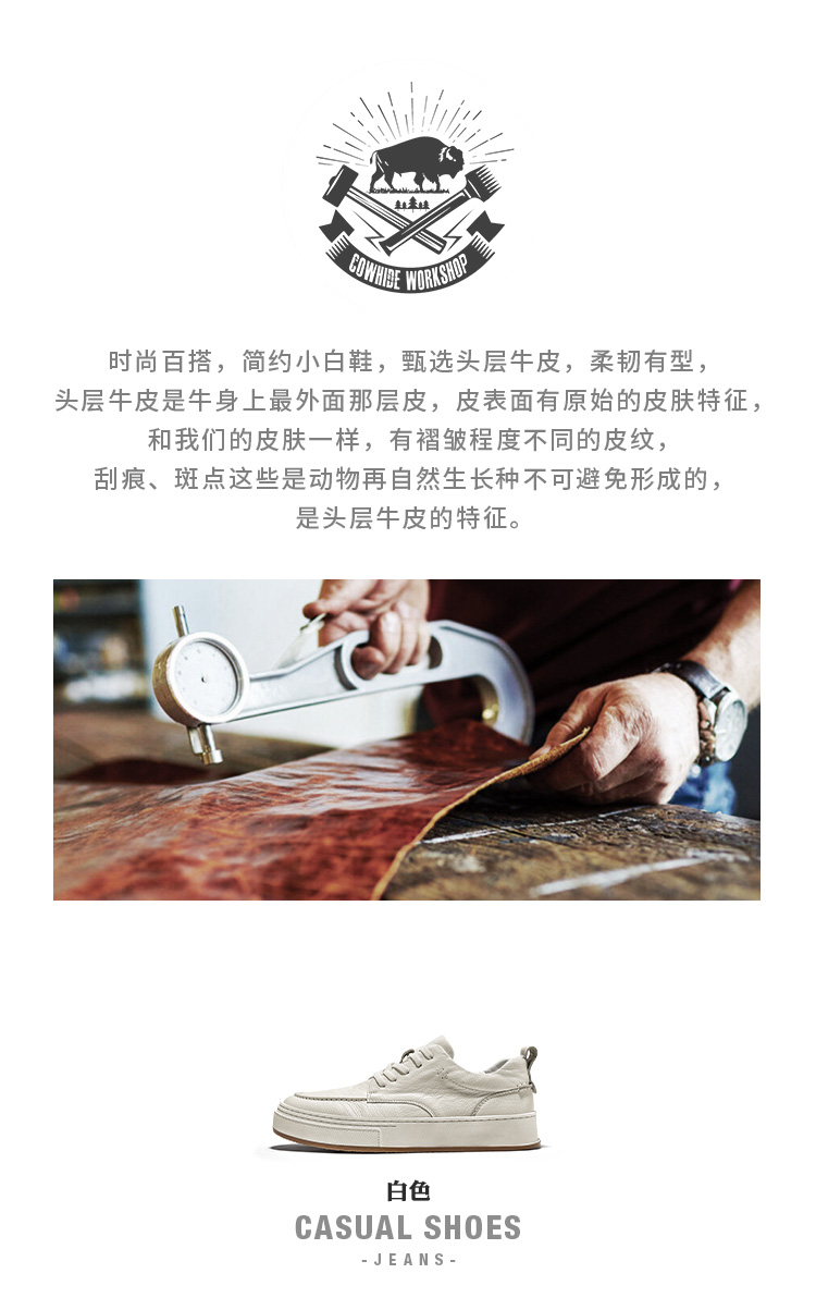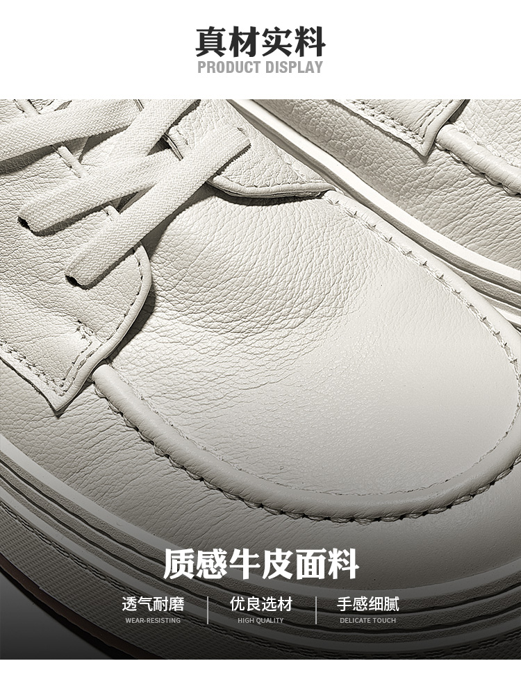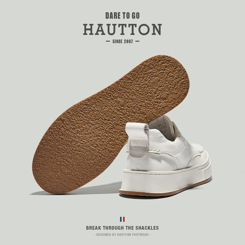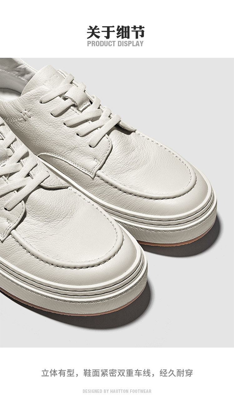 HauttonJeans小白鞋男高級感白色板鞋男鞋夏季頭層牛皮男士休閒鞋