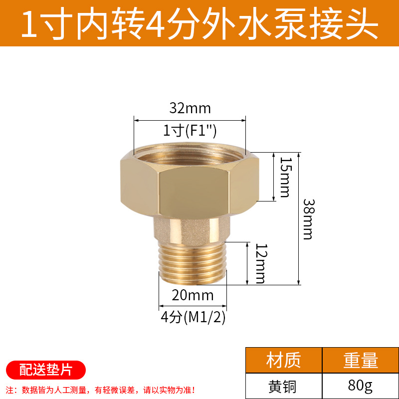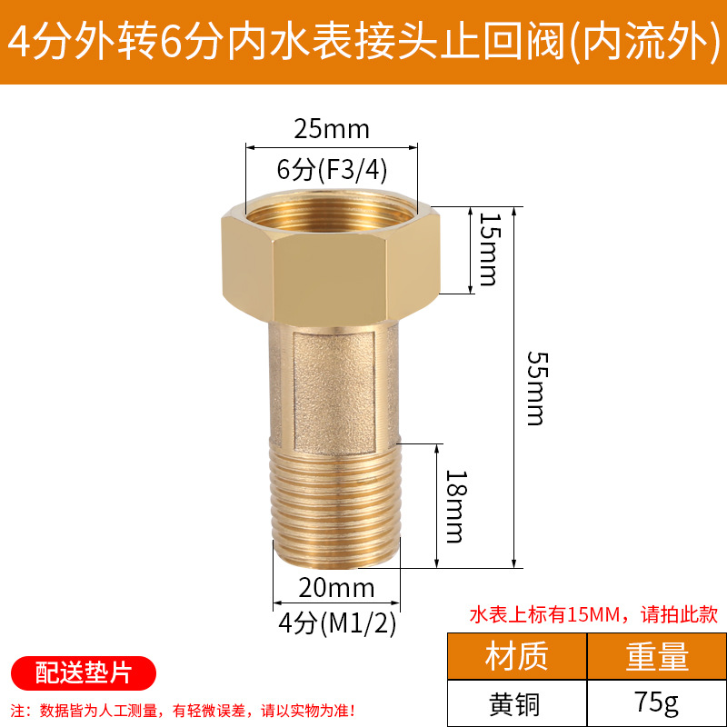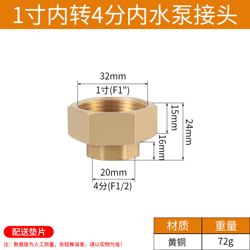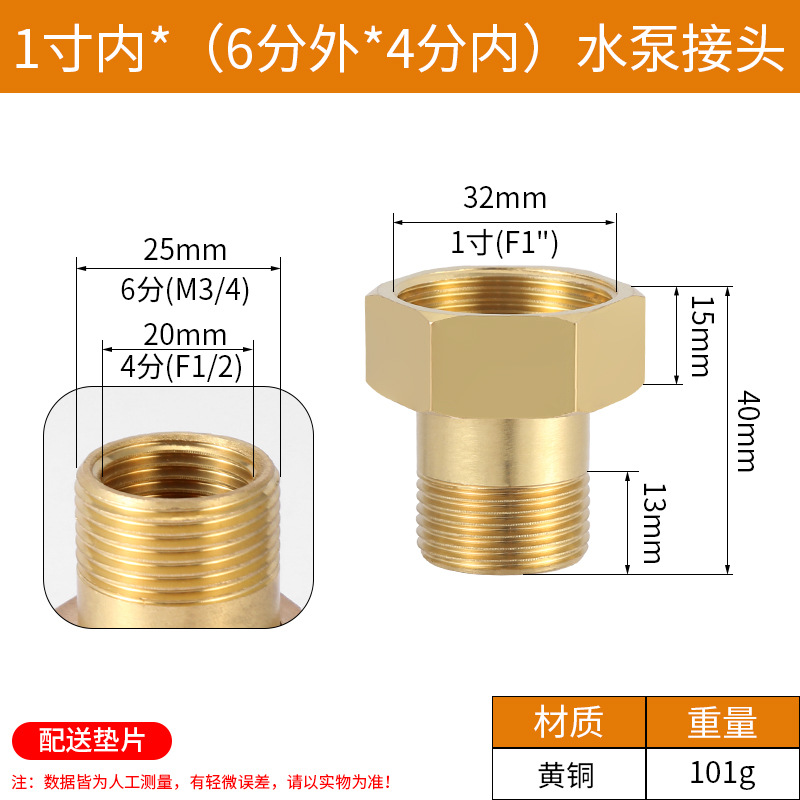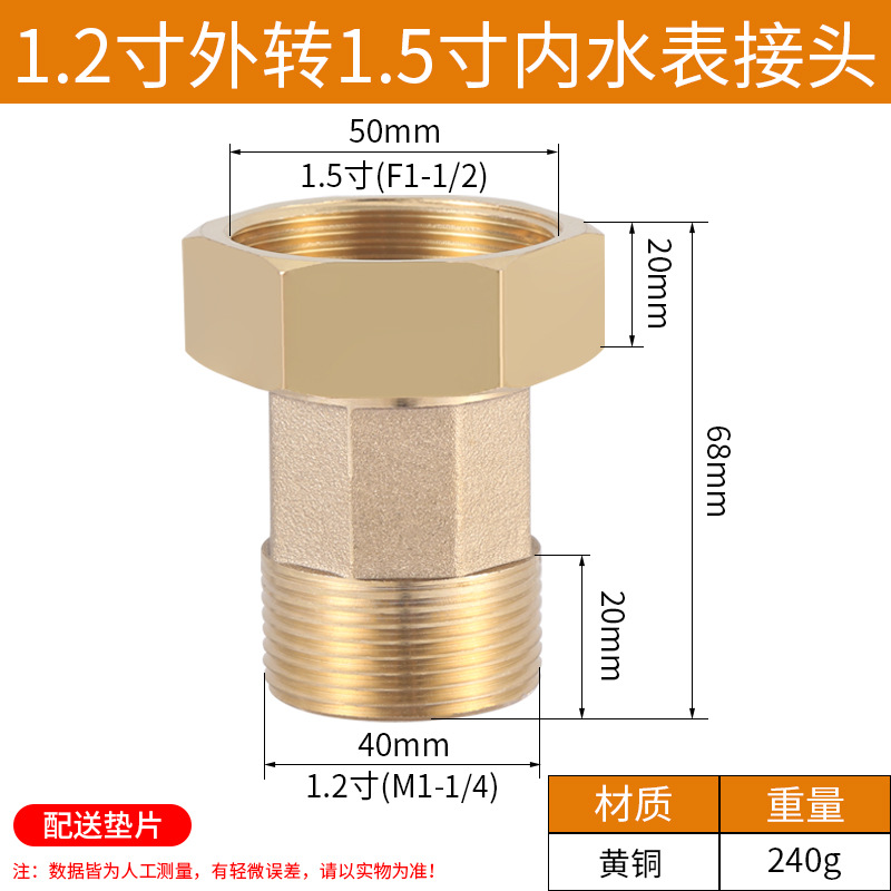 RKT4铜水表活接头4四六分家用自来水水管水泵1寸变6分内外丝连接