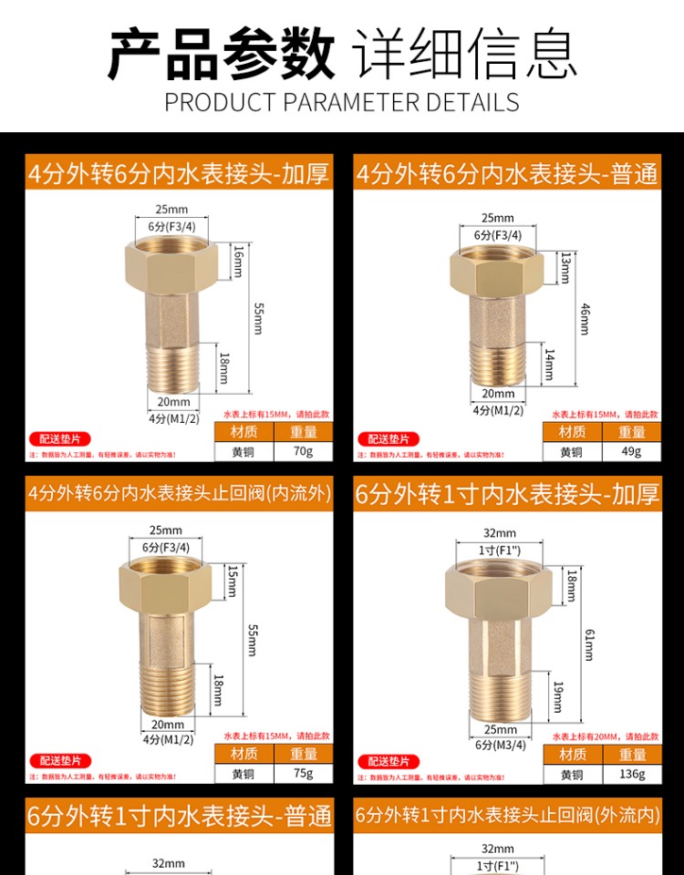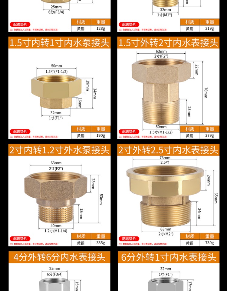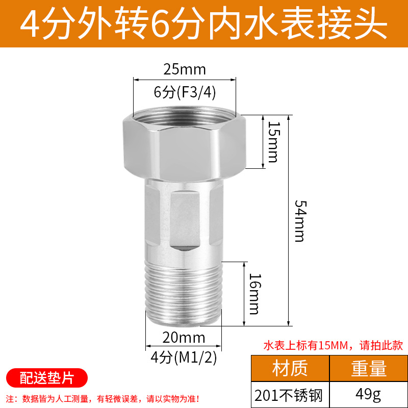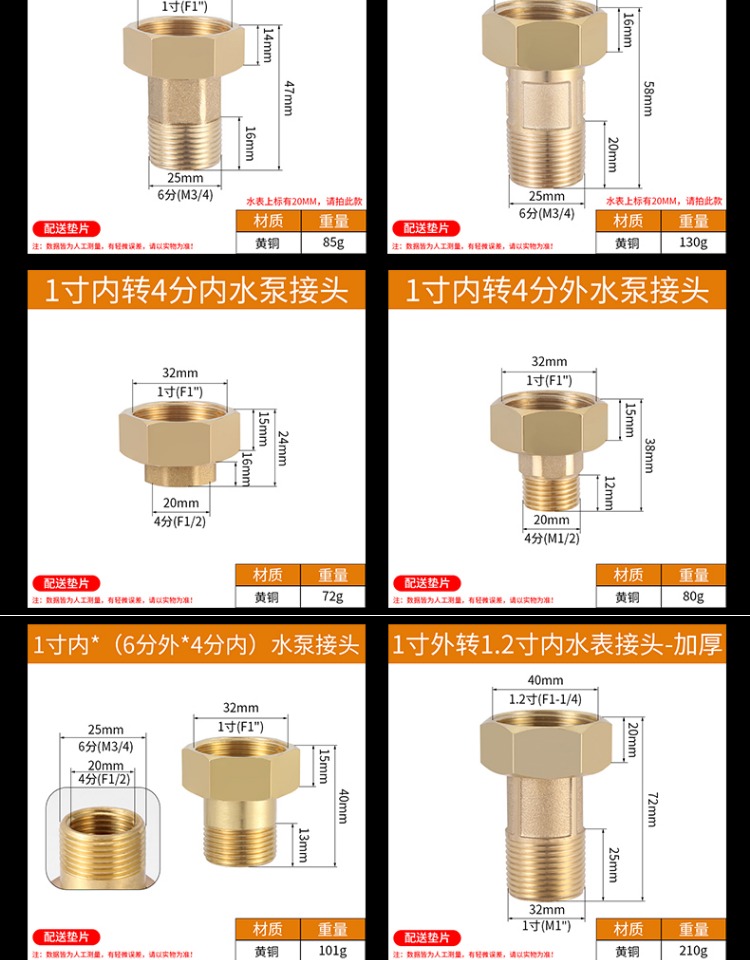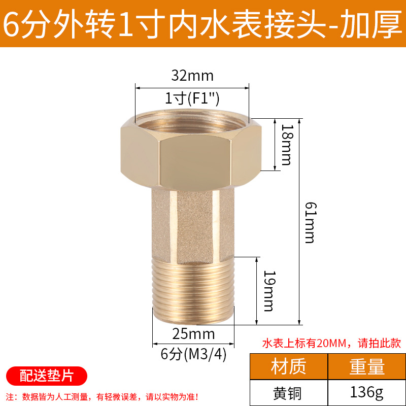 RKT4铜水表活接头4四六分家用自来水水管水泵1寸变6分内外丝连接