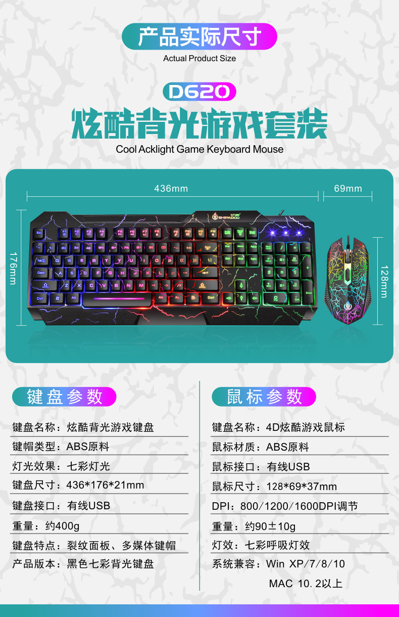 有线键鼠套件 电竞USB电脑办公笔记本RGB发光 游戏键盘鼠标套装