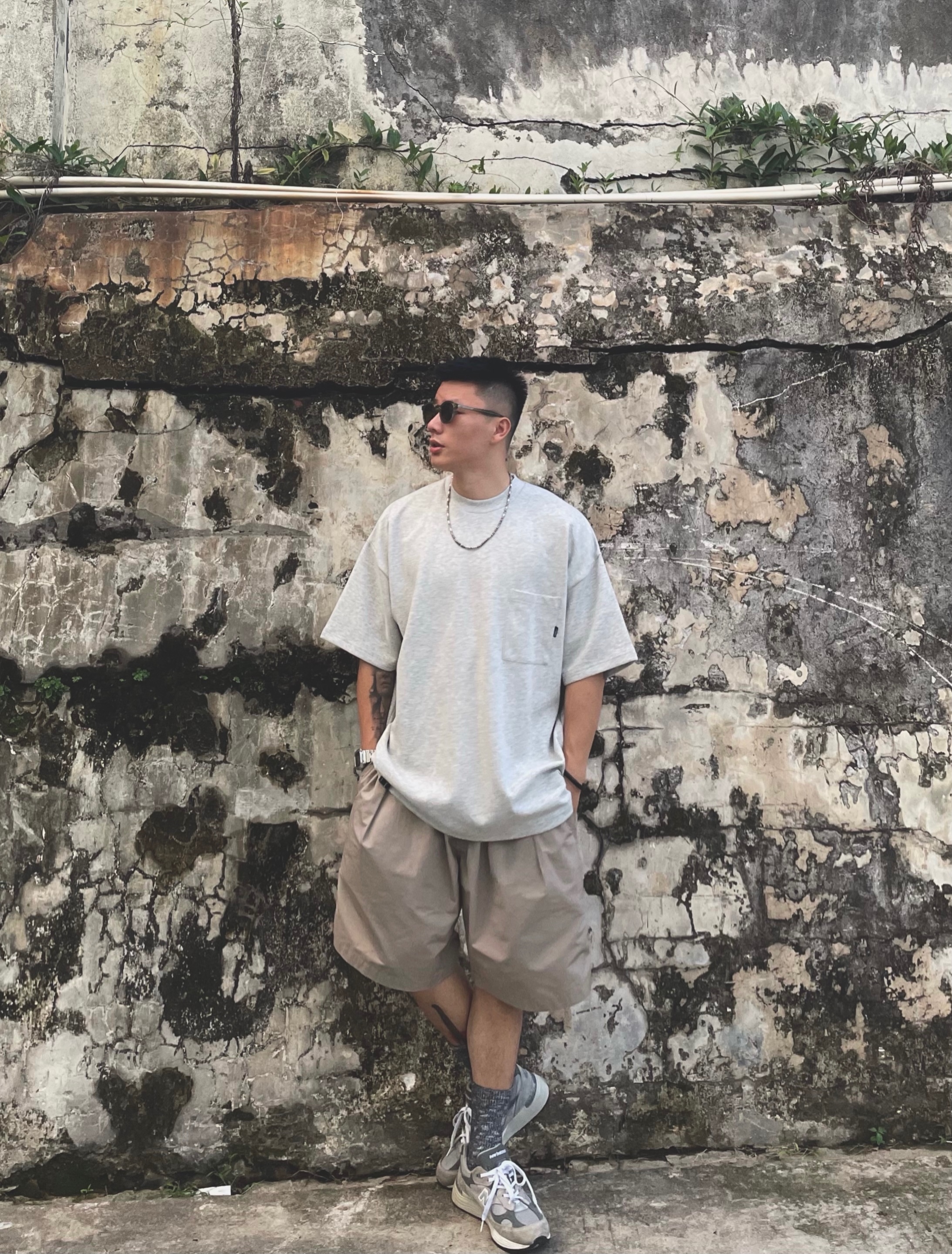 Gnomes lab 21SS 300g玲瓏珠地面料寬鬆廓形圓領短袖日系復古國潮