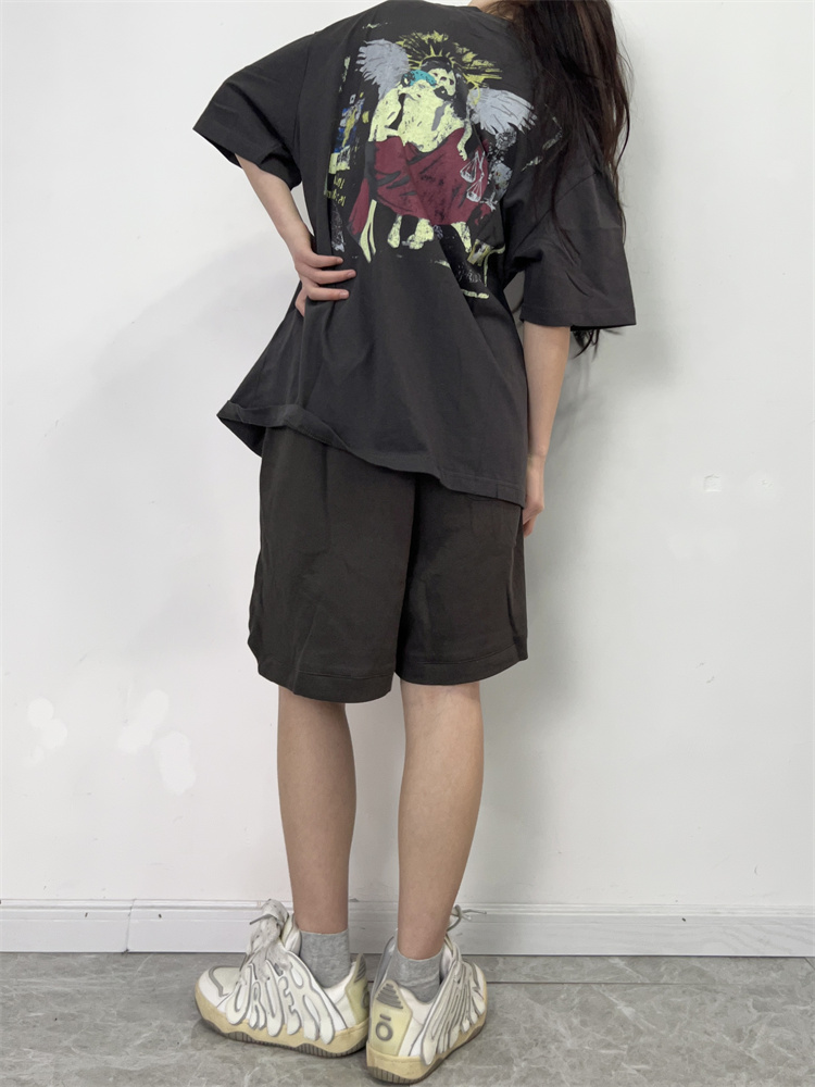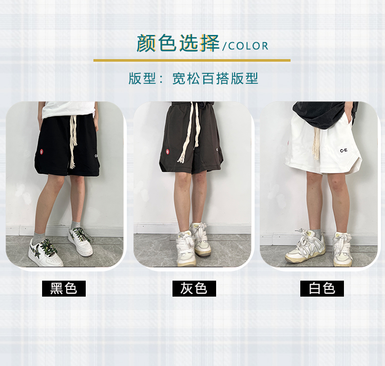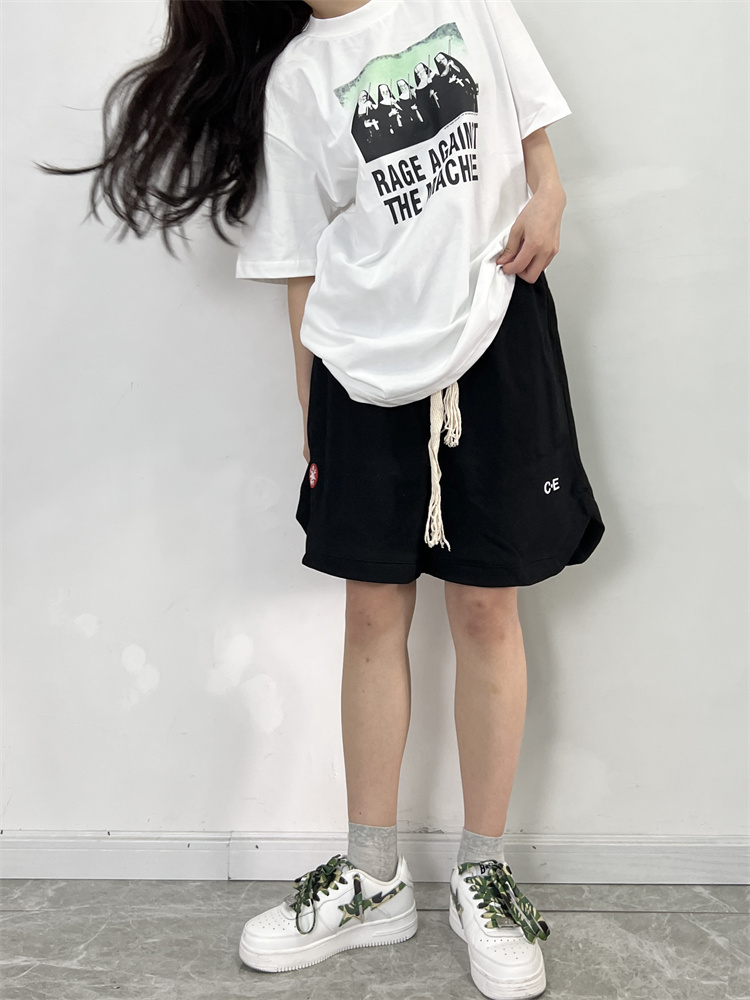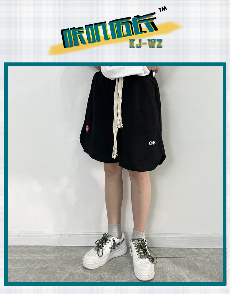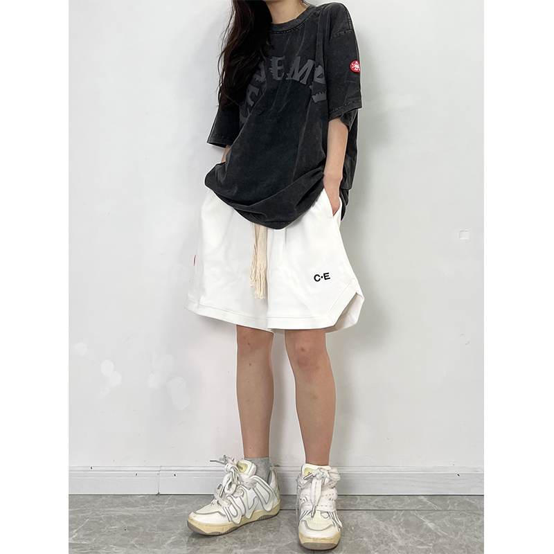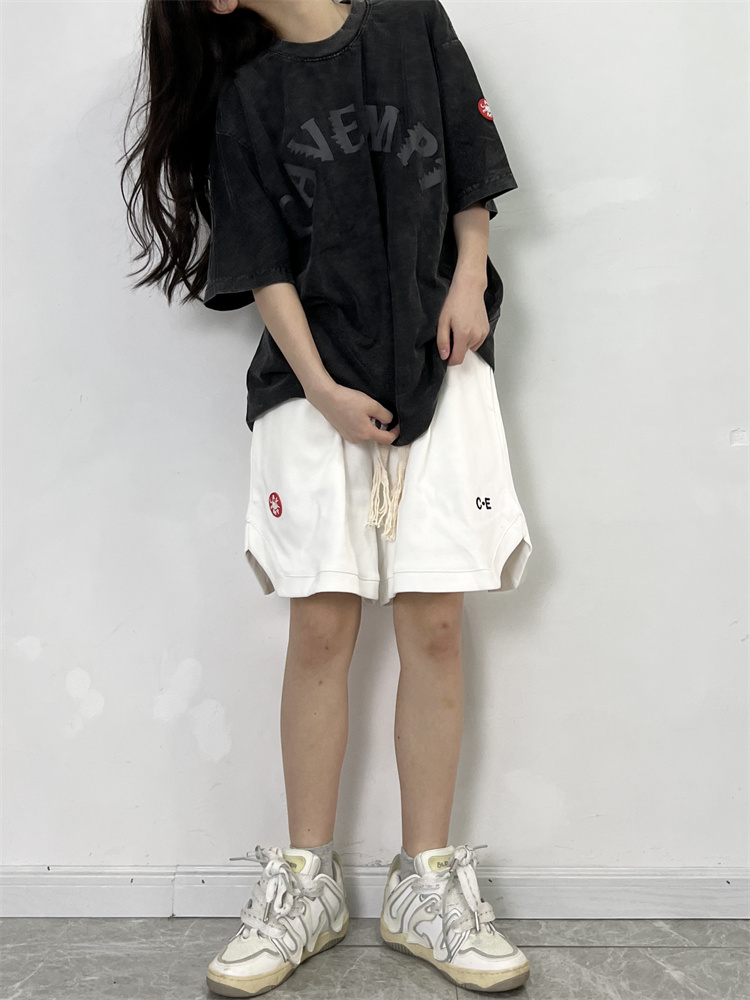 LIFE CAVEMPT 日潮開叉紅標五分闊腿短褲子男 夏寬鬆工裝休閒褲