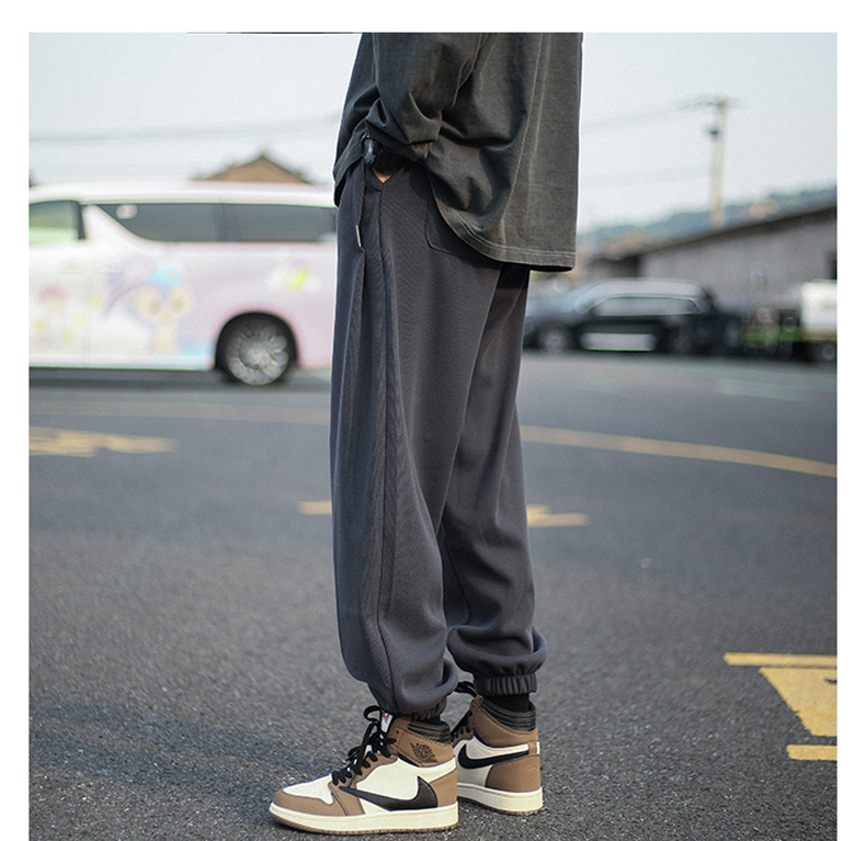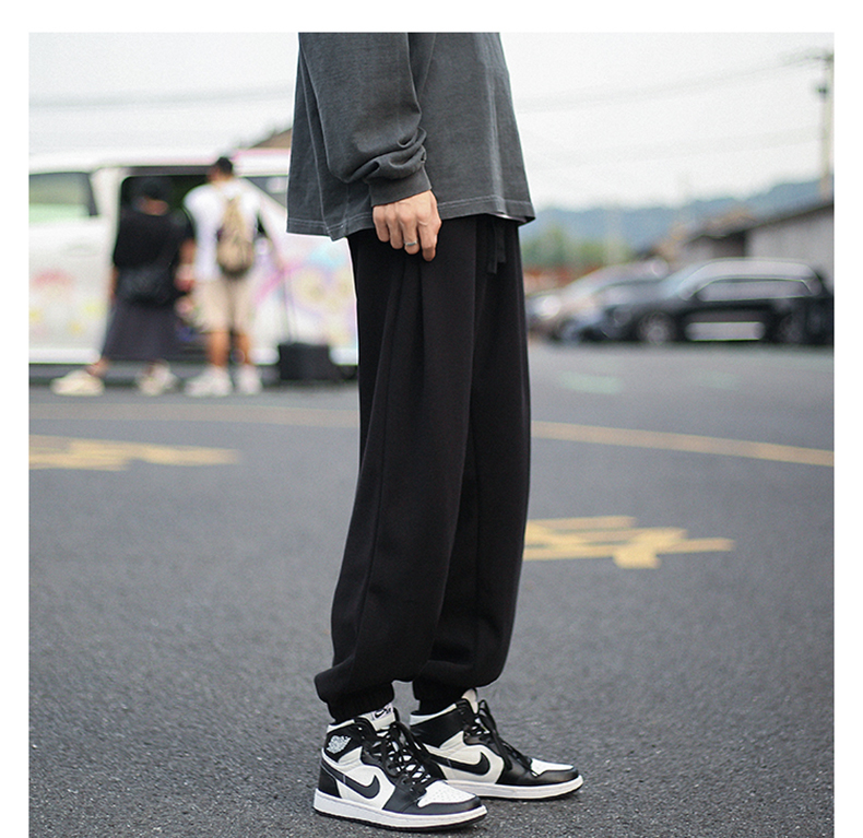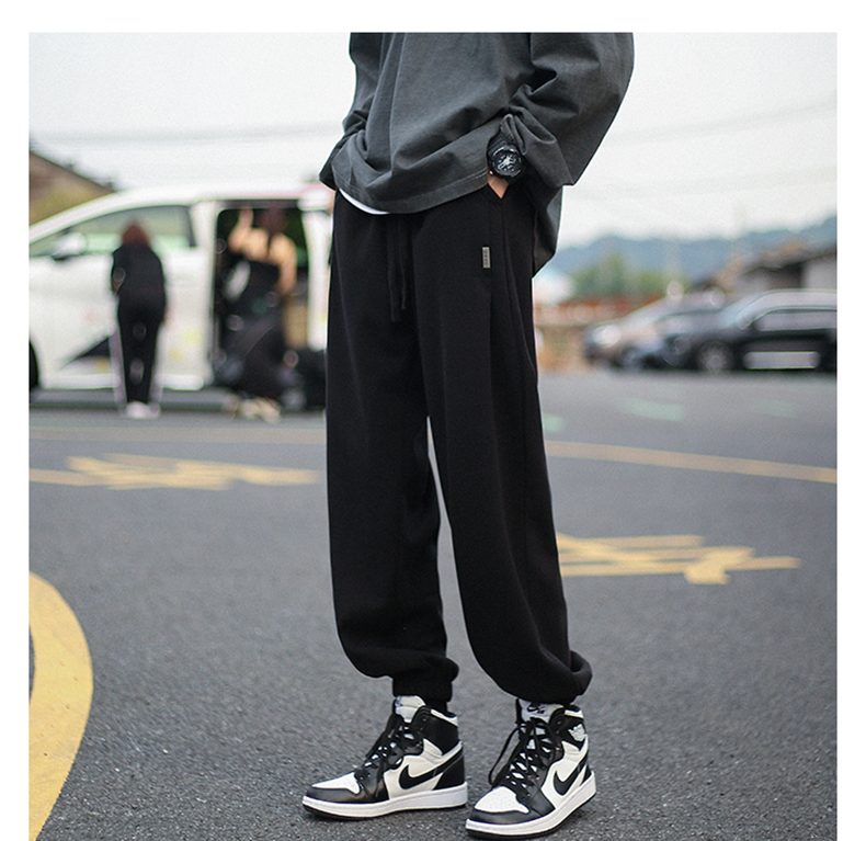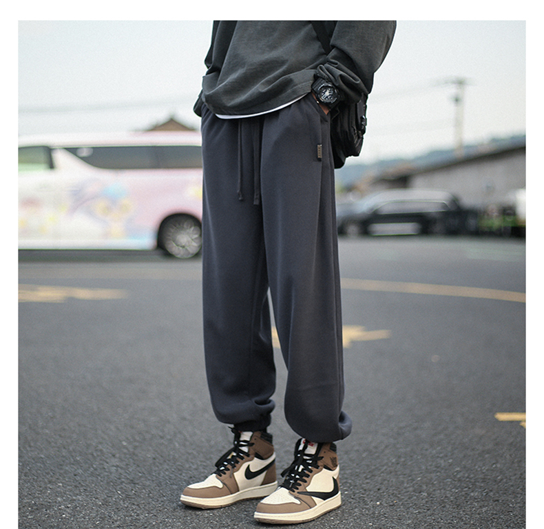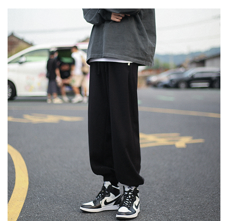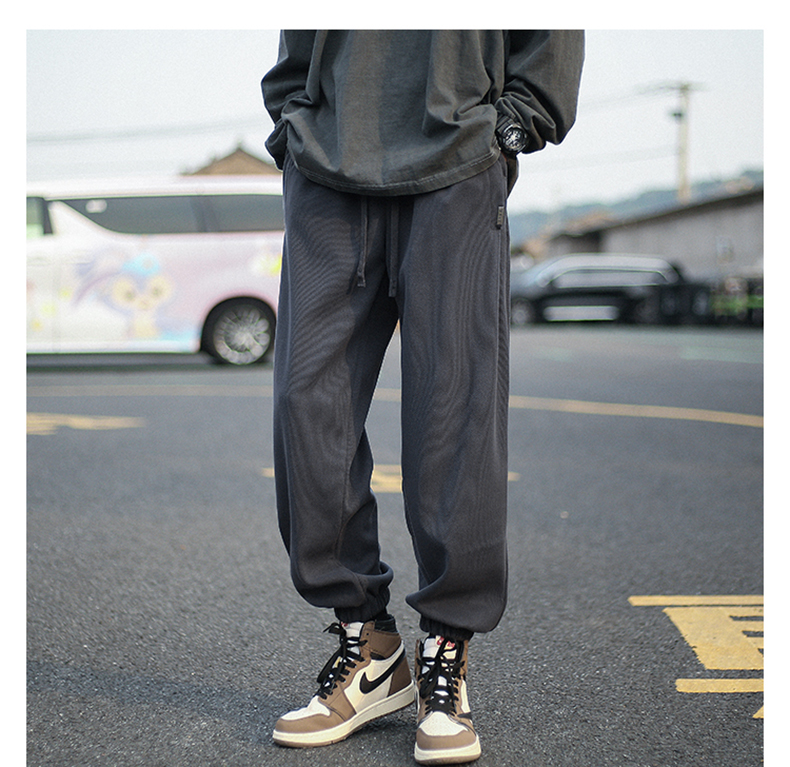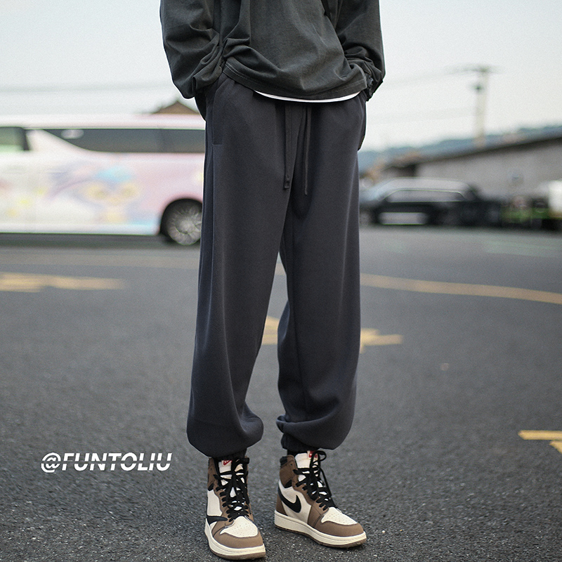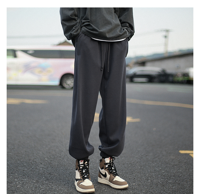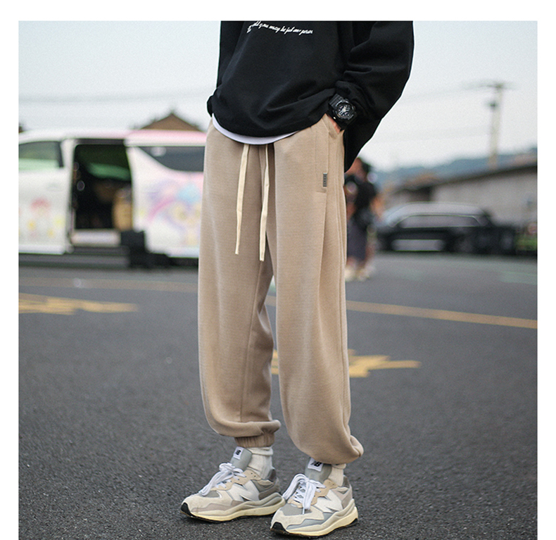 美式垂感衛褲加厚束腳運動褲男冬季寬鬆復古日系潮流闊腿休閒褲子