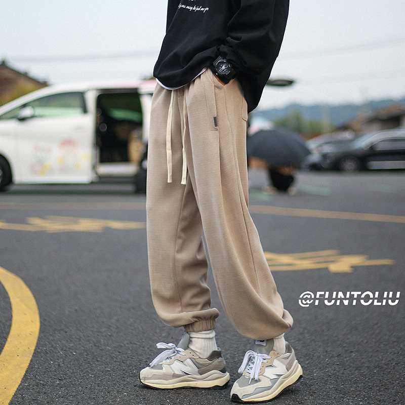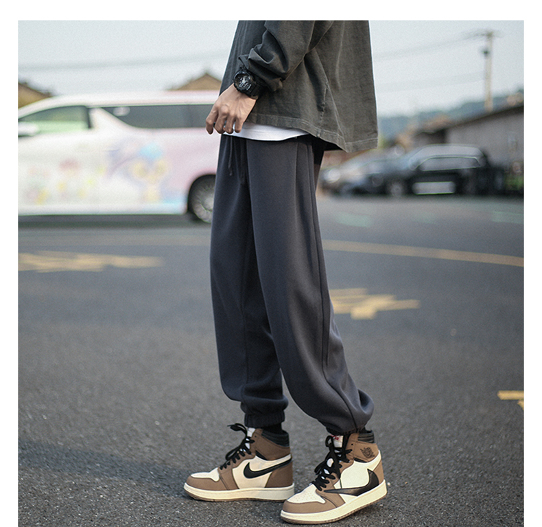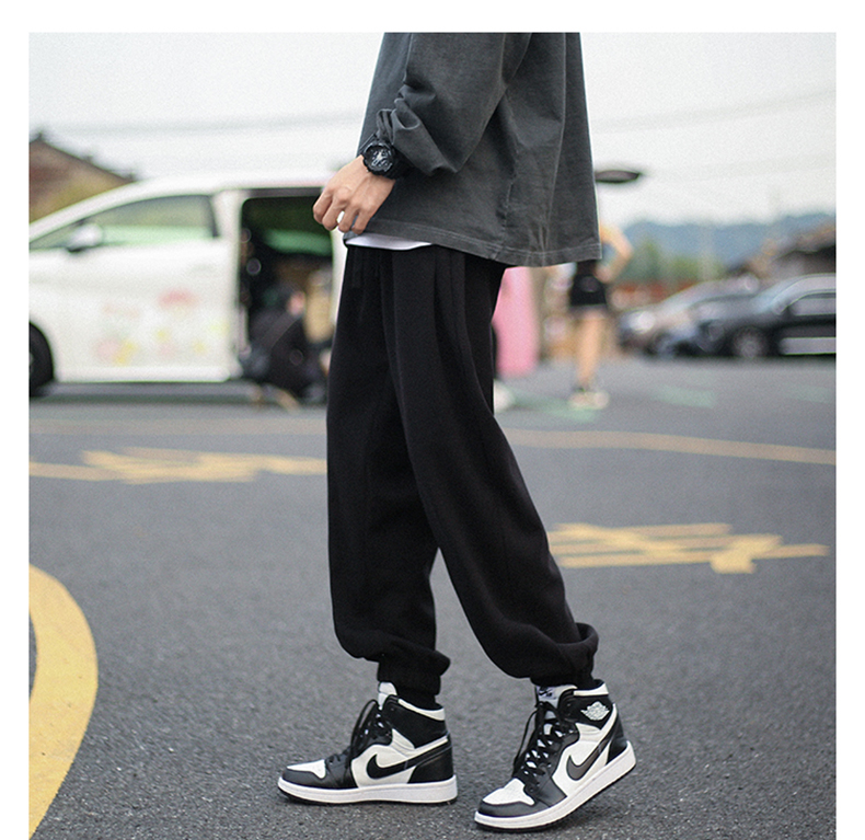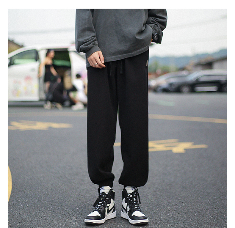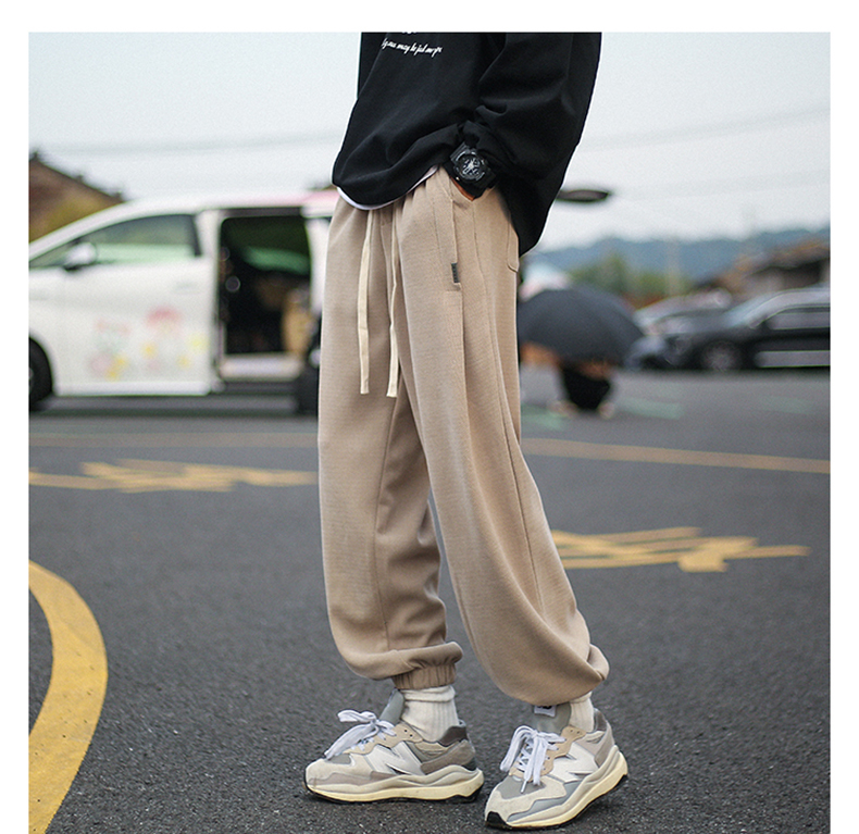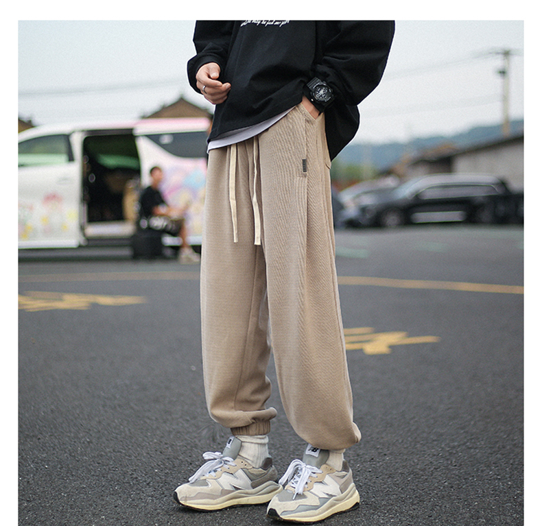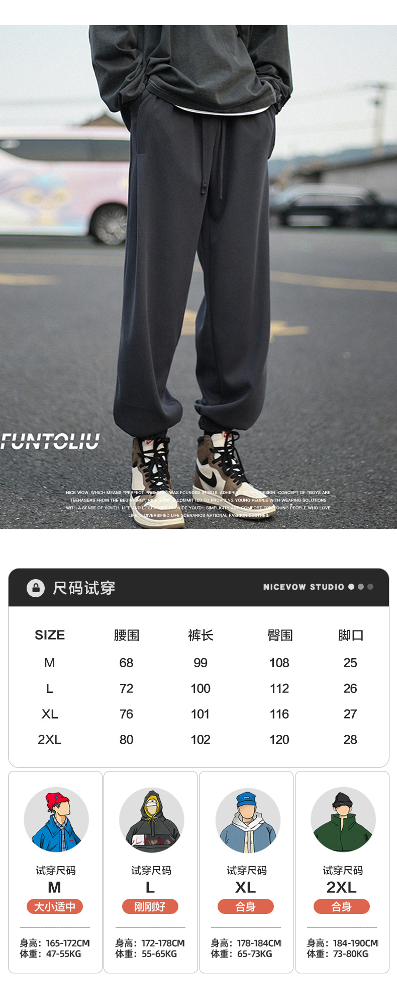 美式垂感衛褲加厚束腳運動褲男冬季寬鬆復古日系潮流闊腿休閒褲子