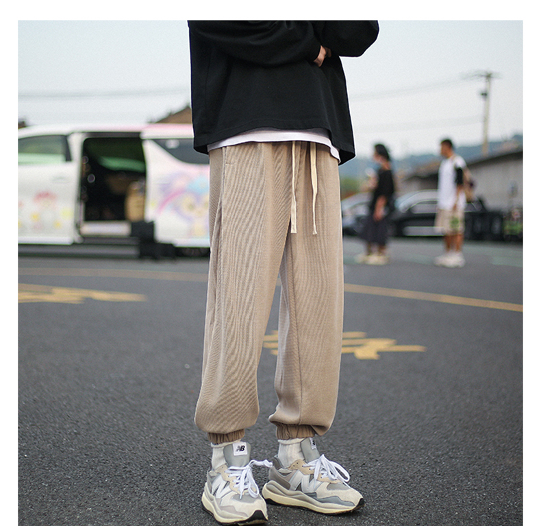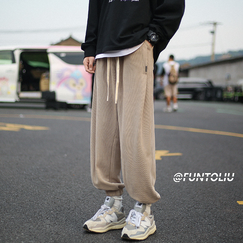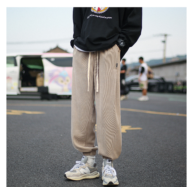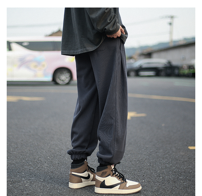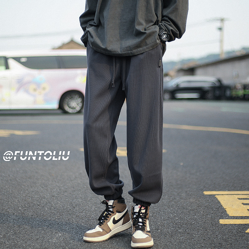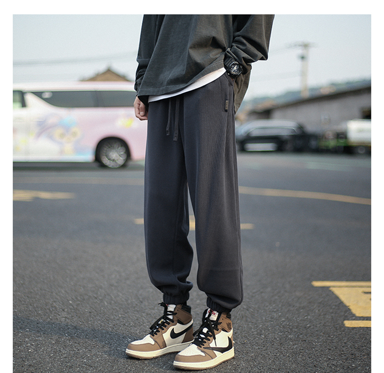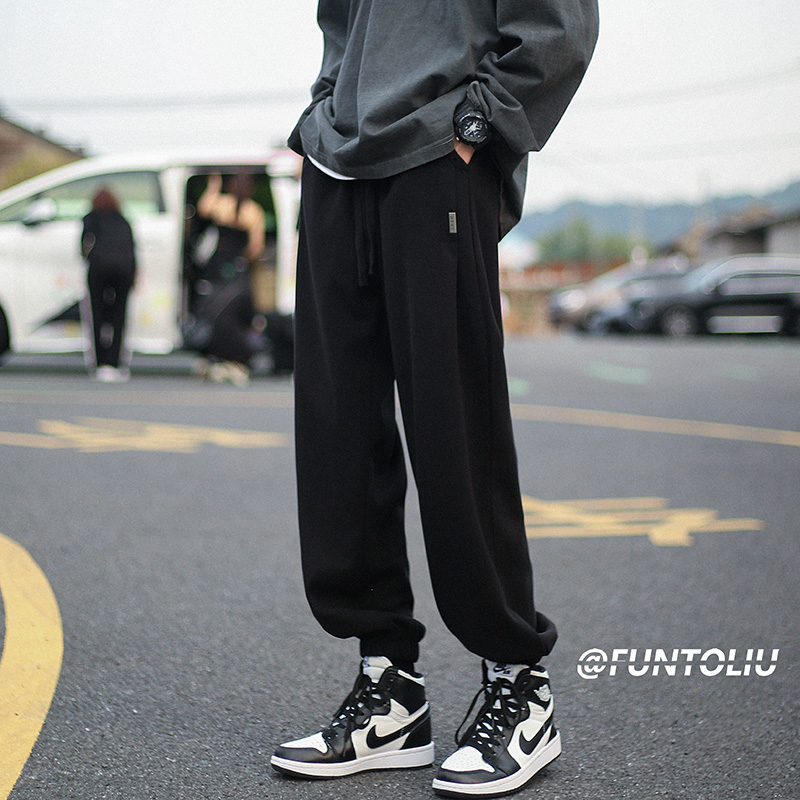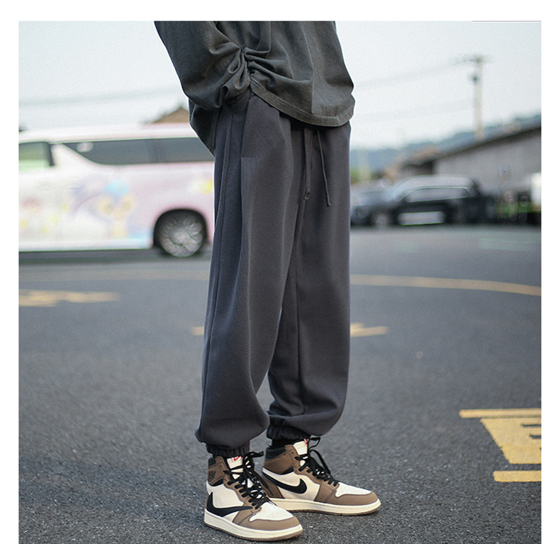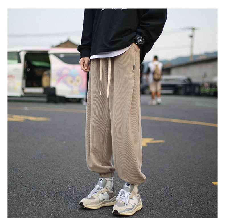 美式垂感衛褲加厚束腳運動褲男冬季寬鬆復古日系潮流闊腿休閒褲子