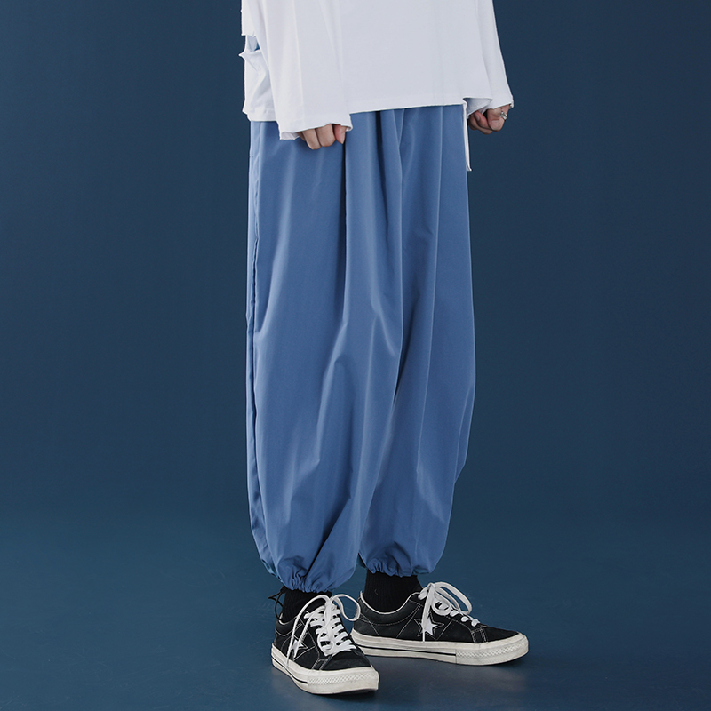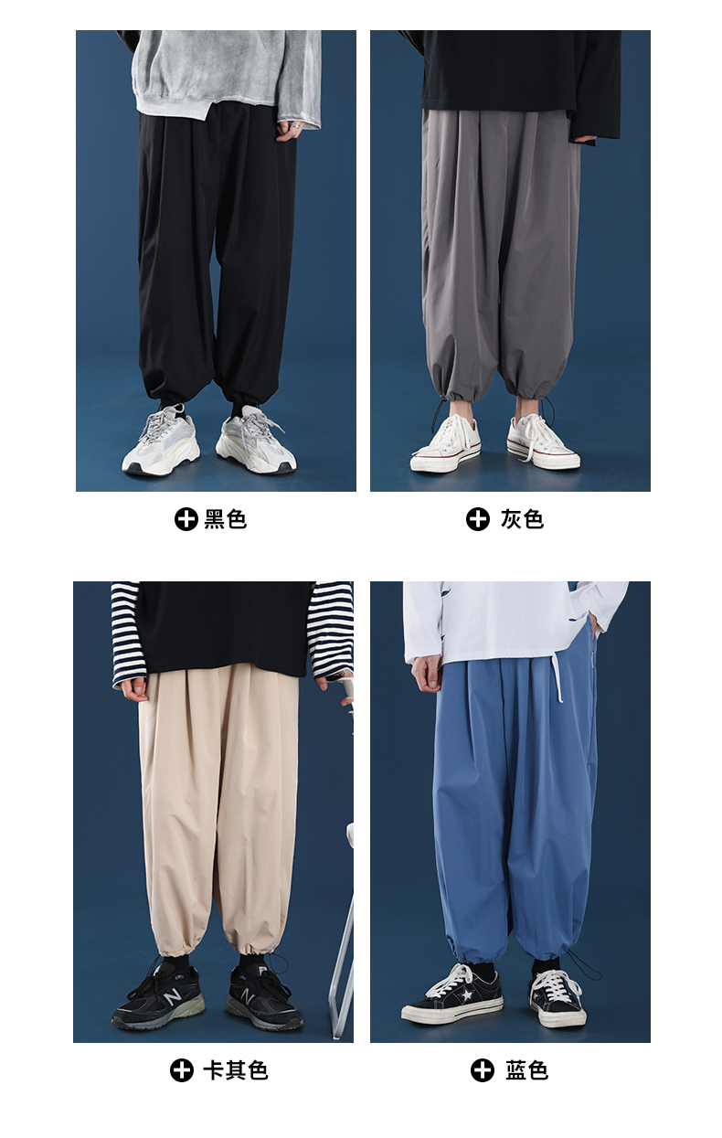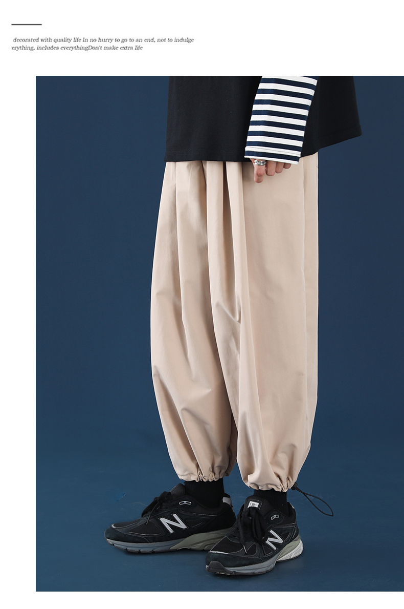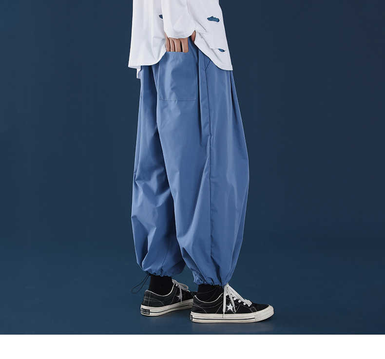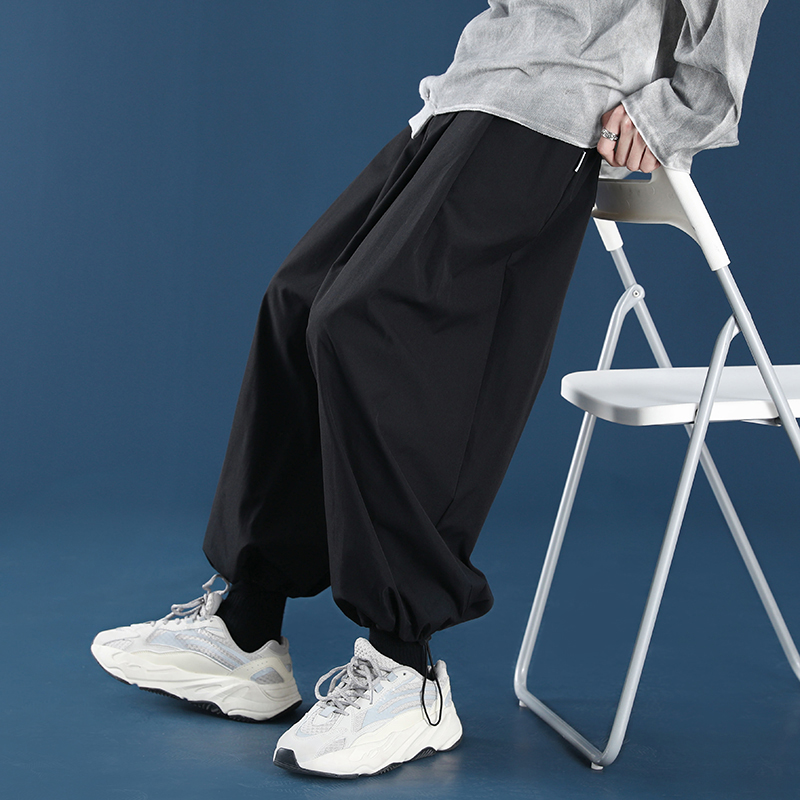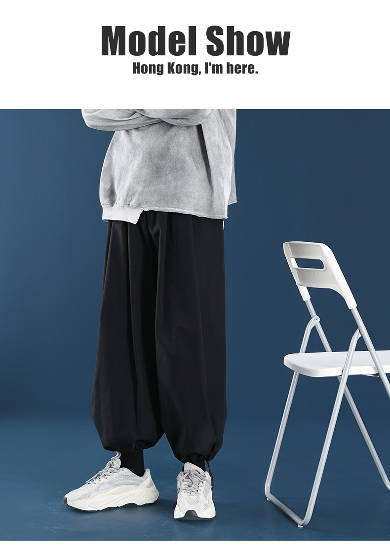 日系oversize褲子高街ins潮牌燈籠褲男寬鬆闊腿運動風九分褲垂滑