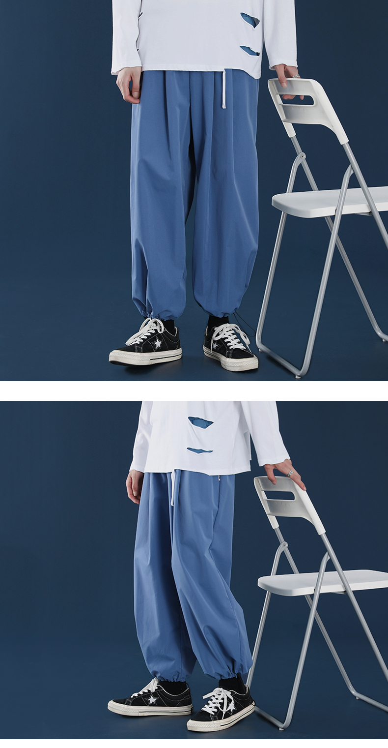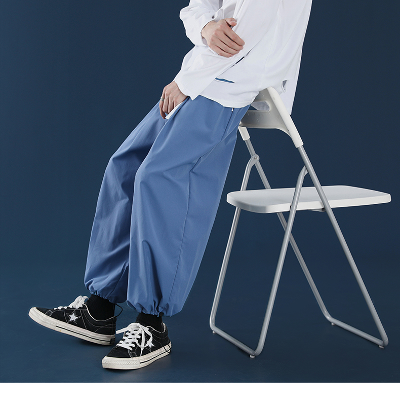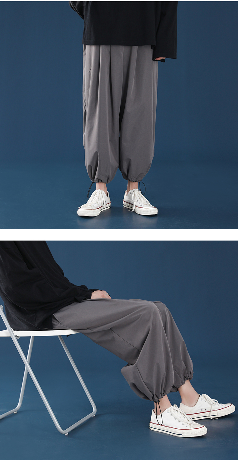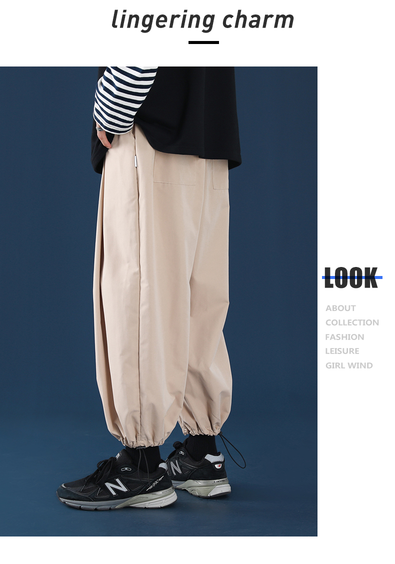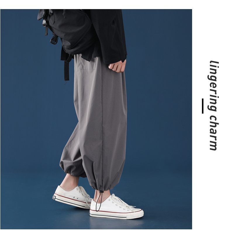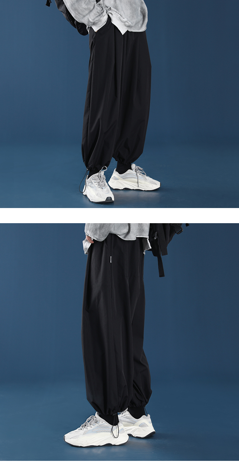 日系oversize褲子高街ins潮牌燈籠褲男寬鬆闊腿運動風九分褲垂滑