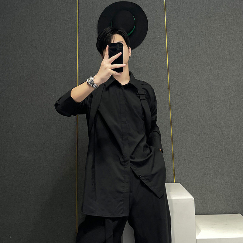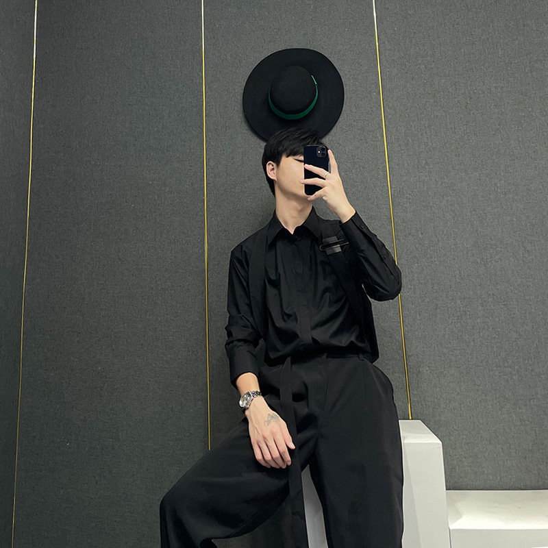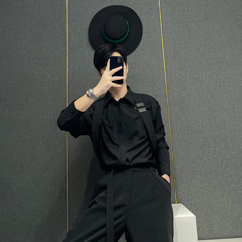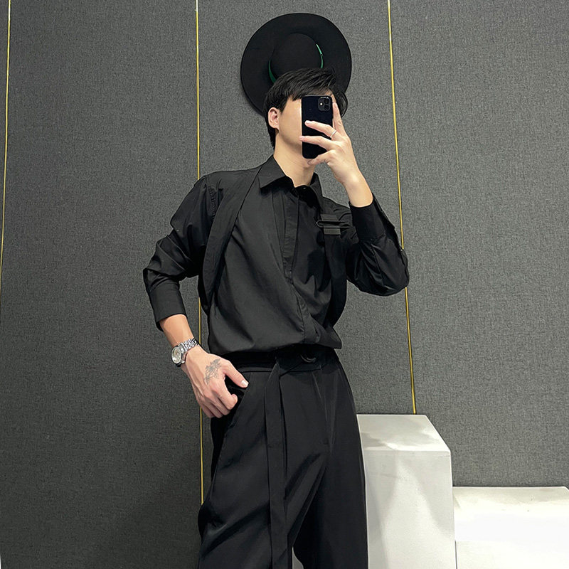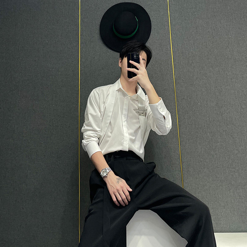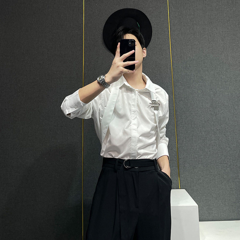 鹿鹿 高級感鈦合金鎖扣可拆卸抱嬰袋襯衫男純色上衣時尚翻領長袖潮