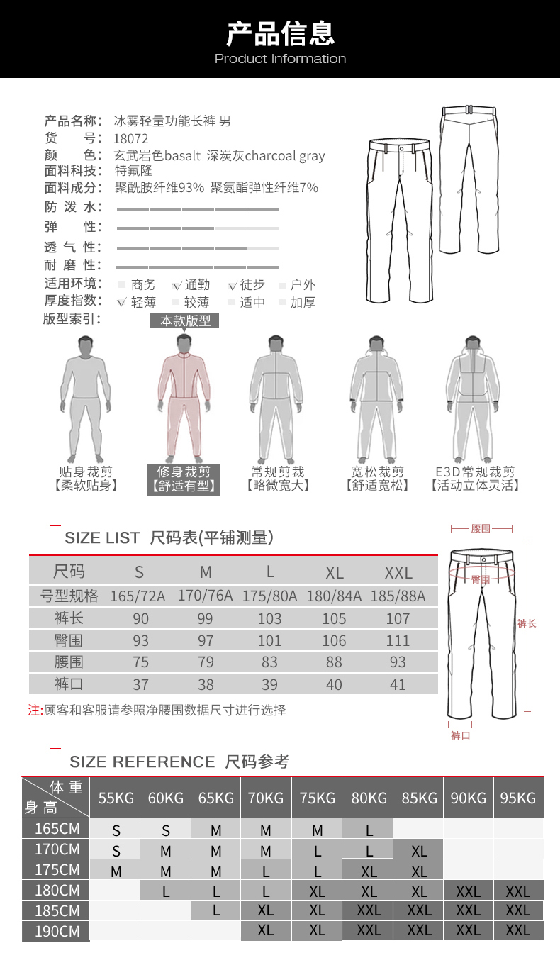 三夫SANFO PLUS冰霧徒步長褲男 春夏輕量防潑水修身彈力褲子18072