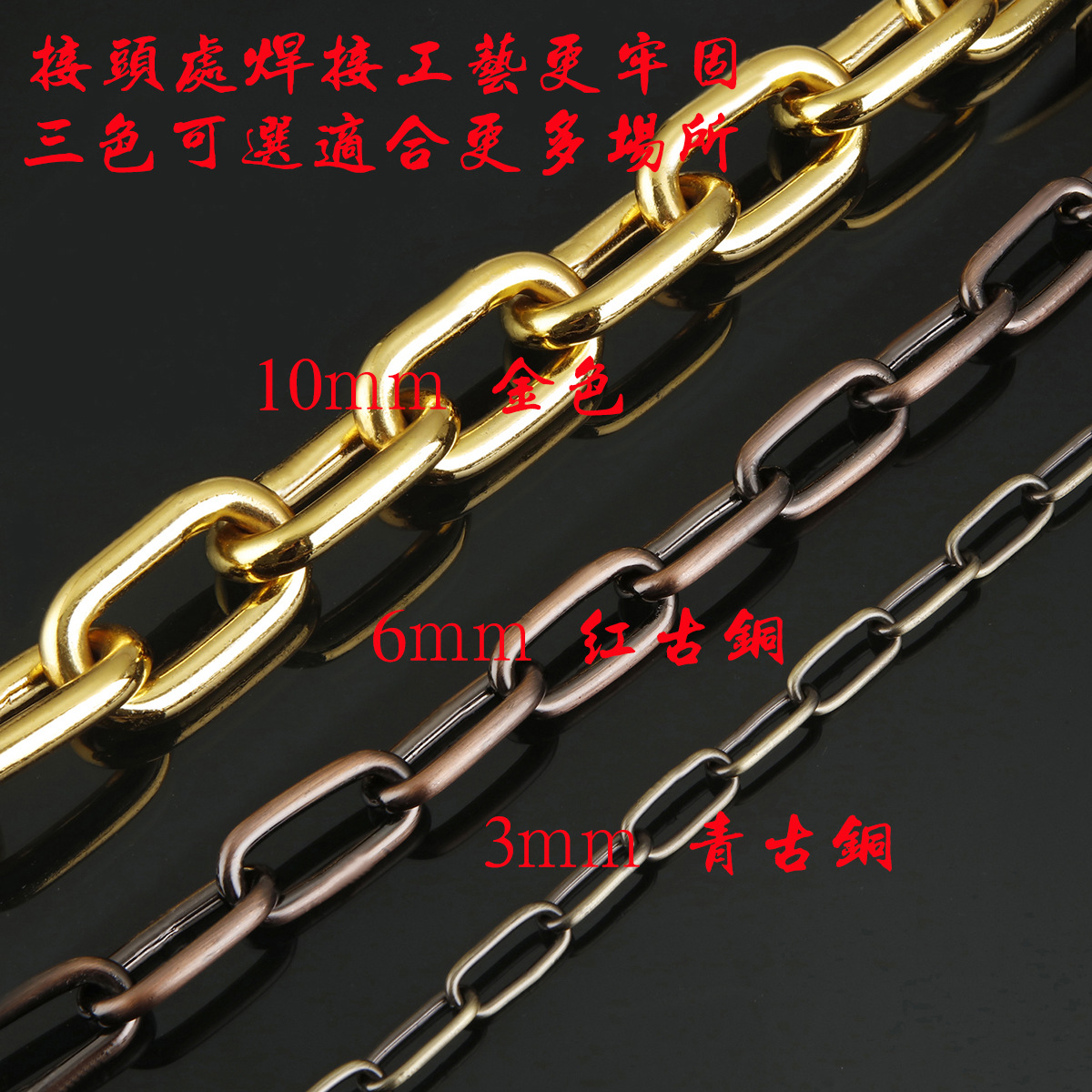 新款镀金色不锈钢吊灯链复古装饰护栏链条古铜色铁链大号金属锁链