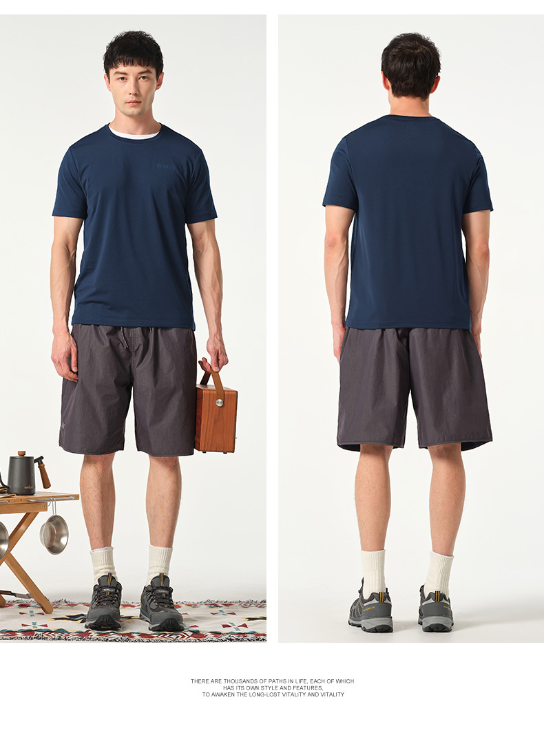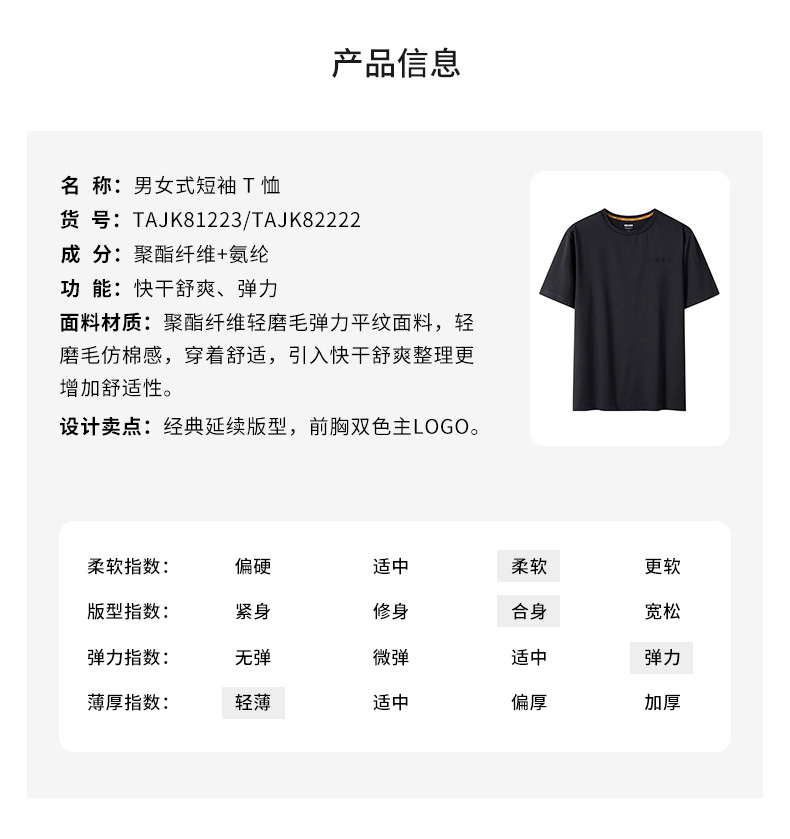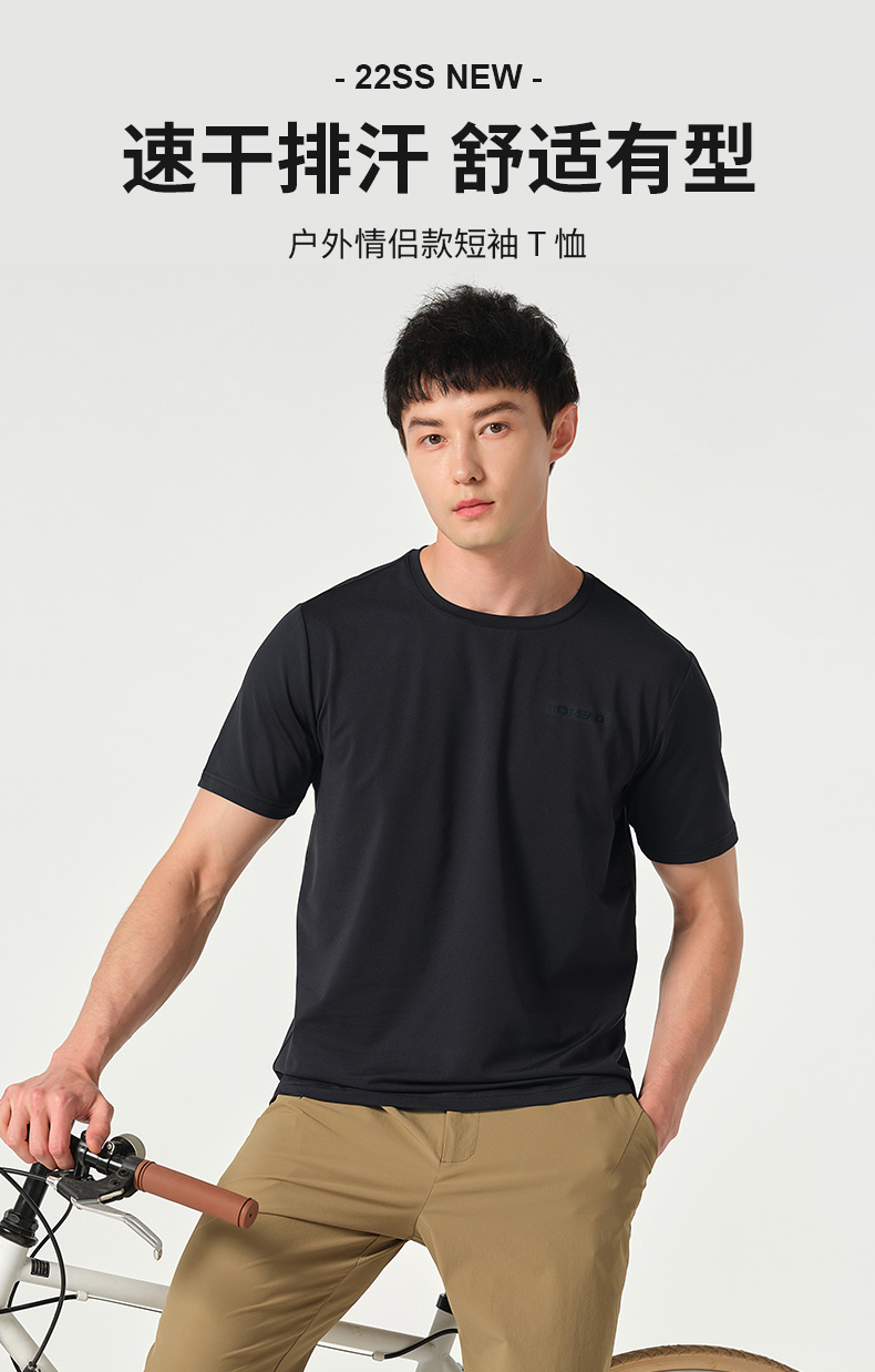 探路者T恤男女22春夏涼感速乾透氣情侶款短袖T恤TAJK81223/82222