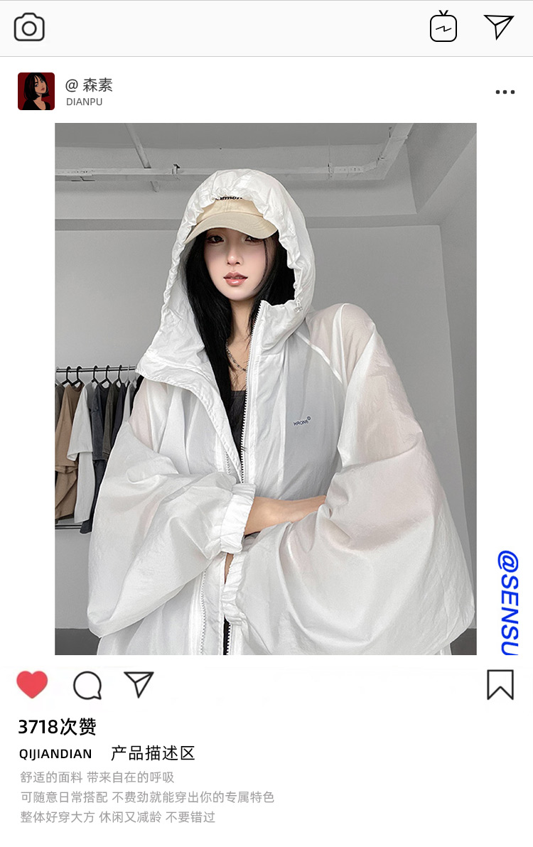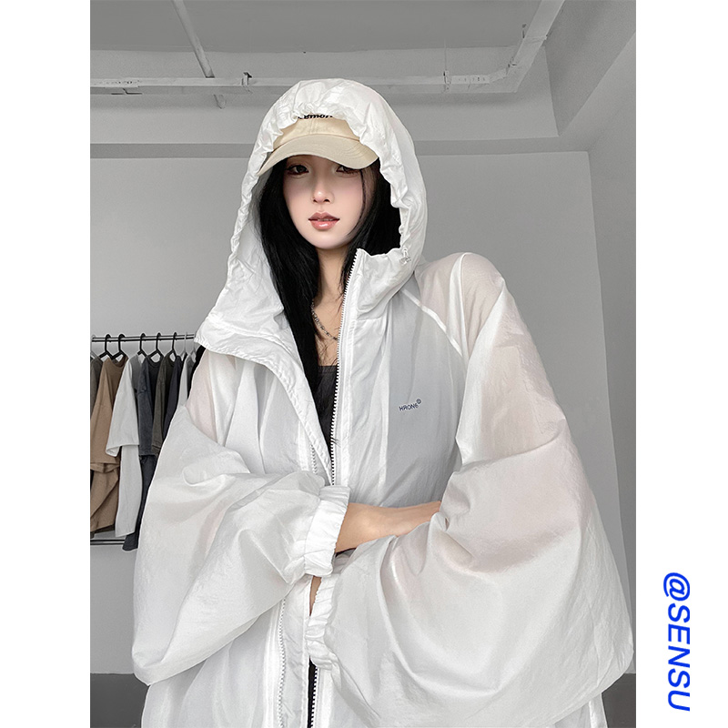 輕薄款白色防曬衣女款夏季寬鬆開衫外套防曬服透氣設計感長袖上衣