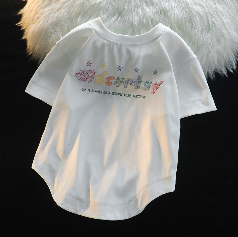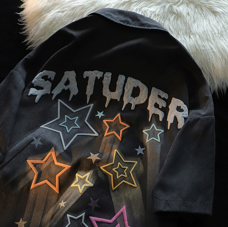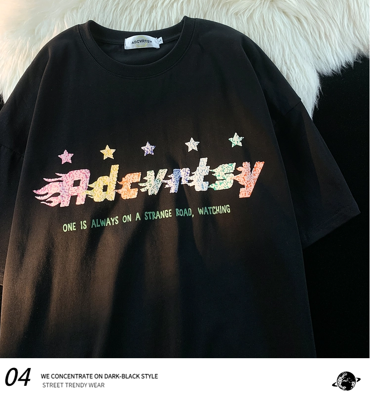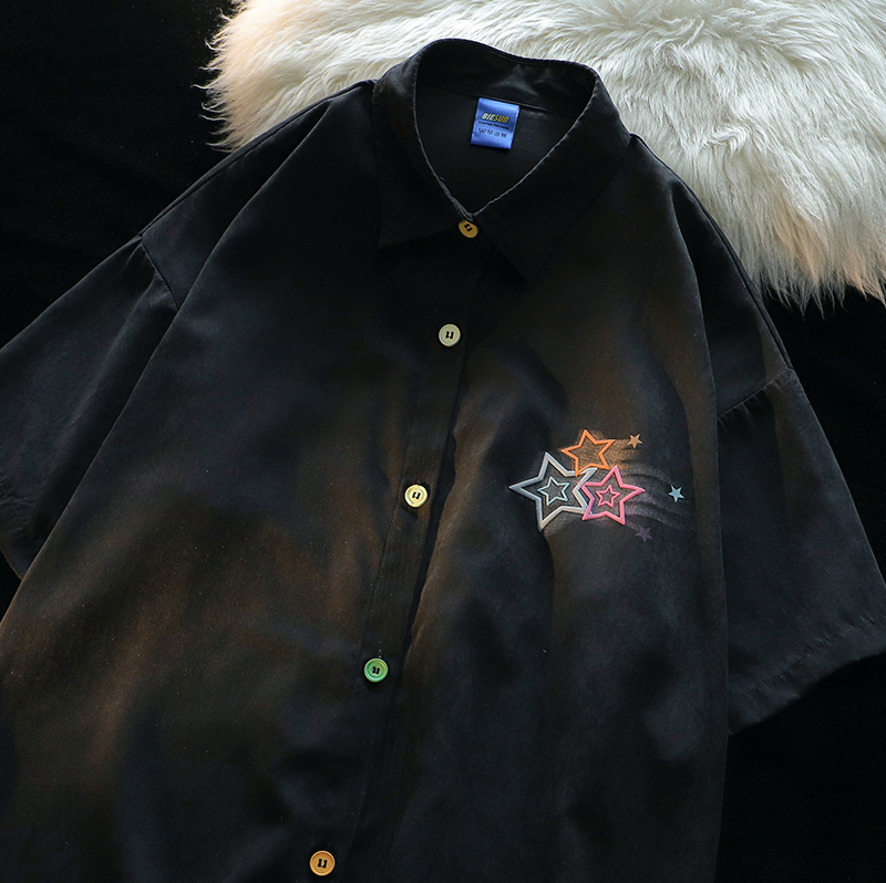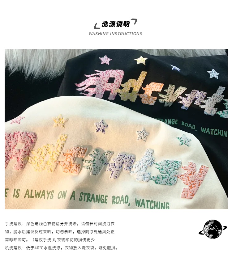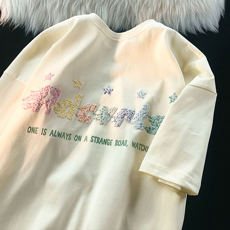 逃離地球塗鴉星星短袖T恤女純棉千禧風夏季寬鬆bf情侶半袖衫潮牌