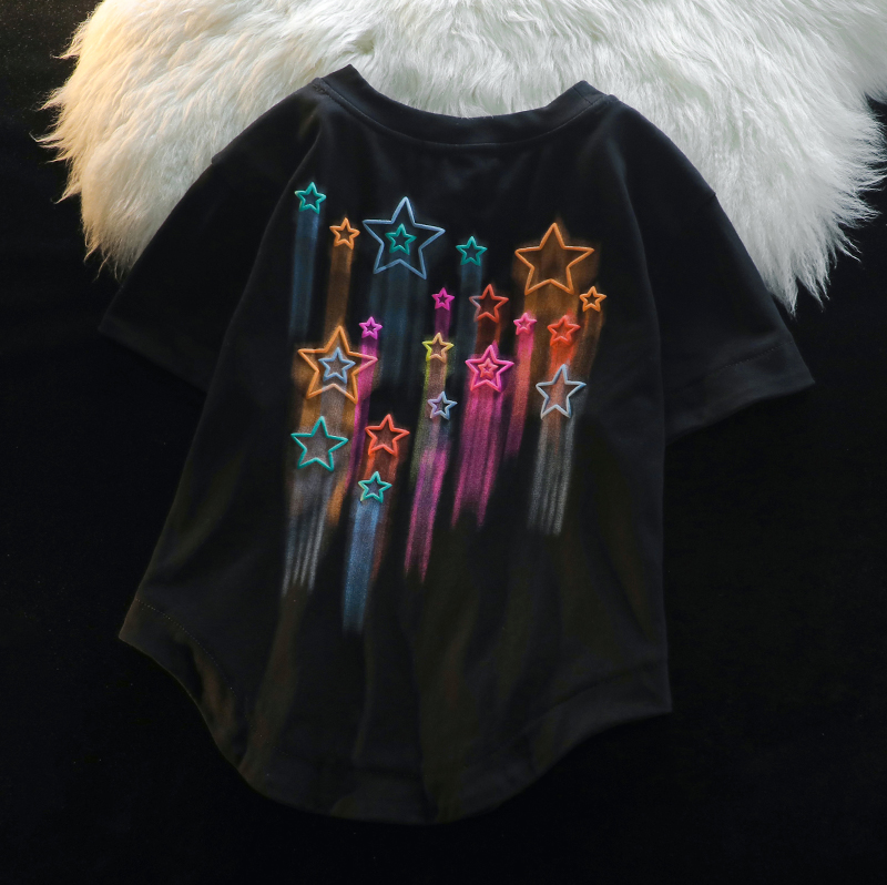 主要顏色 杏色,黑色,杏色背心,黑色背心,杏色蝴蝶,黑色蝴蝶,杏色星星襯衫,黑色星星襯衫,白色星星短款,黑色星星短款