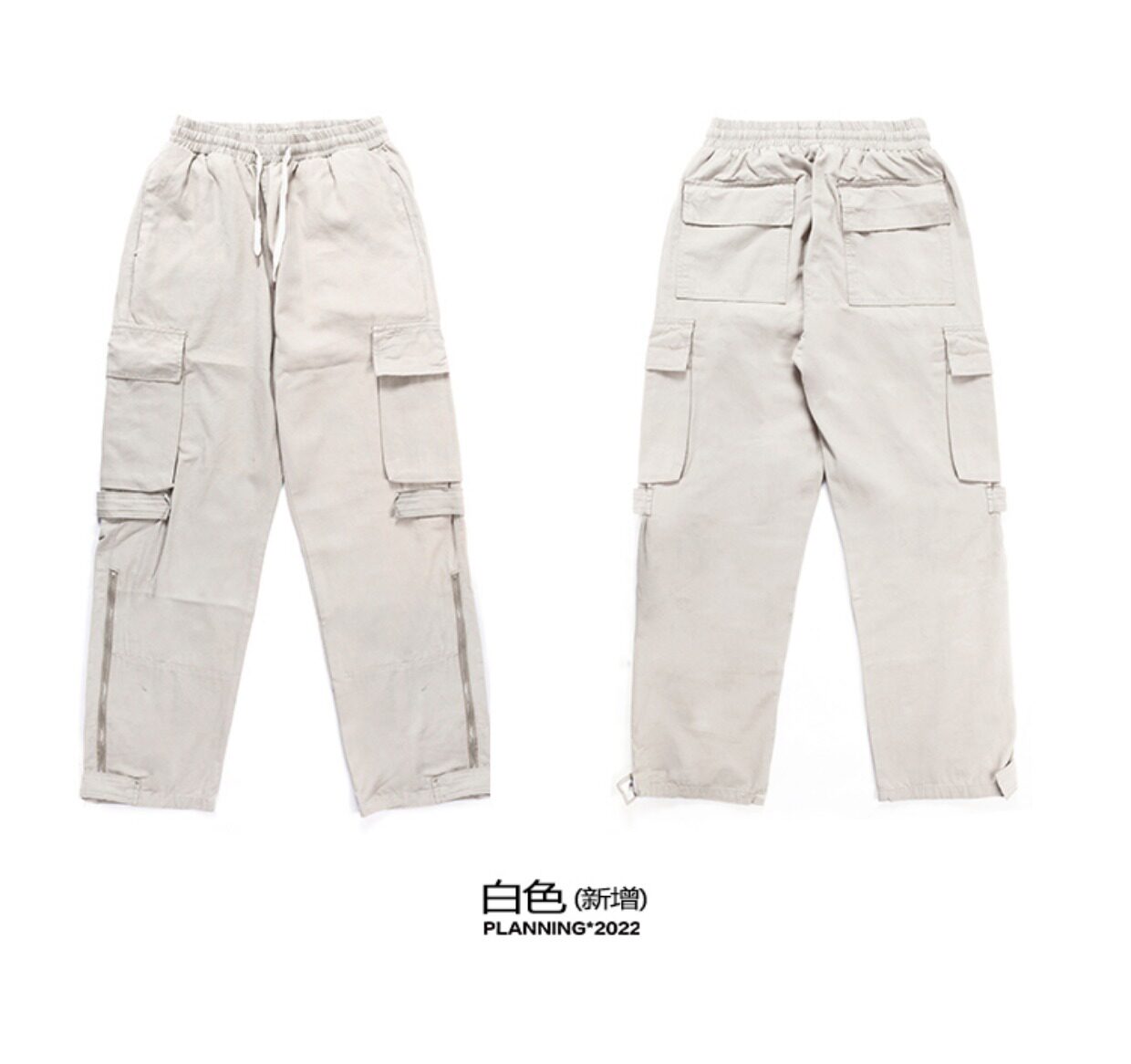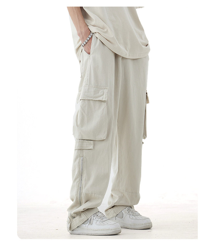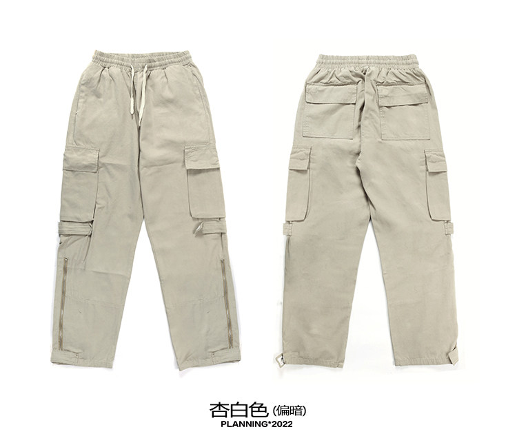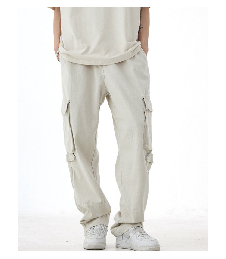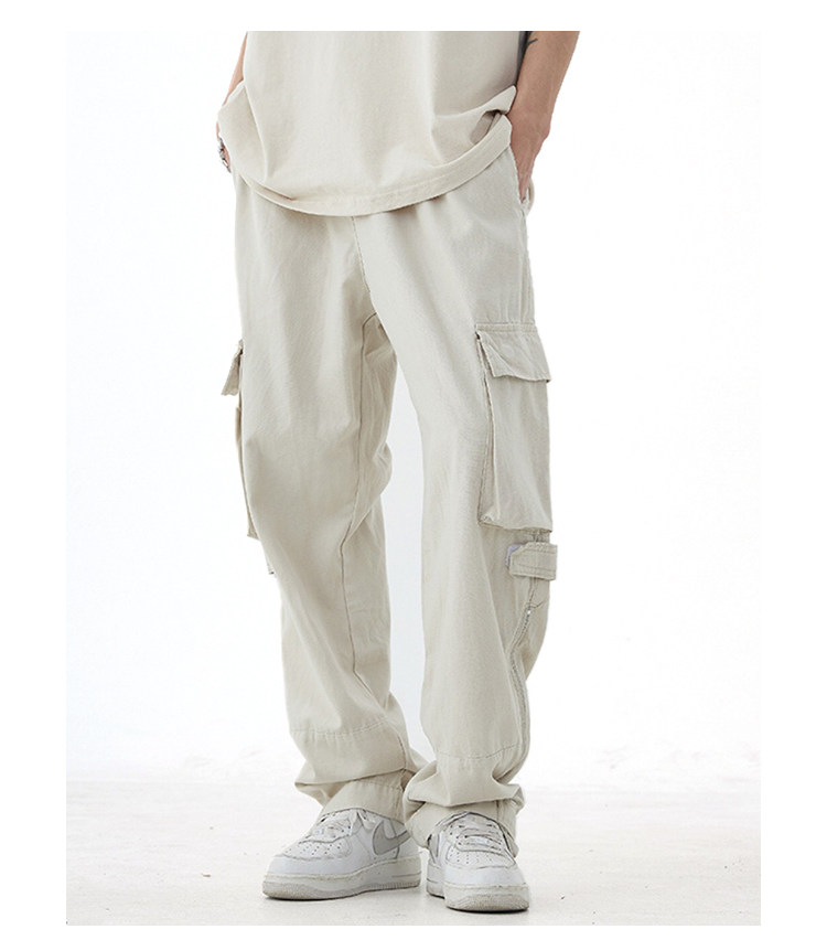 NOW3夏季美式vibe風多口袋工裝褲男女寬鬆潮牌白色直筒休閒褲子夏