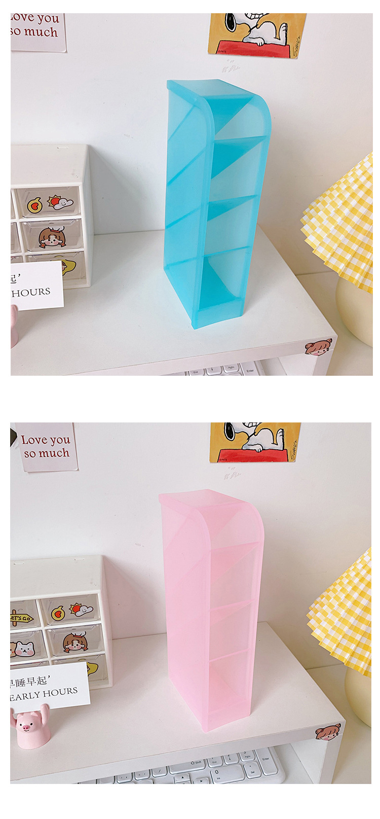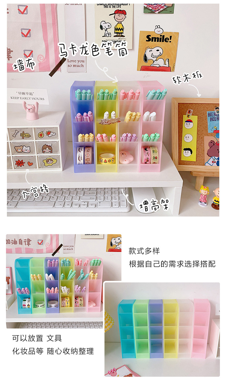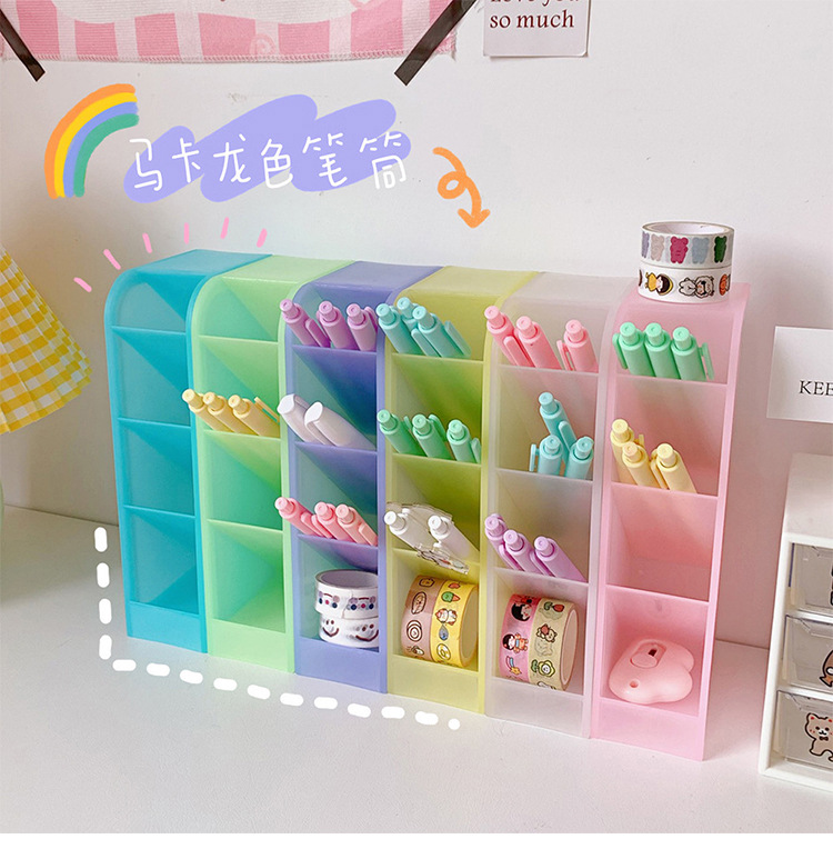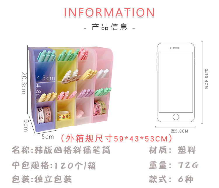 韩国ins 少女心桌面收纳筒简约百搭四格斜插笔筒化妆刷口红收纳盒