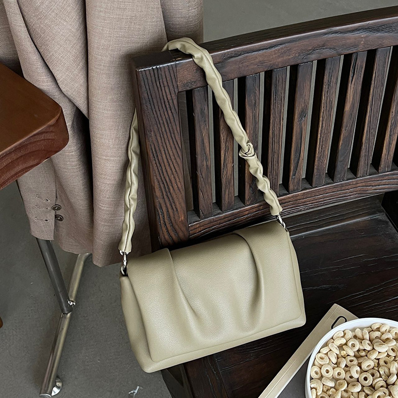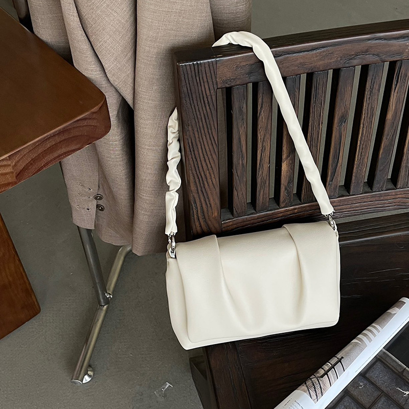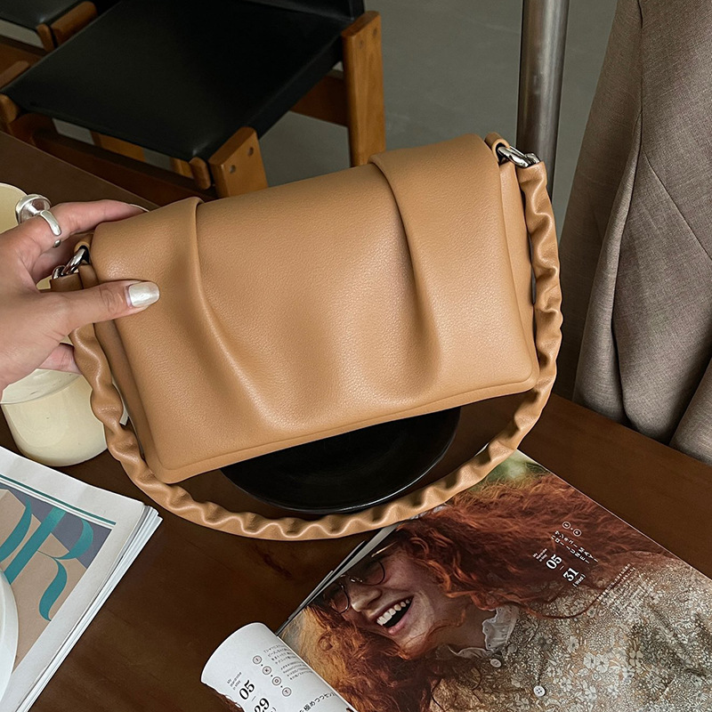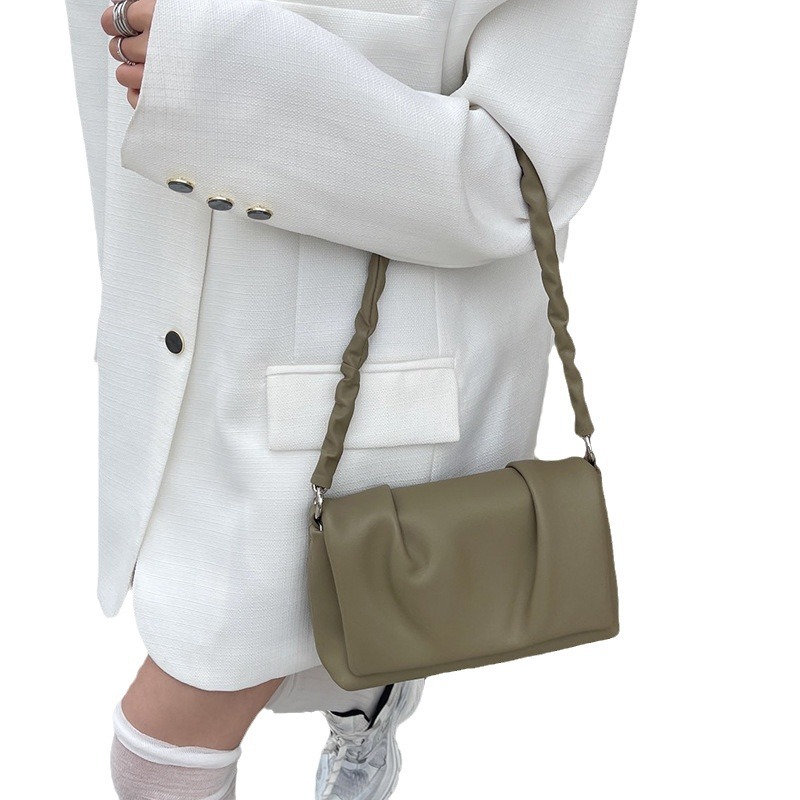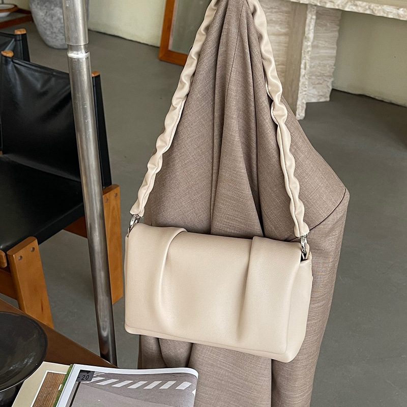 韩国小众设计2024新款跨境云朵包褶皱牛皮手提斜挎包腋下真皮女包