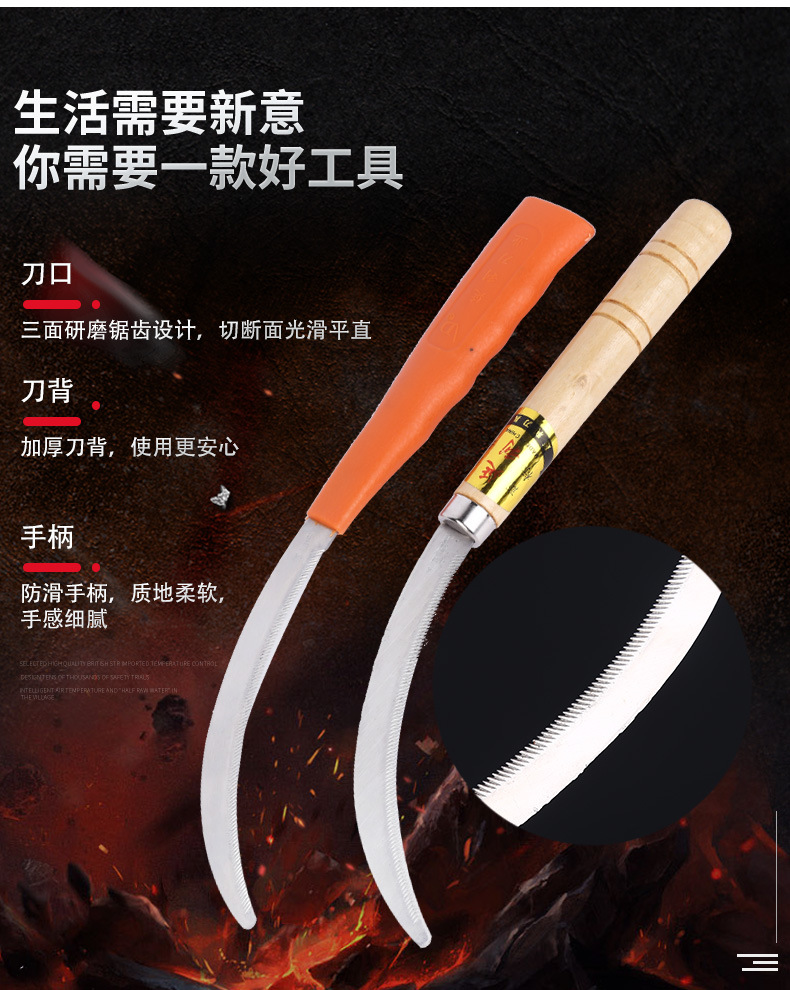 延利牌不锈钢锯齿镰刀家用镰刀镰刀批发割草刀户外农用园林除草刀